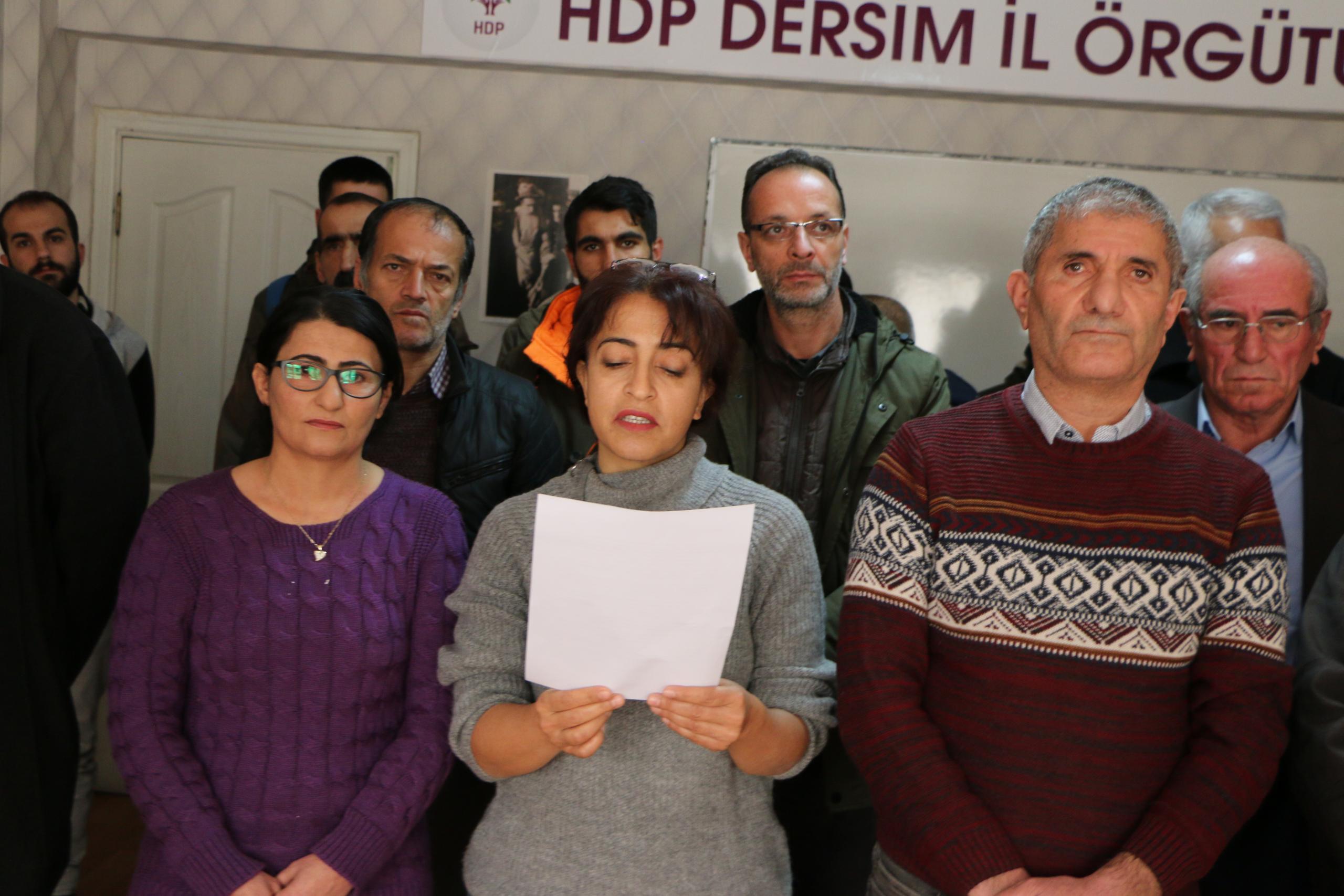 Açıklamayı okuyan HDP Dersim İl Eş Başkanı Nurşat Yeşil, “Cumhurbaşkanı Erdoğan, Dolmabahçe Mutabakatı’nın açıklandığı gün, “Bu hasretle beklediğimiz bir çağrıdır” demişti. Ancak sonrasında Erdoğan ve ortak hareket ettiği derin odaklar, bu mutabakatı tekçi iktidar sisteminin ve devlet yapısının önünde engel olarak görüp düğmeye bastılar. Erdoğan, 24 Nisan 2015’te, “Ne mutabakatı? Böyle bir mutabakat yok” diyerek, sürecin bitirildiğini resmi olarak açıkladı. Çözüm masasını devirdi ve bugüne uzanan ağır bir yıkım sürecini başlattı. Demokratik değerler birer birer yıkılırken, yerine tek adam rejimi inşa edildi. Dolmabahçe Mutabakatı’nı bitirerek, İmralı’da insanlık ve hukuk dışı mutlak tecridi devreye sokarak, belediyelerimize kayyım atayarak ve parti yönetici ve üyelerimizi gözaltına alıp tutuklayarak halk iradesine siyasi darbe sürecinin de önünü açtılar” ifadelerini kullandı.