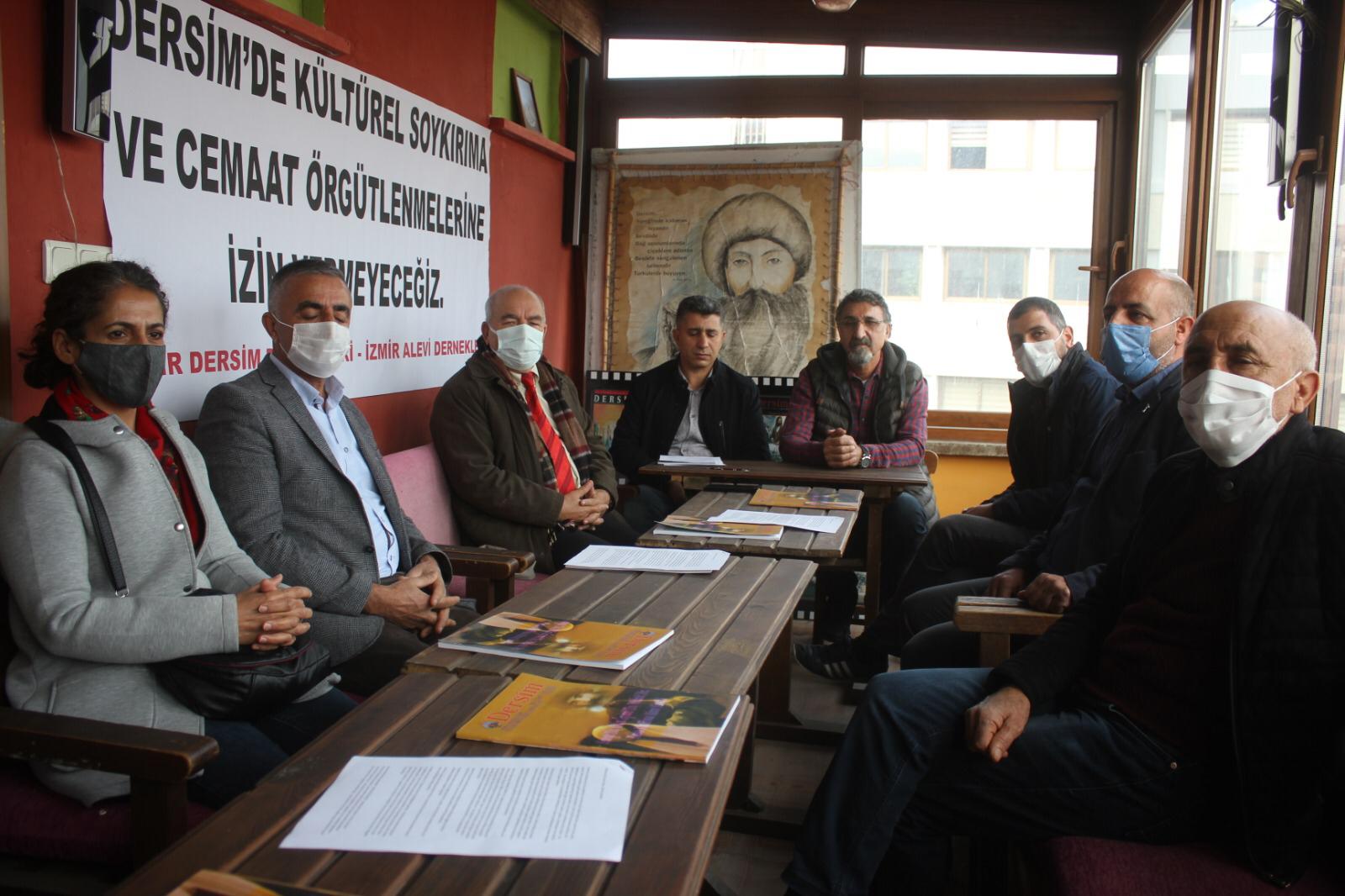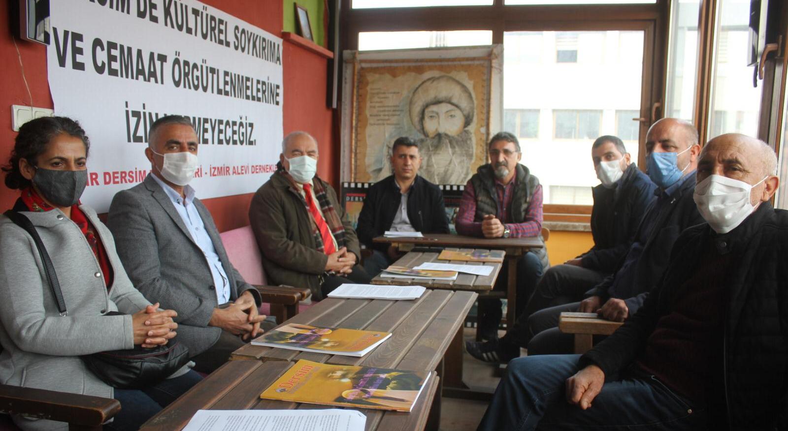 İzmir’de bulunan Dersim dernekleri, Alevi kurumları ve Sosyalist Meclisler Federasyonu (SMF), Dersim’deki tarikat ve cemaat yapılanmalarına dair dernek binasında ortak açıklama gerçekleştirdi. Tarikat ve cemaat örgütlenmelerinin devlet destekli olduğunun ve finanse edildiğinin belirtildiği açıklamada, Dersimliler ve dostlarına Alevi inancını hedef alan bu tarz tarikat örgütlenmelerine karşı durma ve tepki verme çağrısında bulunuldu.