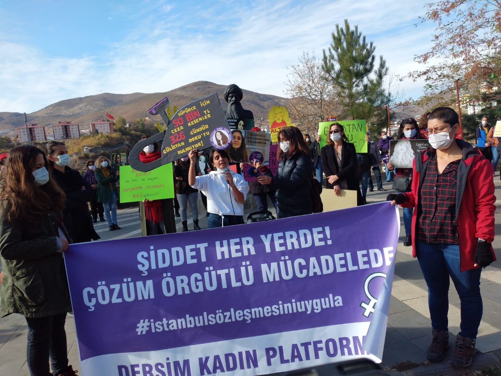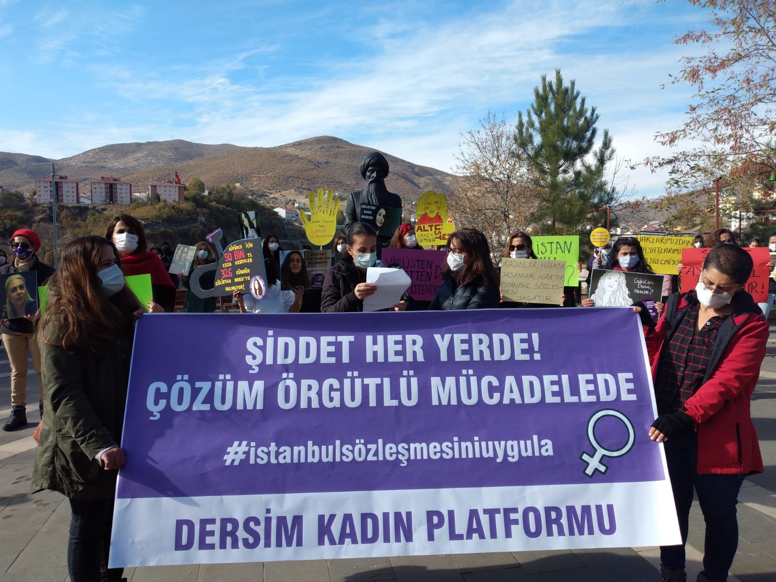 Dersim Kadın Platformu 25 Kasım Kadına Yönelik Şiddete Karşı Uluslararası Mücadele Günü’nde Seyit Rıza Meydanı’nda basın açıklaması yaptı. Basın açıklamasını Dersim Kadın Platformu adına Fatoş Taşkale okudu.