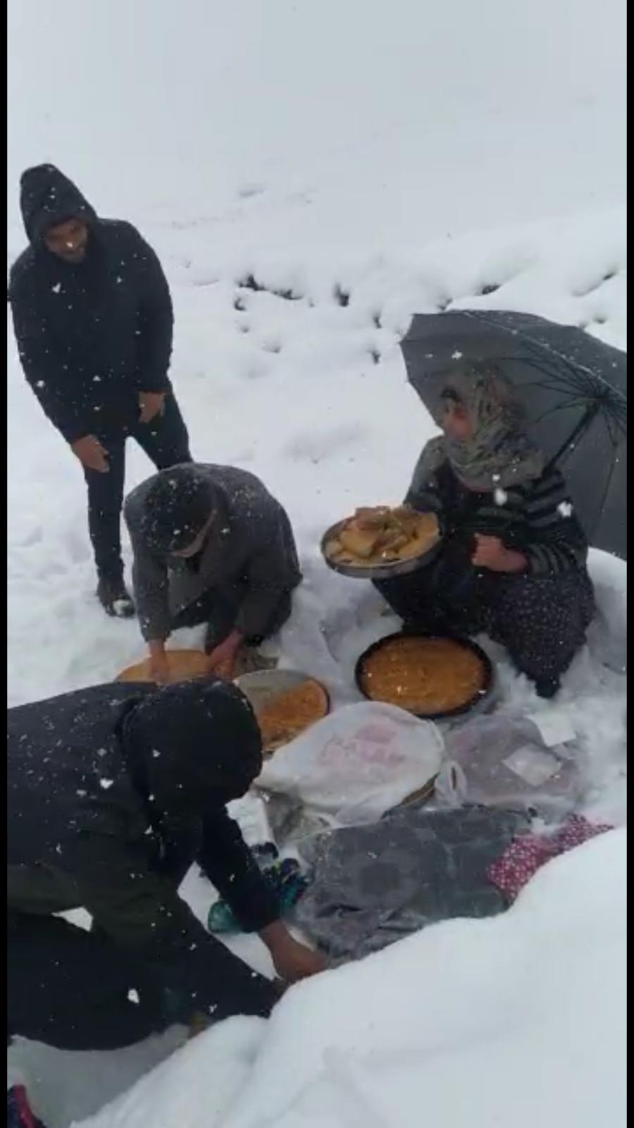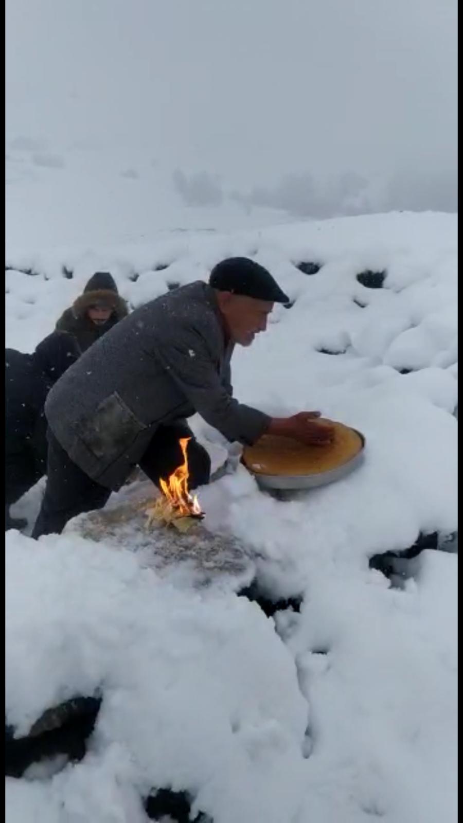 PİRHA- Dersim’in Ovacık ilçesinde, biten yılı uğurlama ve gelen yılı karşılama anlamı taşıyan Gaxan geleneği dolayısıyla köylüler karlı yolları tek sıra halinde yürüyerek, lokmalarını paylaştı.