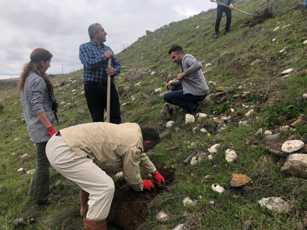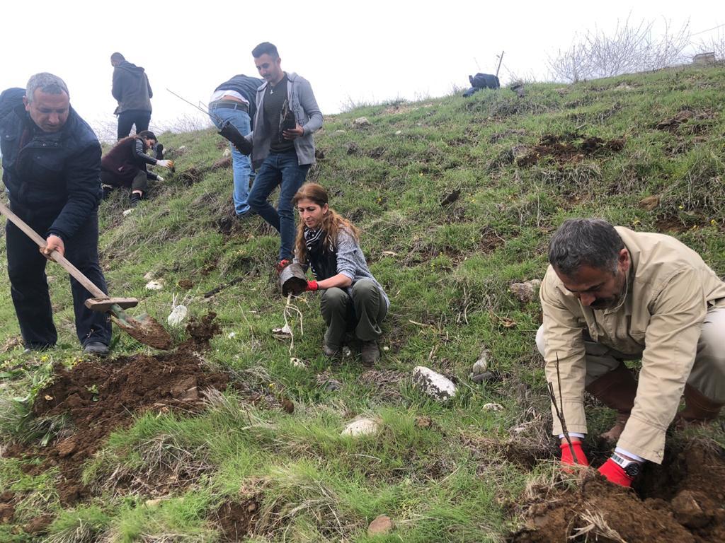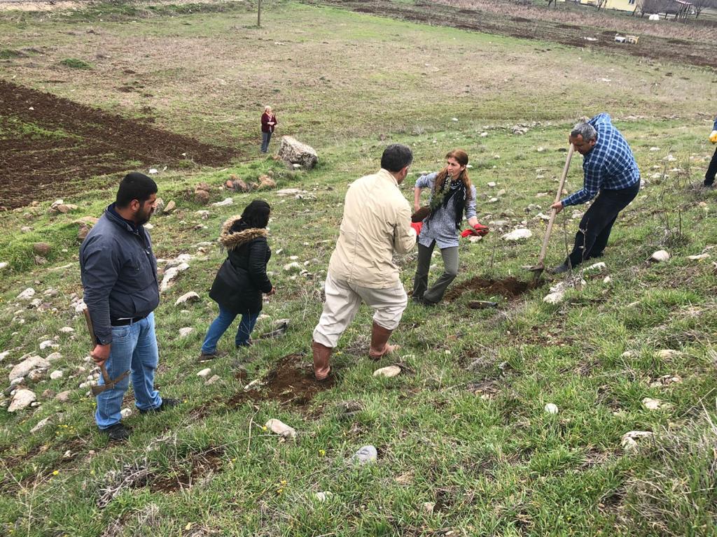 PİRHA – Halkların Demokratik Partisi (HDP) Akpazar (Peri) Belediye Eşbaşkan adayları Songül Doğan ve Orhan Çelebi Elmalık Köyü’nde köylülerle beraber “YaMeYe Hatıra Ormanı” oluşturdu.