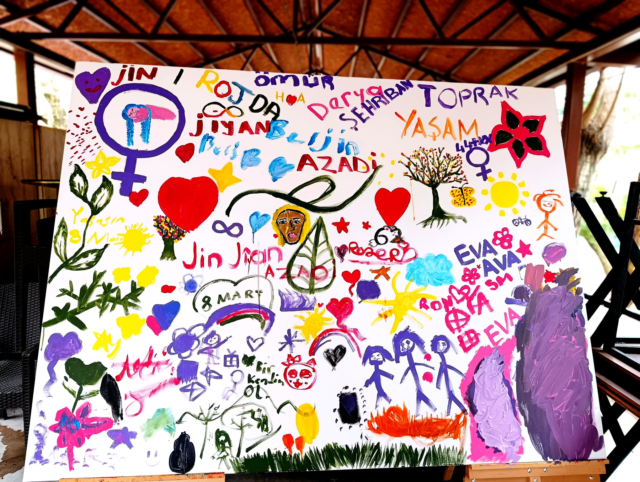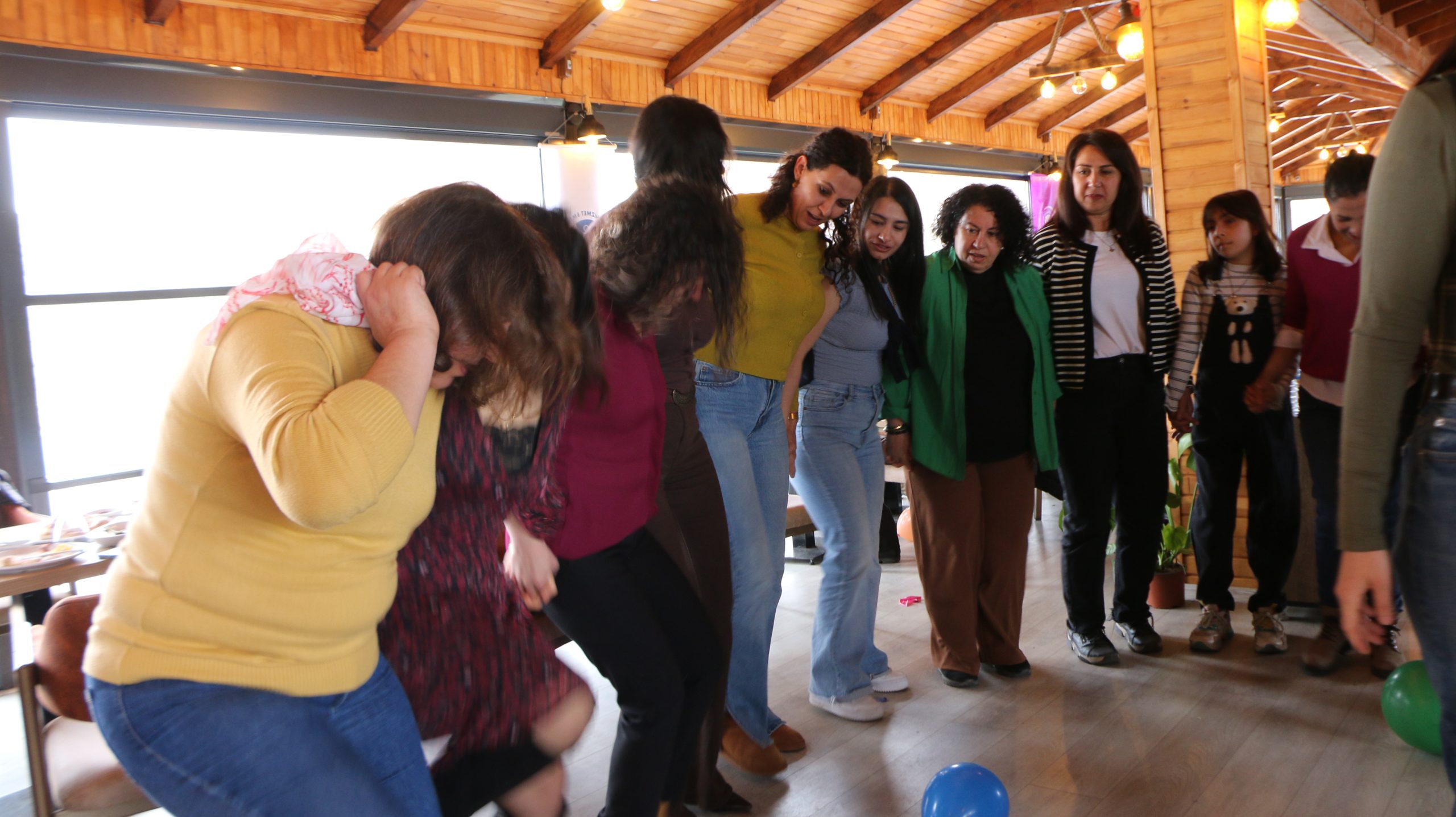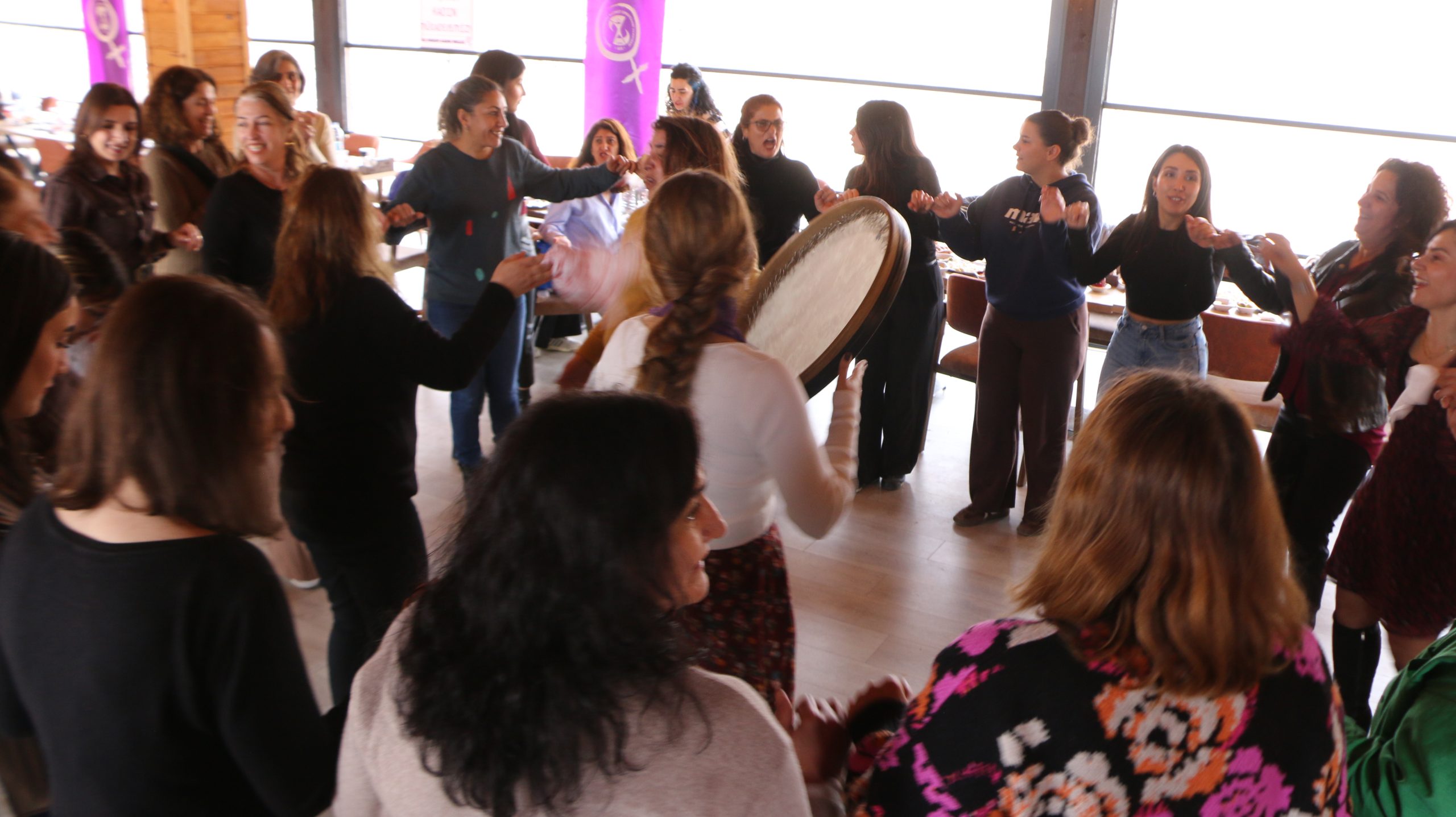 Konuşmanın ardından kahvaltıya geçen kadınlar, kahvaltıdan sonra halaylar tuttu ve hep beraber resim atölyesi çalışması yaptılar.