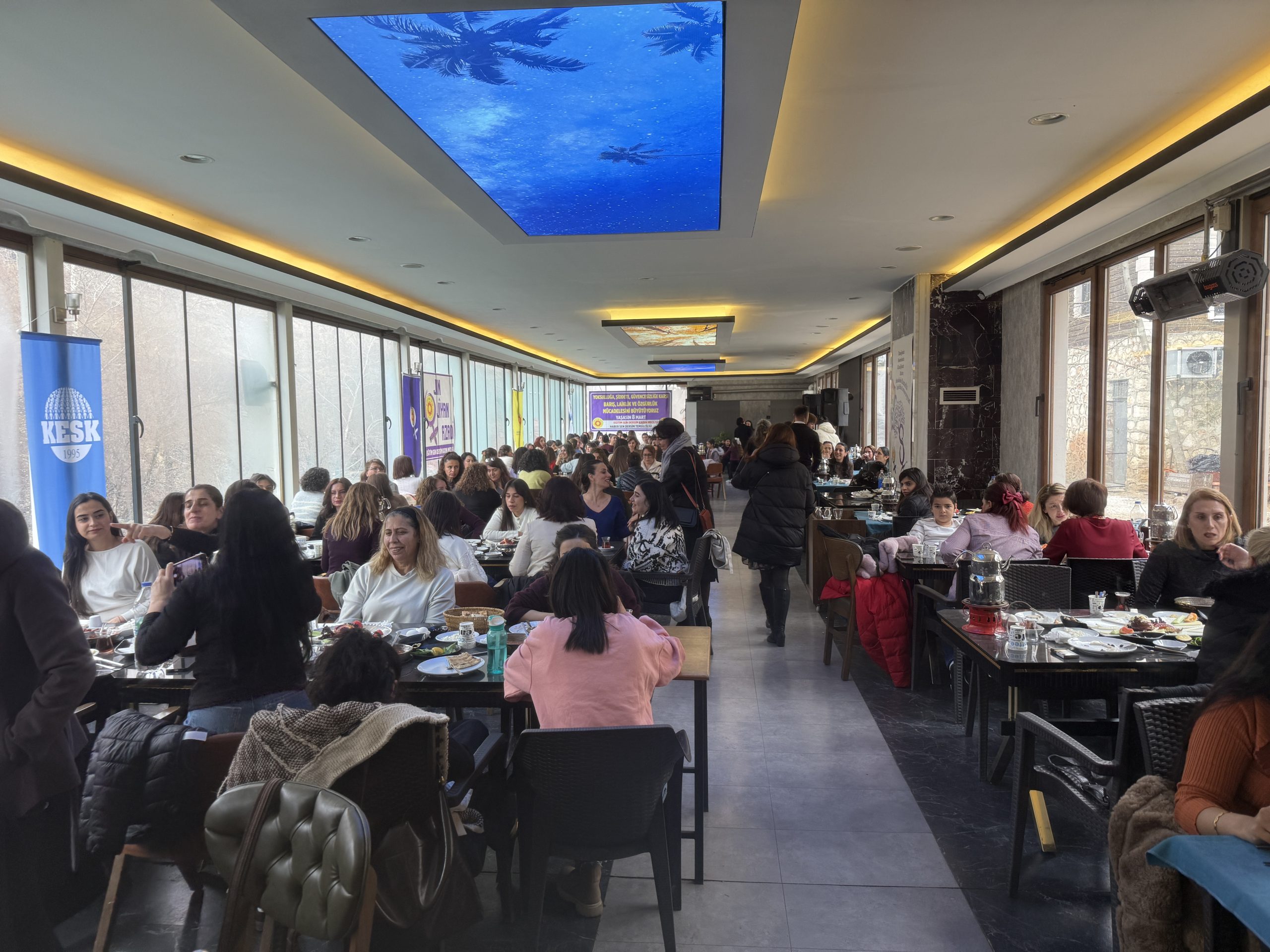 KESK bileşenlerinden Sağlık ve Sosyal Hizmet Emekçileri Sendikası(SES) ve Eğitim ve Bilim Emekçileri Sendikası(Eğitim-Sen), 8 Mart Dünya Emekçi Kadınlar Günü dolayısıyla sendikalı kadınlarla birlikte kahvaltı etkinliğinde buluştu.