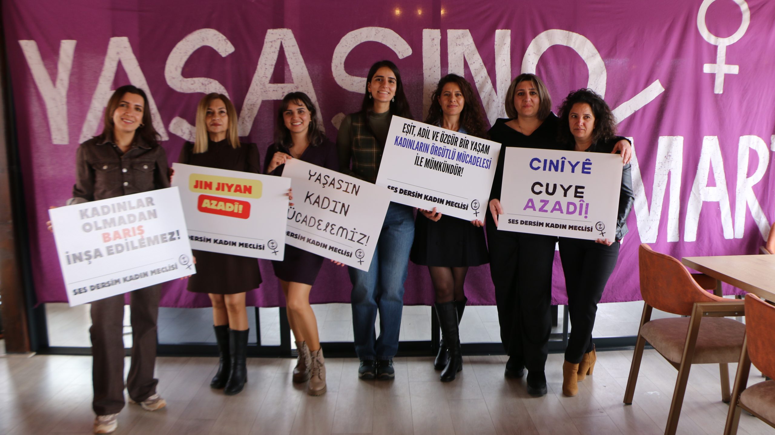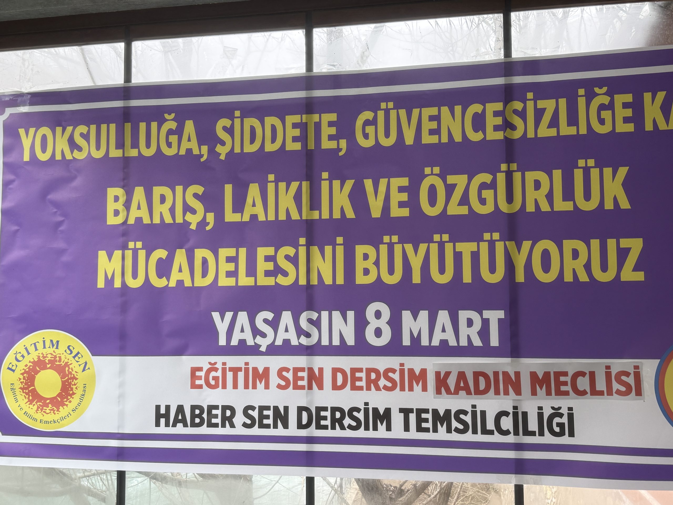 “Sevgili kadınlar, hoş geldiniz. Sizleri Dersim Ses Kadın Meclisi olarak selamlıyoruz. 8 Mart Kadınların Uluslararası Birlik Mücadele ve Dayanışma Günü, 1857’de ABD’de bir tekstil fabrikasında çalışan yaklaşık 40 bin emekçi kadının eşit işe eşit ücret ve insanca çalışma koşulları talebiyle greve gitmesi, polisin müdahalesi sonucu çıkan yangında 129 kadın işçinin hayatını kaybetmesiyle başladı”