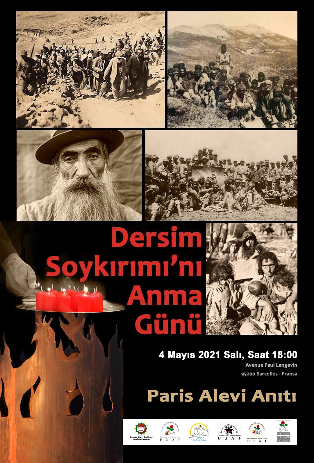 4 Mayıs 1937’de Bakanlar Kurulu’nda alınan kararla başlatılan Dersim Soykırımı’nın 84. yıl dönümünde Avrupa Alevi Birlikleri Konfederasyonu, Fransa Alevi Birlikleri Federasyonu ve Fransa Alevi Kadınlar Birliği öncülüğünde ortak bir anma yapacak.