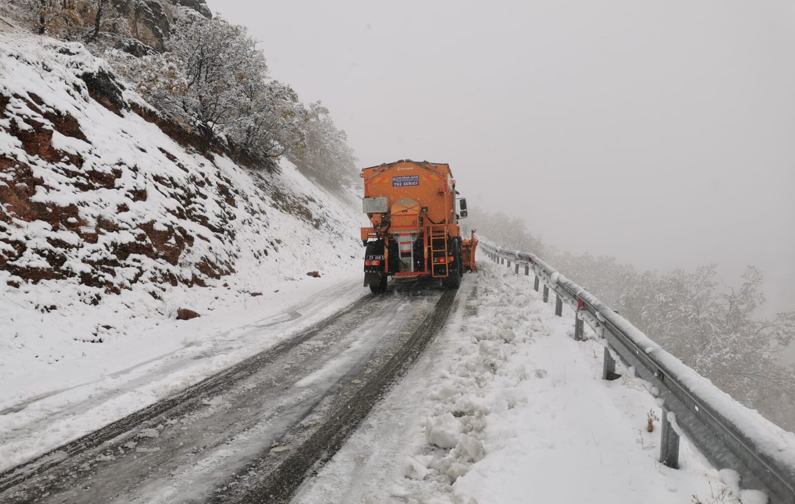 Erzincan-Pülümür karayolu ile Dersim-Ovacık karayolunda, Karayolları Müdürlüğü ekipleri gün boyu kar temizleme çalışması yaptı.