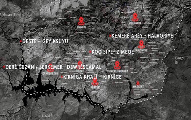 Friedrich Ebert Stiftung Derneği Türkiye Temsilciliği tarafından desteklenen “Dersim 1937-1938 Saha Çalışması Pilot Projesi” (Haziran-Eylül 2020) kapsamında hazırlanan çalışma, Kemerê Arey (Halvoriye/Karşılar Köyü), Koo Spi/Beyaz Dağ (Zımeq/Çığırlı Köyü), Kırniga Khali (Kırnige/Buzlupınar Köyü), Serkemer/Derê Xezani (Dervişcemal Köyü) ve Deşt/Geyiksuyu katliam yerlerini kapsıyor.