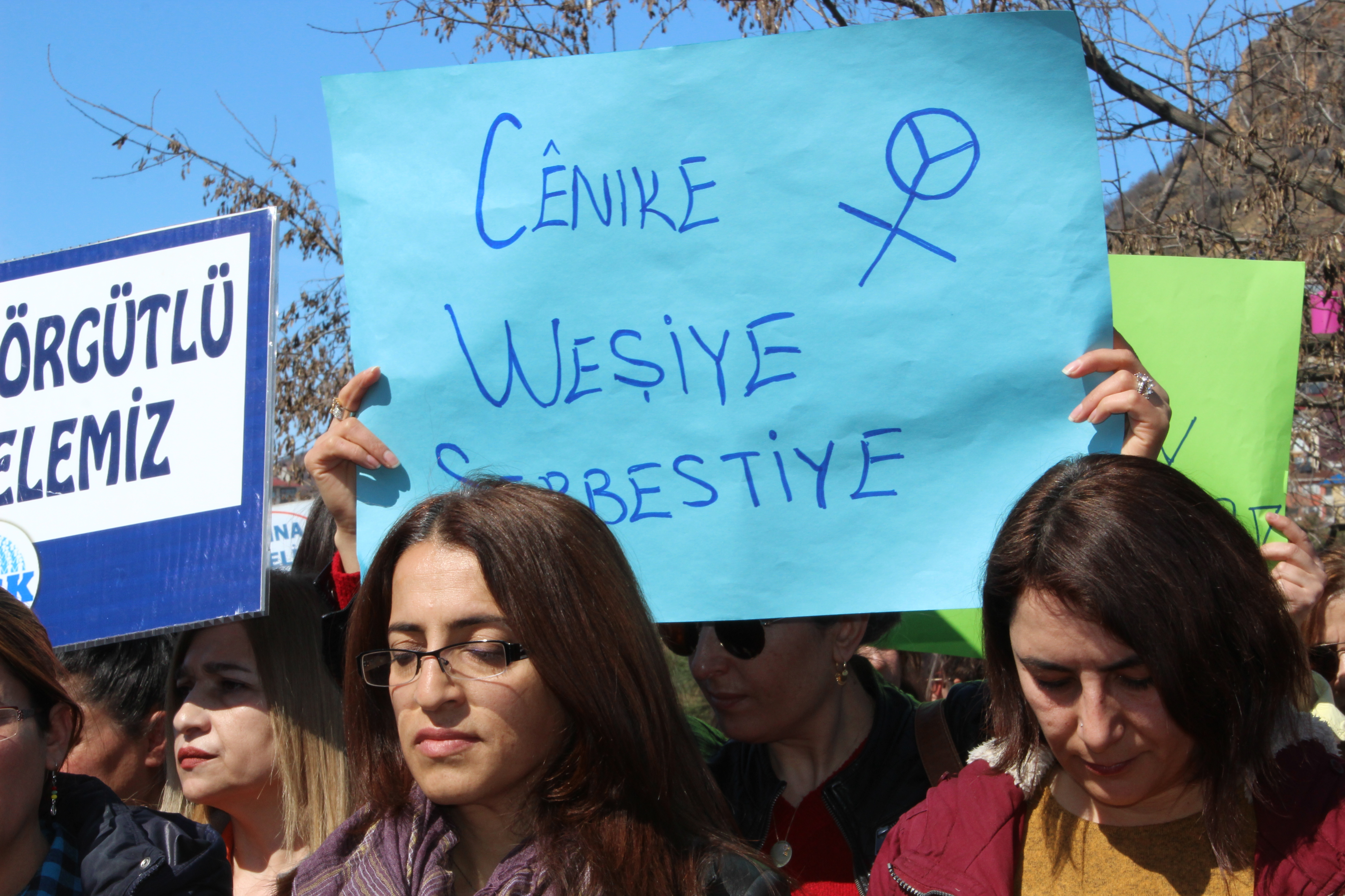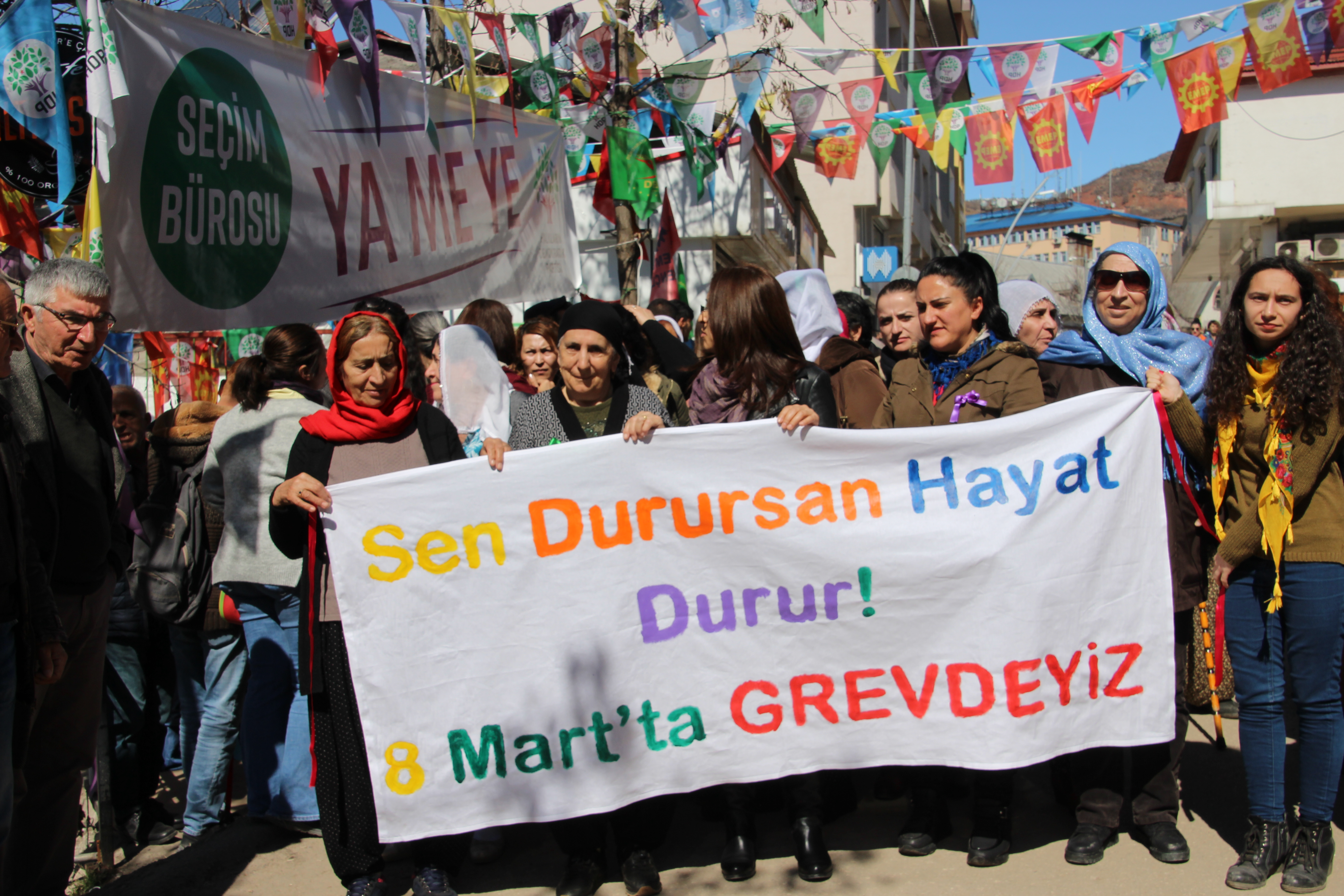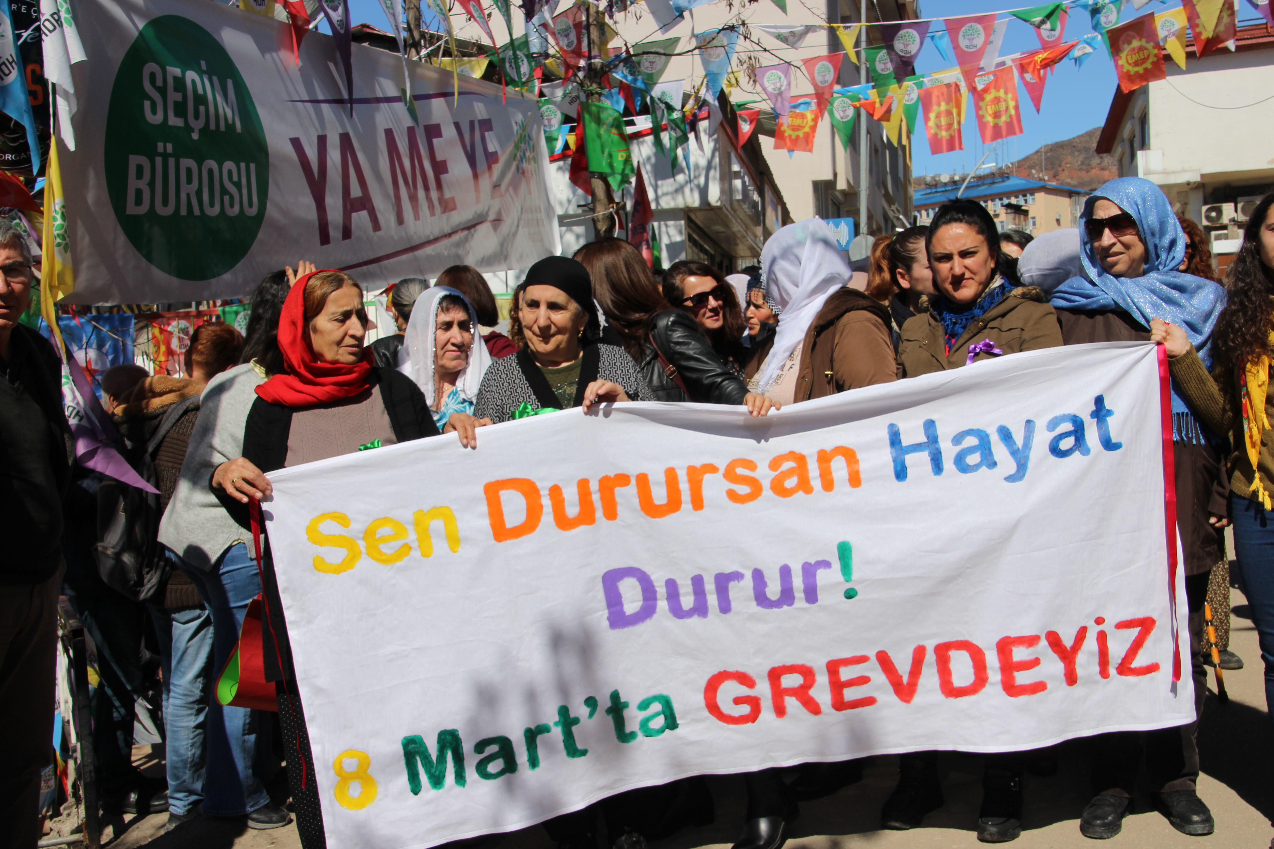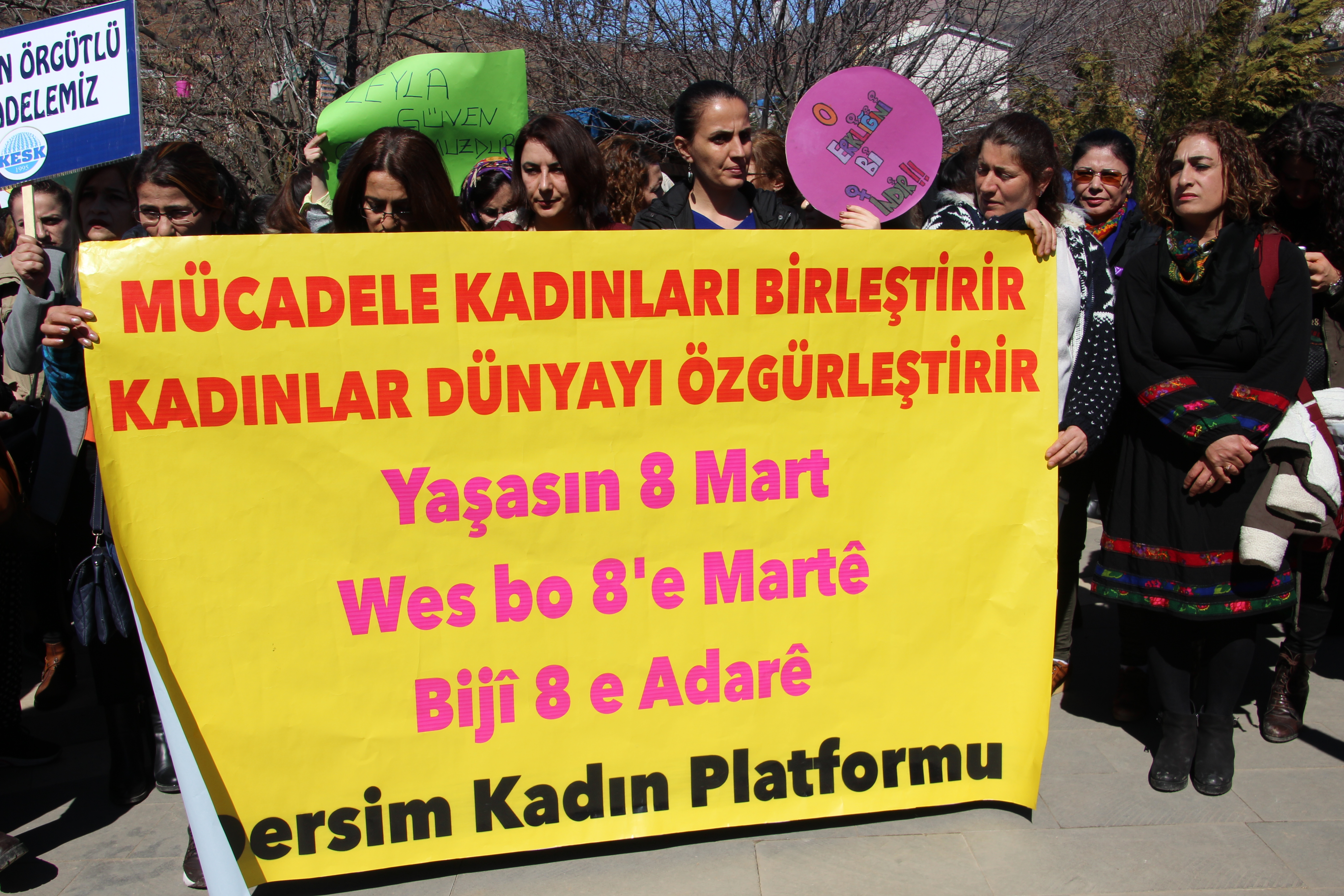 Dersim Kadın Platformu, 8 Mart’ı coşkuyla kutladı. Yapılan açıklamalarda Leyla Güven’in açlık grevine dikkat çekildi. Kutlamada halaylar çekildi, ‘Jin jiyan azadi, kadın yaşam özgürlük’ sloganları atıldı. Programa kurum temsilcileri, kadın belediye başkan adayları ve çok sayıda Dersimli yurttaş katılırken ortak açıklamayı Fatoş Yiğit okudu. Yiğit, “8 Mart 1857’de Amerika’nın New York kentinde, tekstil sektöründe çalışan yüzlerce kadın, düşük ücretlerini, uzun çalışma saatlerini ve insanlık dışı çalışma koşullarını protesto etmek için grev başlattı” diyerek şöyle devam etti: