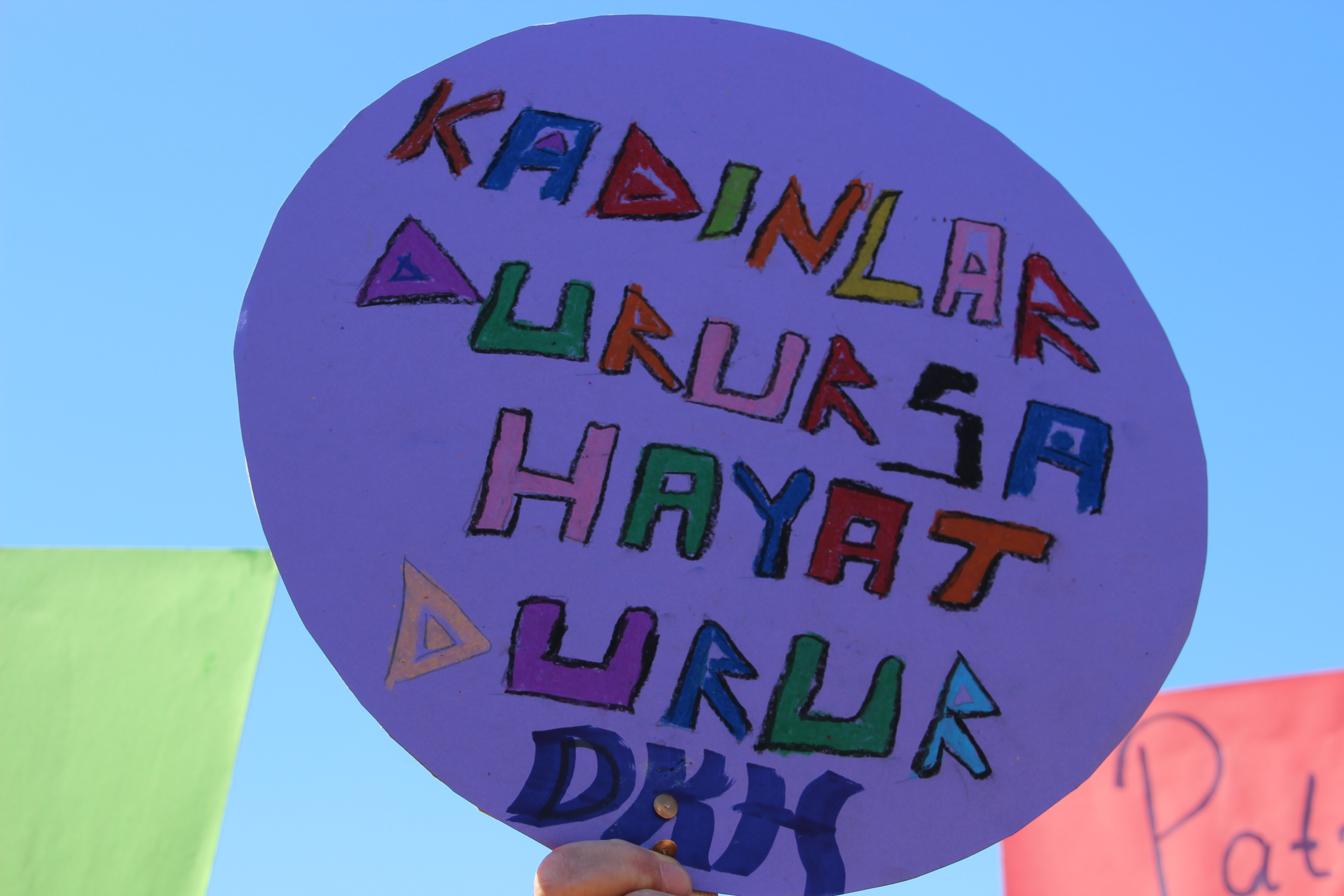 “Esnek, kuralsız, güvencesiz, kayıt dışı ve düşük ücretlerle sömürülmeye, ekonomik krizle birlikte daha fazla yoksullaşmaya, çalışma yaşamının ayrılmaz parçası haline getirilmiş baskı, şiddet ve mobbinge, kreşleri kapatıp kadınlara yüklenmeye çalışılan bakım hizmetleri nedeniyle ücretli işlerde çalışmamızı engelleyen politikalara karşı durmaya, ev içerisinde görünmez kılınıp değersizleştirilen emeğimize sahip çıkarak mücadelemizi yürütüyoruz.