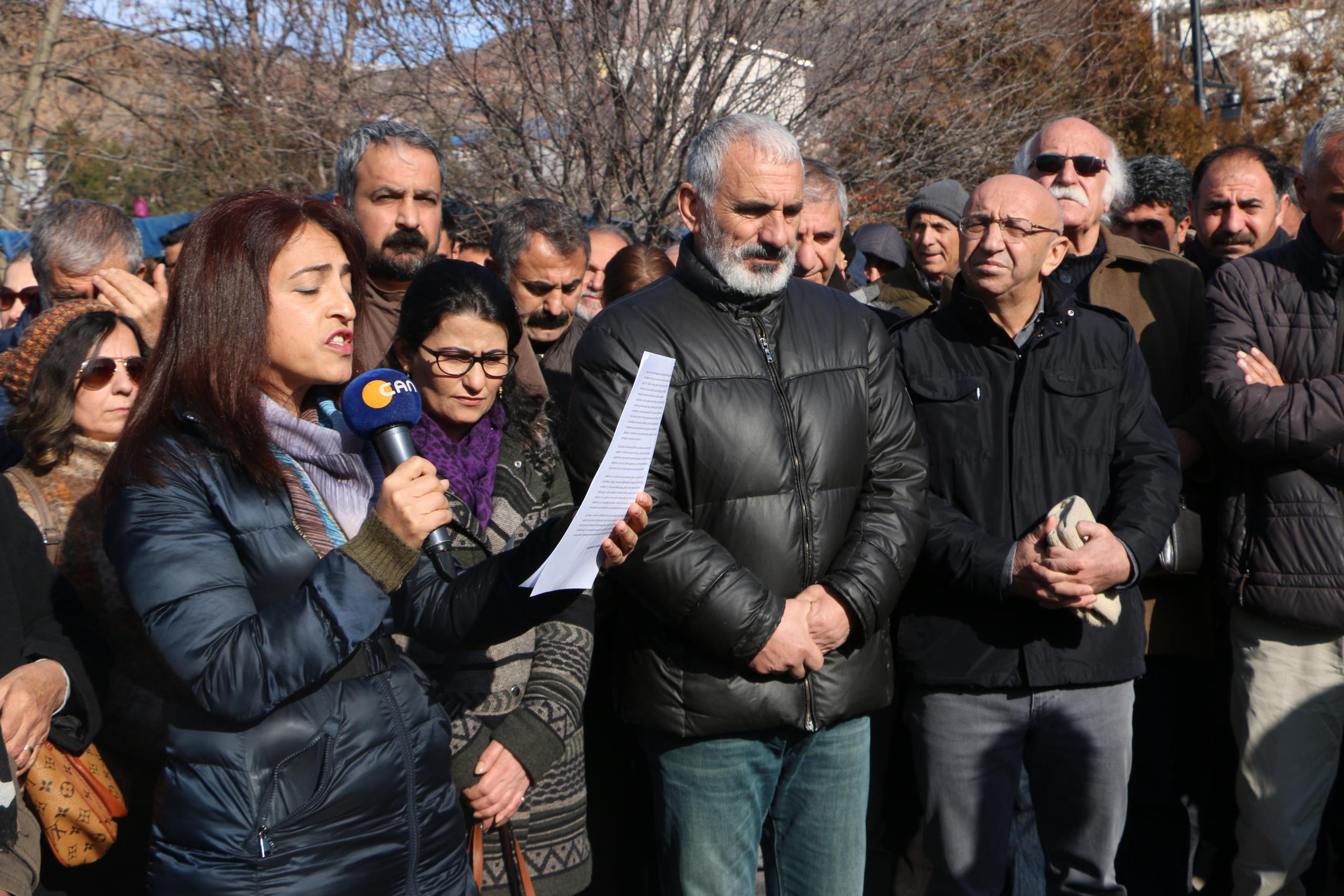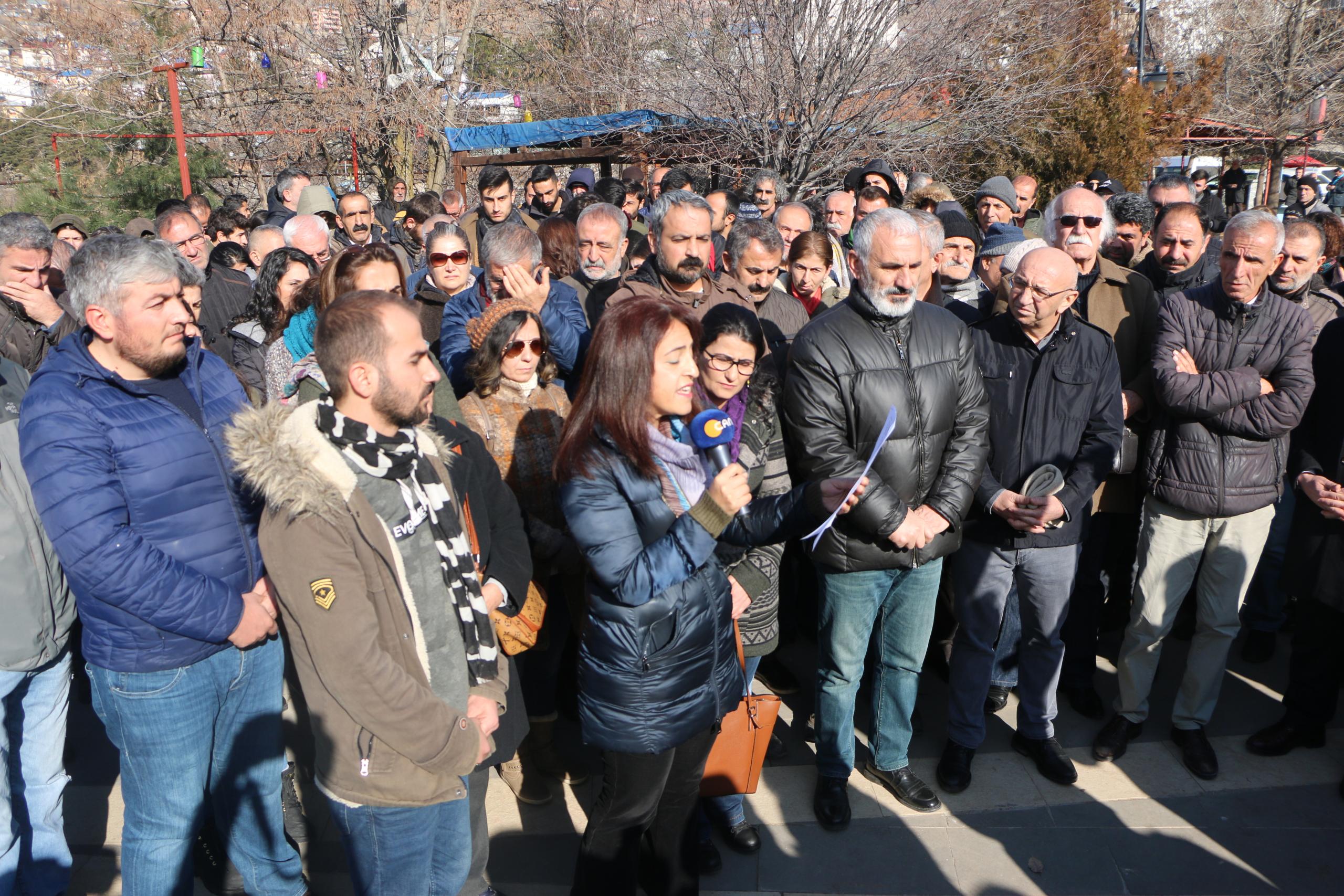 Seyit Rıza Meydanında yapılan açıklamaya Halkların Demokratik Partisi (HDP) Milletvekilleri Alican Önlü ve Mehmet Rüştü Tiryaki katıldı. “Jin jiyan azadî”, “Dersim uyuma Gülistan’a sahip çık” sloganlarının atıldığı açıklamada ilk olarak HDP İl Eşbaşkanı Nurşat Yeşil konuştu.
