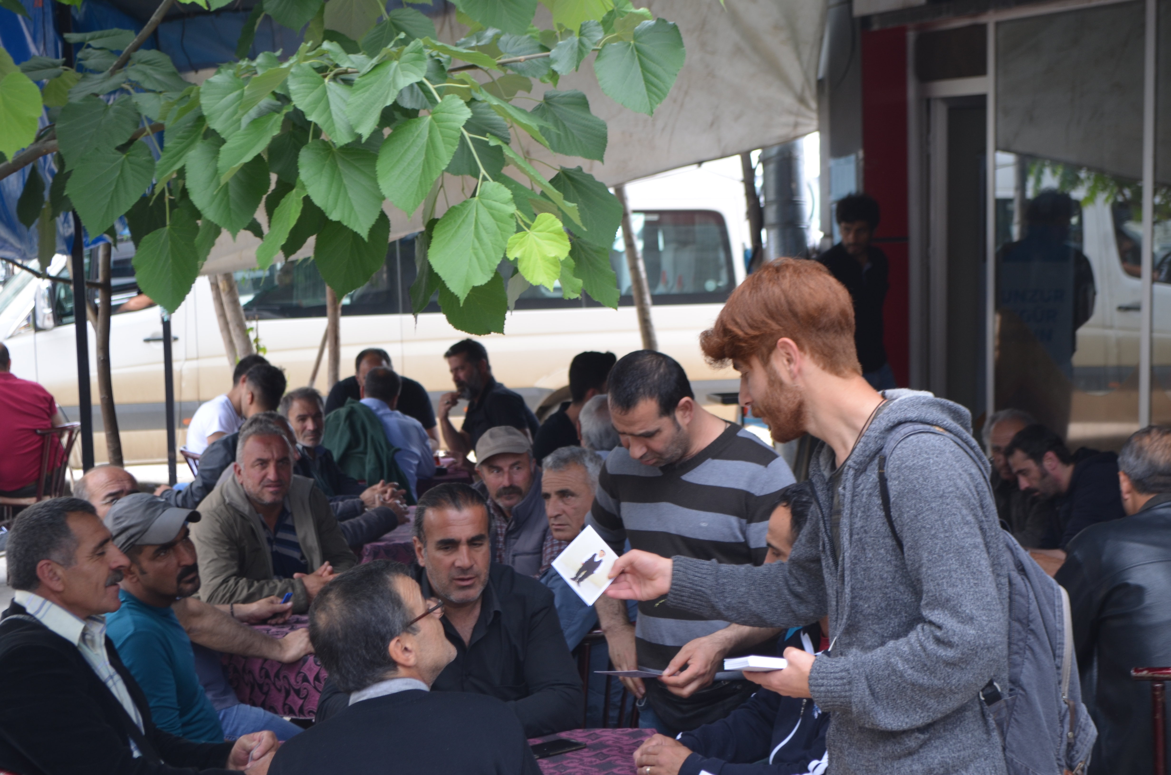 Dersim merkezde, HDP’liler Cumhurbaşkanı adayı Selahattin Demirtaş’ın kartpostallarını dağıttı. Esnaf ziyareti ve halkla konuşmalar yapan HDP’liler halk tarafından olumlu tepkilerle karşılaştı. Demirtaş’ın kartpostallarını gören halk, cezaevinden çıkması ümidiyle partilileri selamladı.