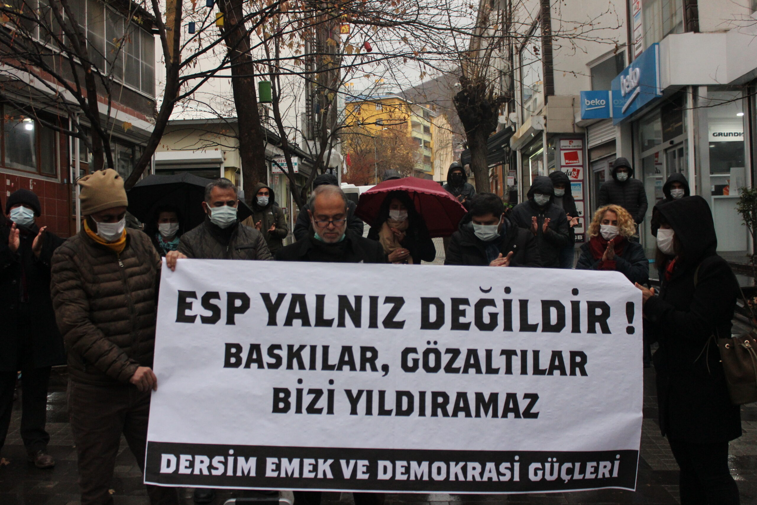 Dersim Emek ve Demokrasi Güçleri, Ezilenlerin Sosyalist Partisi (ESP) Eş Genel Başkanı Özlem Gümüştaş’ın da aralarında bulunduğu 48 kişi gözaltına alınmasını protesto ederek basın açıklaması yaptı. Sanat Sokağında yapılan açıklamada “ESP yalnız değildir, baskılar, gözaltılar bizi yıldıramaz” pankartı açıldı.