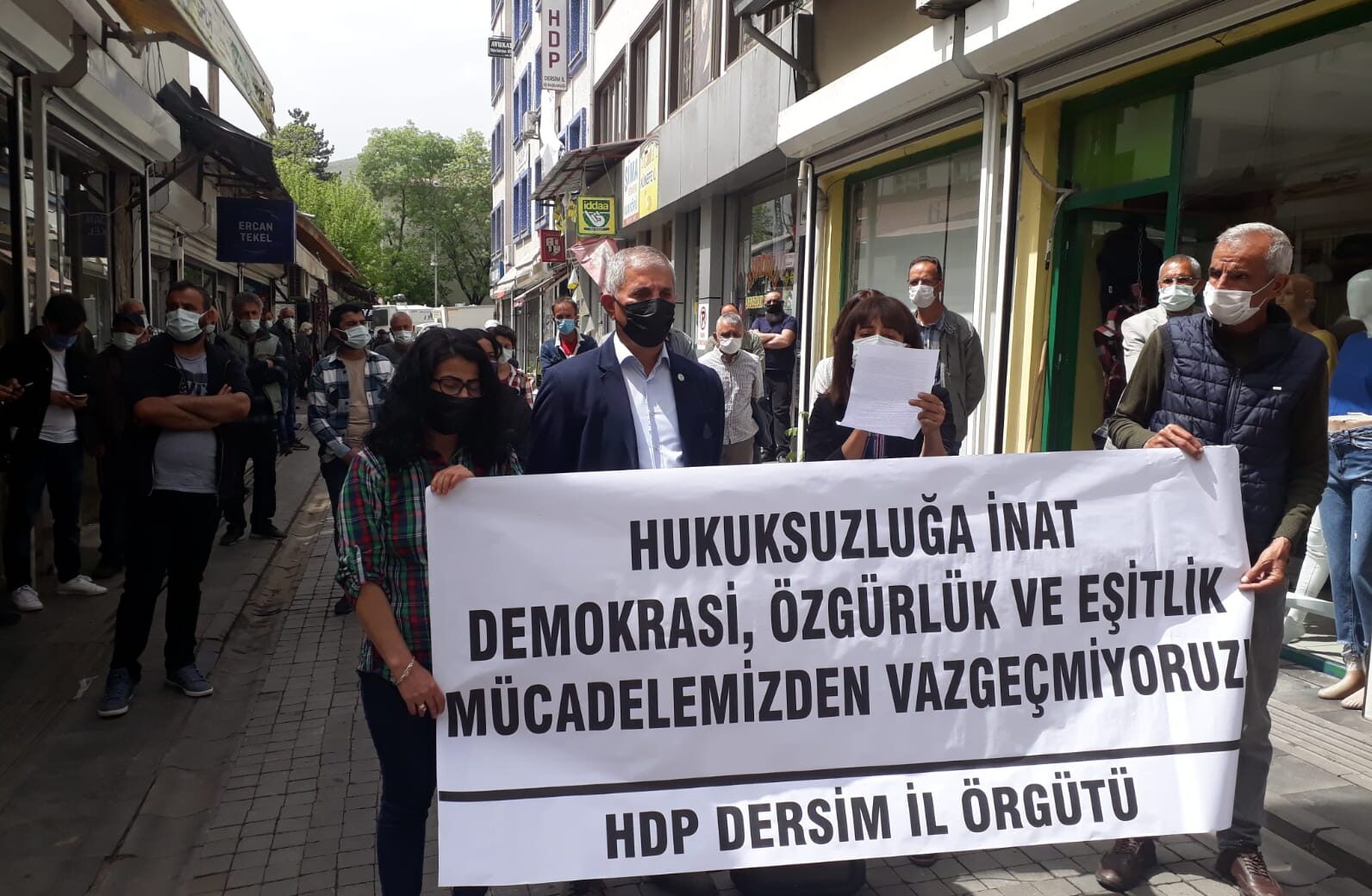 Halkların Demokratik Partisi (HDP) Dersim İl Örgütü, HDP’li 28’i tutuklu 108 kişi hakkında açılan Kobanî davasına ilişkin basın açıklaması yaptı. Aaçıklamada “Hukuksuzluğa inat eşitlik mücadelemizden vazgeçmiyoruz” pankartı açıldı.