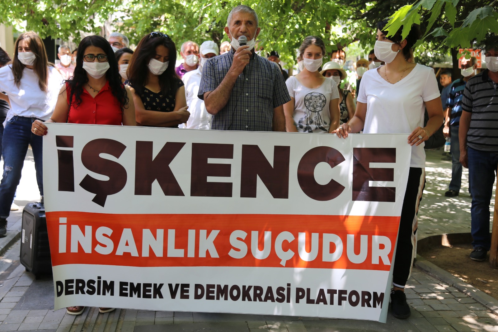 Açıklamayı okuyan HDP Dersim İl Eş Başkanı Nurşat Yeşil, “1997 yılında BM Genel Kurulu, İşkence ve Diğer Zalimane, İnsanlık Dışı ya da Onur Kırıcı Muamele ya da Cezaya Karşı Sözleşmesi’nin taşıdığı önem nedeniyle 26 Haziran’ı, İşkence Görenlerle Dayanışma Günü olarak ilan etmiştir. Türkiye’nin de tarafı olduğu bu sözleşme, işkence ve kötü muameleyi mutlak anlamda yasaklamaktadır. Bu durum Sözleşme’nin 2/2. maddesinde “Hiçbir istisnai durum, ne harp hâli ne de bir harp tehdidi, dâhili siyasi istikrarsızlık veya herhangi başka bir olağanüstü hâl, işkencenin uygulanması için gerekçe gösterilemez” şeklinde açıklanmıştır. Söz konusu hükümden de anlaşılacağı üzere işkencenin, hiçbir koşulda istisnası olamaz” ifadelerini kullandı.