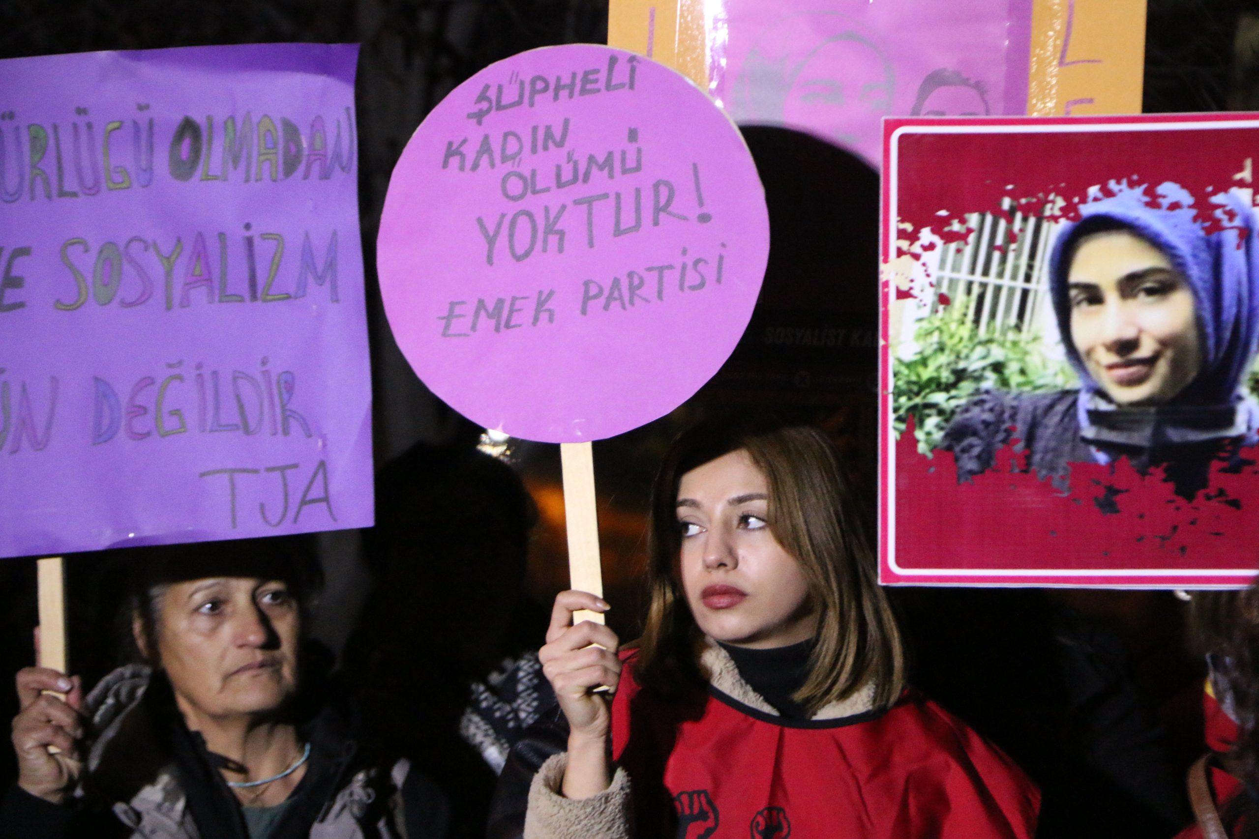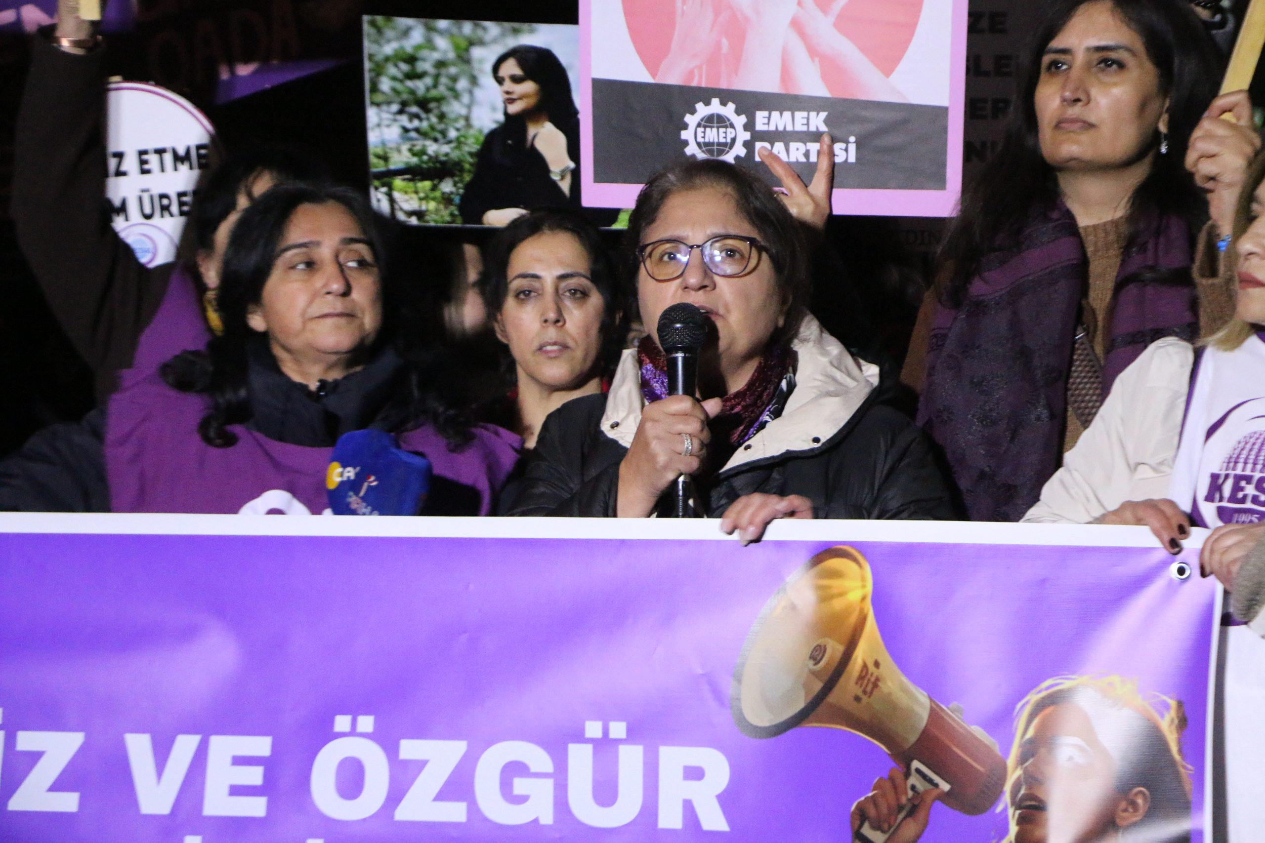 İktidarın kadın düşmanı politikaları, devletin şiddeti önleyecek mekanizmaları harekete geçirmemesi, erkek egemen yargı kararları, kriz ve artan yoksulluk sonucu kadınlar evde, işte, sokakta, kampüste her yerde şiddetin türlü biçimlerine maruz kalıyor. Kadın katillerinin, şiddet faillerinin yargılamalarında iyi hal ve haksız tahrik indirimleri uygulanırken, hayatta kalmak için öz savunma uygulamak zorunda kalan kadınlara yüksek cezalar veriliyor. Ekonomik ve sosyal güvenceden yoksun bırakılmayı, yoksullaşmayı, güvencesiz- kayıt dışı çalıştırılarak sömürülmeyi, dünyanın bakımı da dahil tüm bakım yüklerini karşılıksız olarak yüklenmek zorunda görülmeyi, şiddet tehdidi altında yaşamayı reddediyoruz. Şiddetsiz, eşit, özgür, barış içinde; emeğimizin değer gördüğü demokratik ve laik bir ülkede yaşamak istiyoruz” dedi.