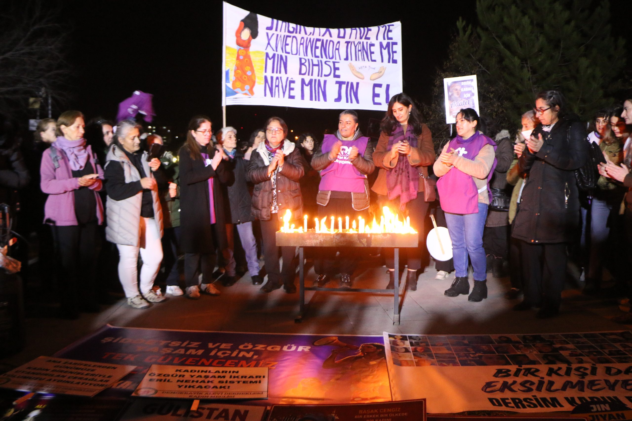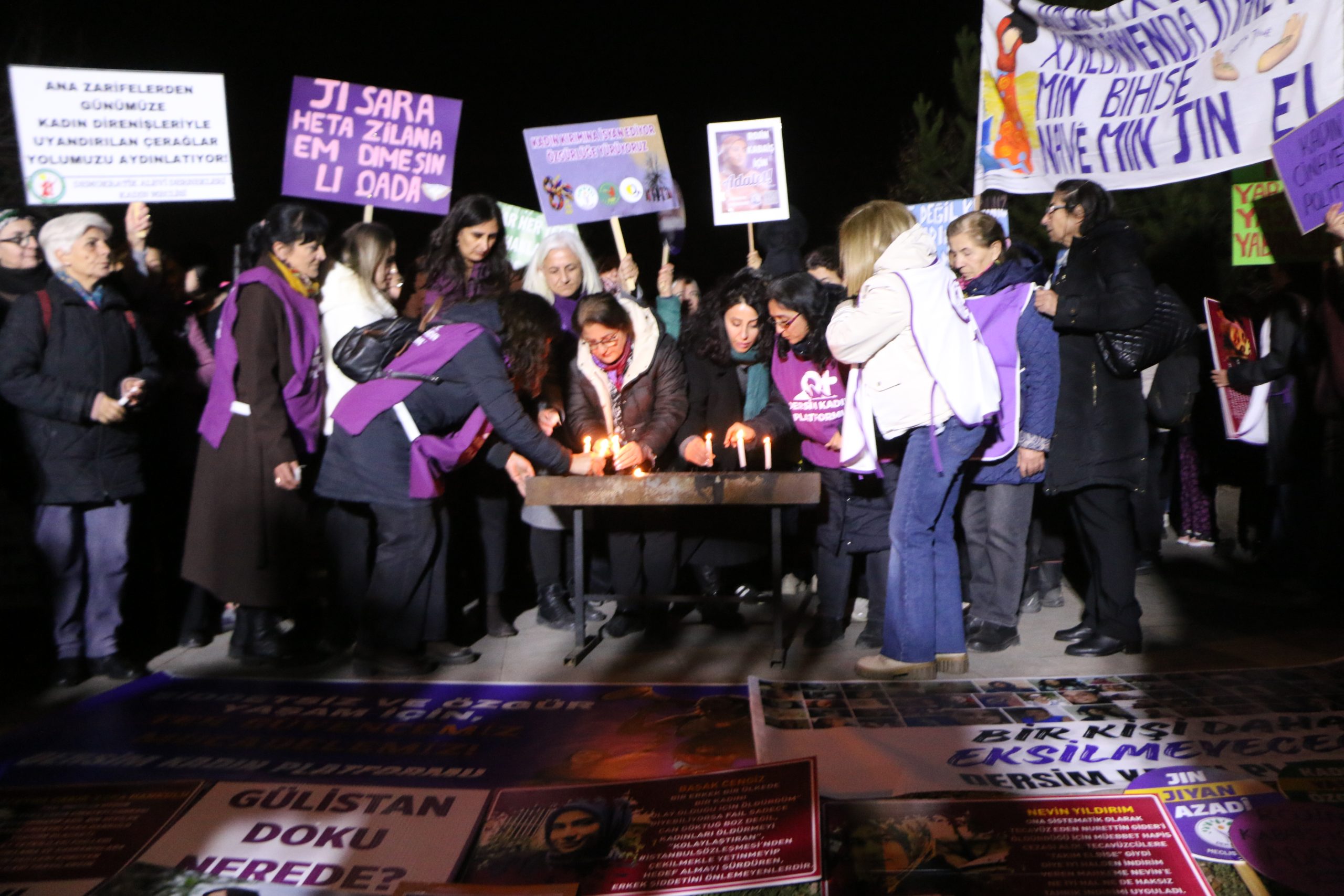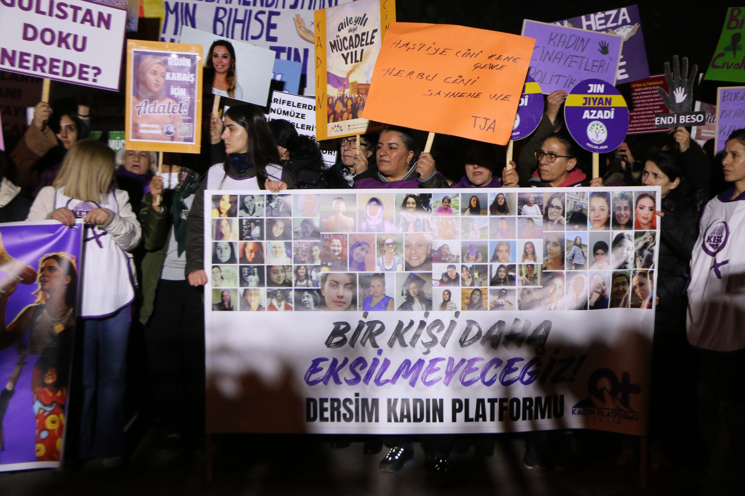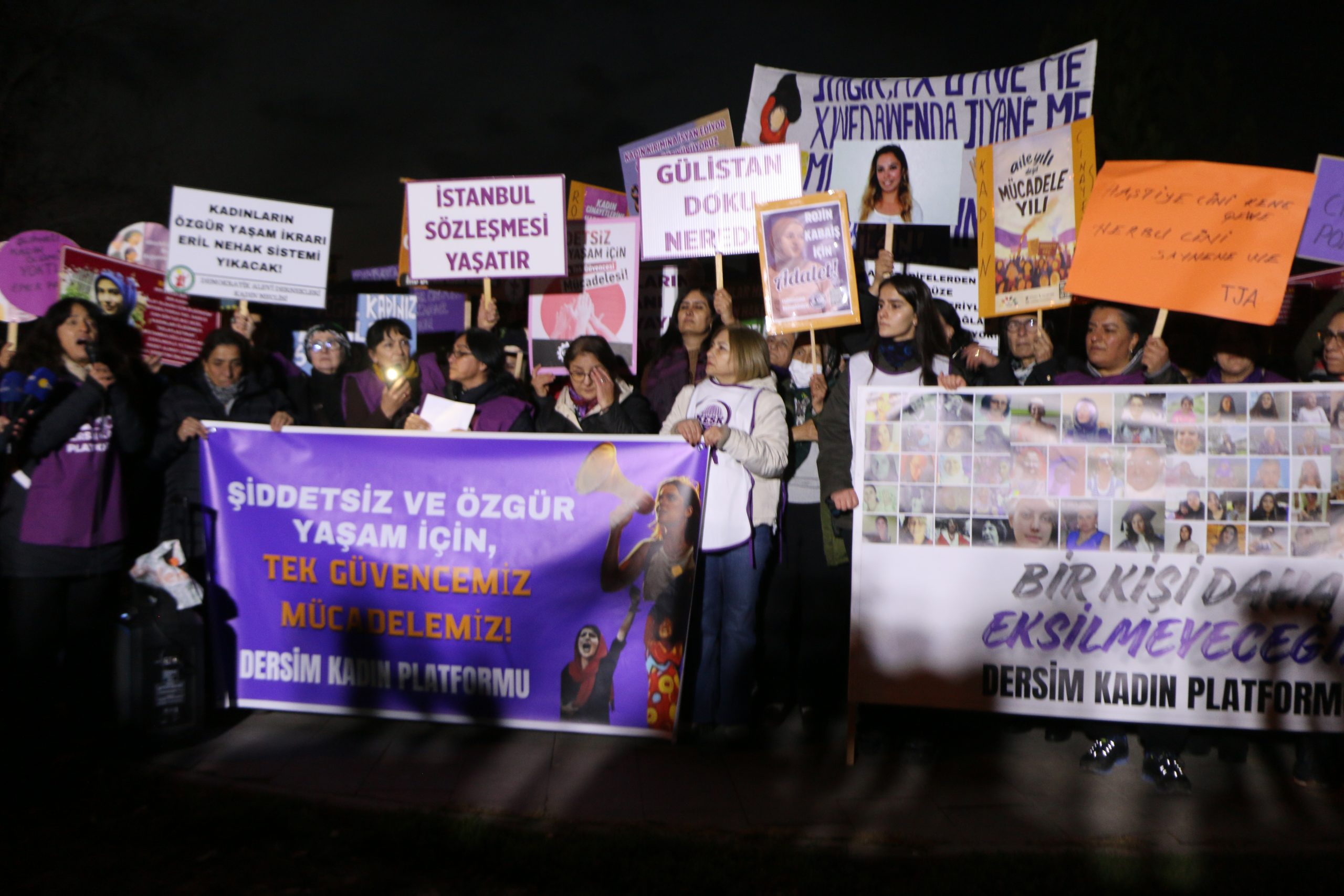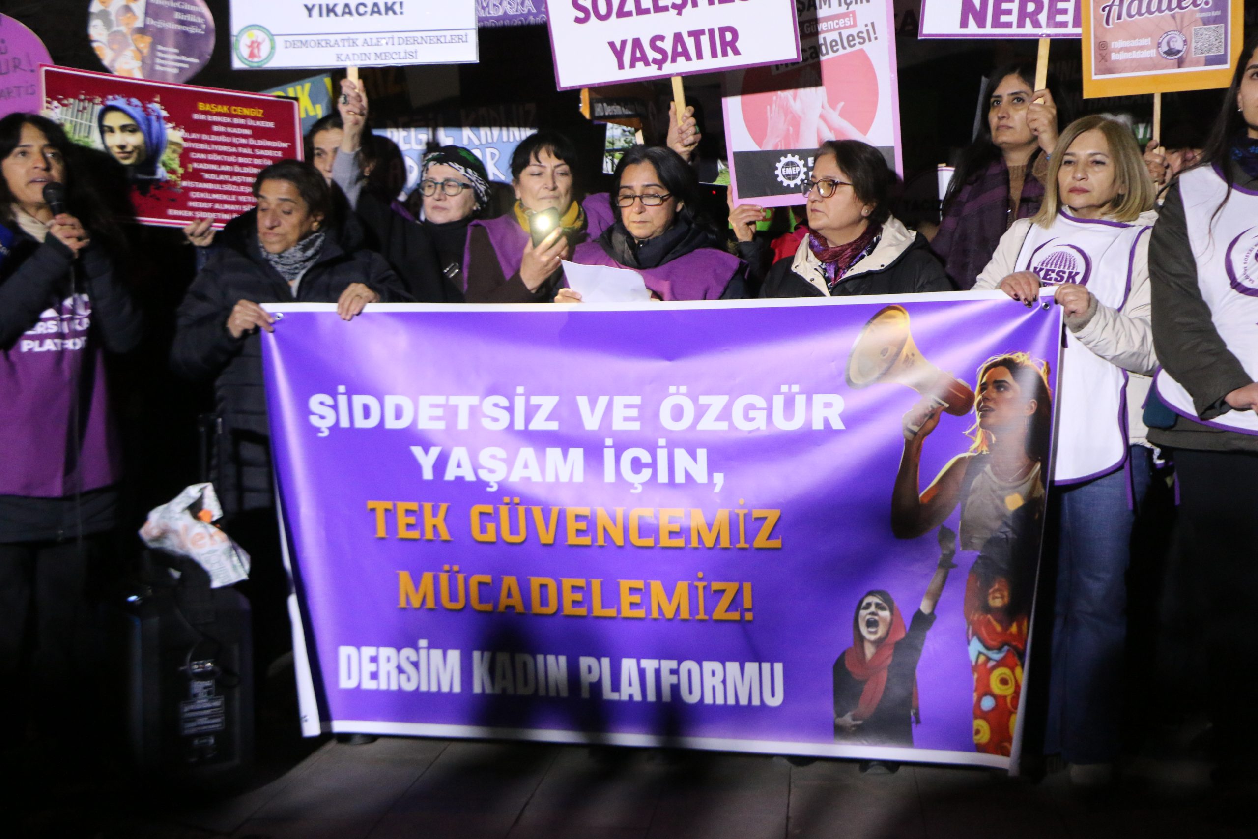 Dersim Kadın Platformu, 25 Kasım Kadına Yönelik Şiddetle Uluslararası Mücadele Günü dolayısıyla Sanat Sokağı’nda bir araya gelerek Seyit Rıza Meydanı’na yürüyüş yaptı. Kadınlar yürüyüşte sık sık, ‘AKP Kadınlardan Elini Çek’, ‘Yaşasın Kadın Dayanışması’, ‘Jin Jiyan Azadi’, ‘Yaşasın Kadın Dayanışması’, ‘Koruma Failleri Yargıla’ sloganları attı.