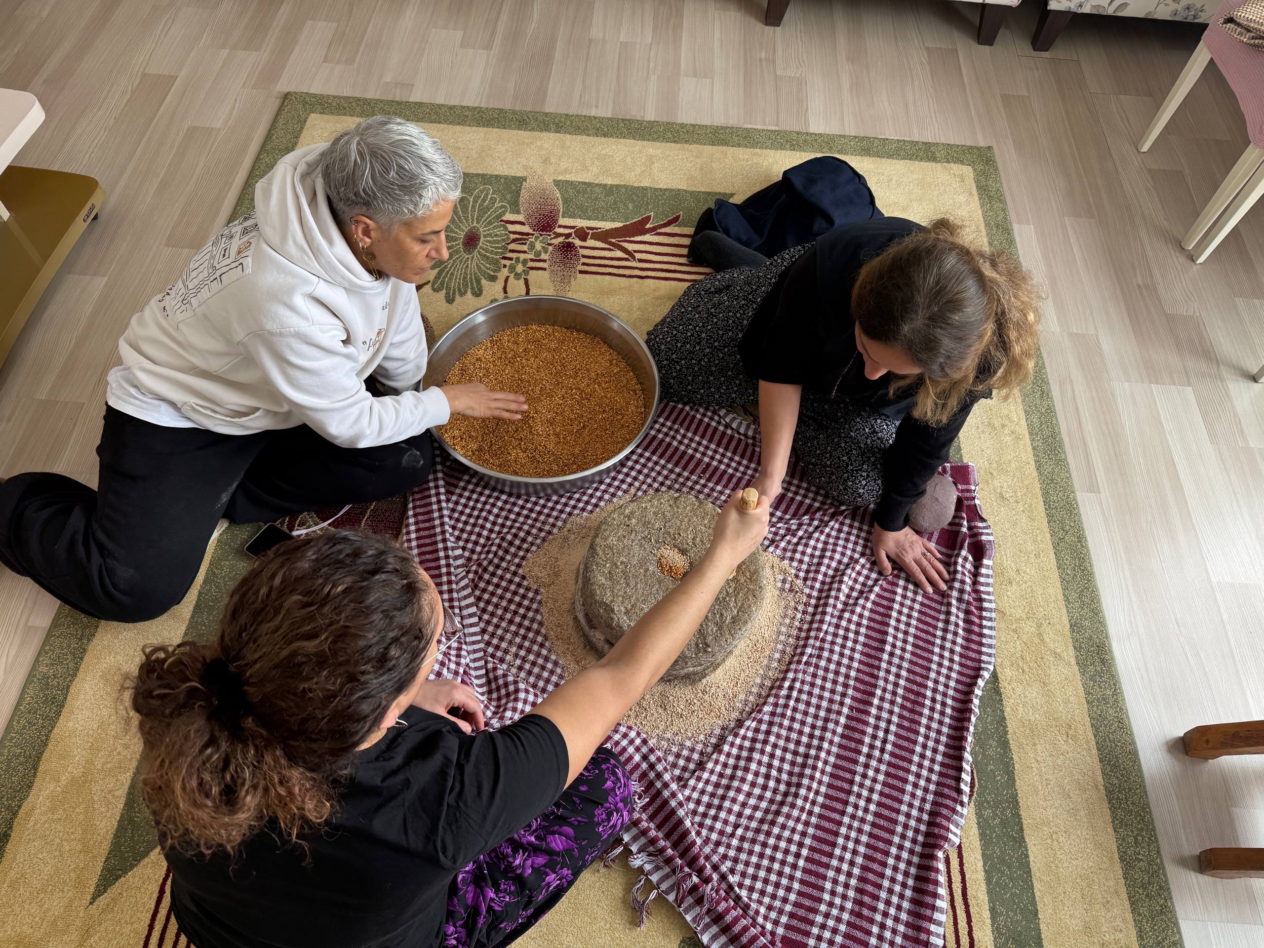 Kvrulan buğdayları Dıstar (el değirmeni) ile un haline getirilme aşamasını anlatan Hülya Bozkurt, “Biz kış ayında Hızır ayı başlarken biz buğdayı günler öncesi yıkarız ve kuruduktan sonra sacı ateşe koyar buğdayı kavururuz. Dıstar dediğimiz el değirmeninde öğütürüz. Sonra tekrar ocağa alır pişiririz. Piştikten sonra kolu komşu çağırır lokmamızı paylaşırız.”