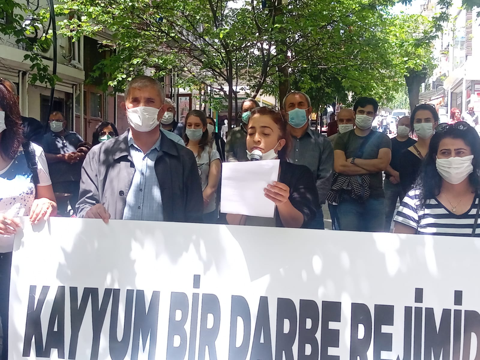 ‘Kayyım bir darbe rejimidir’ pankartının açıldığı açıklama, alkışlarla son buldu.
