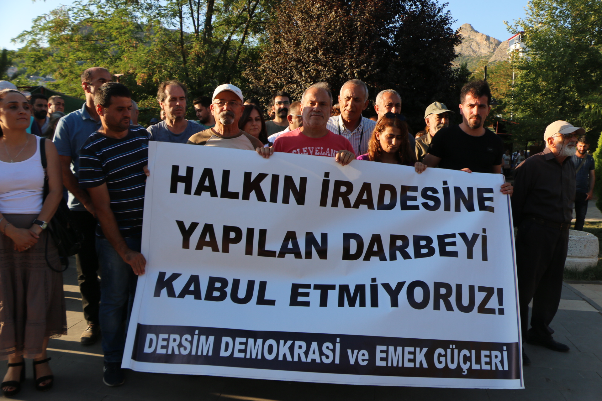PİRHA – Dersim Emek ve Demokrasi Güçleri; Diyarbakır, Van ve Mardin Büyükşehir belediyeleri eş başkanlarının görevden alınması ve kayyum atanmasına ilişkin basın açıklaması gerçekleştirdi. Açıklamada, “Sandıkta kaybettiğini devletin gücünü kullanarak zorla gasp eden AKP-MHP bloku iktidarının bu uygulamaları ile hiçbir meşrutiyeti kalmamıştır” denildi.
