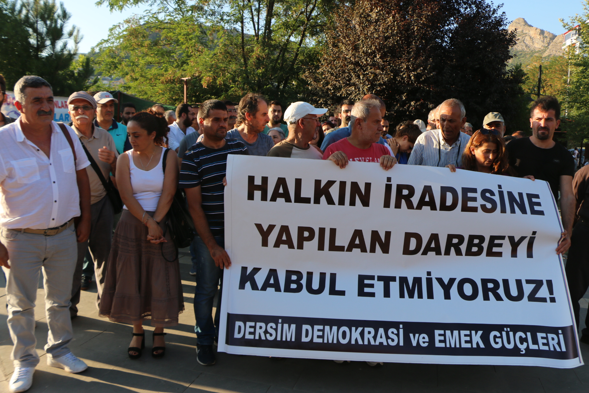 Dersim Emek ve Demokrasi Güçleri, konuya tepki göstermek amacıyla Seyit Rıza Meydanı’nda basın açıklaması yaptı. Açıklamaya siyasi parti ve kurum temsilcileri, sivil toplum kuruluşları, HDP PM üyesi Ferhat Yıldız, Dersim Belediye Başkanı Fatih Maçoğlu ve çok sayıda yurttaş katıldı.