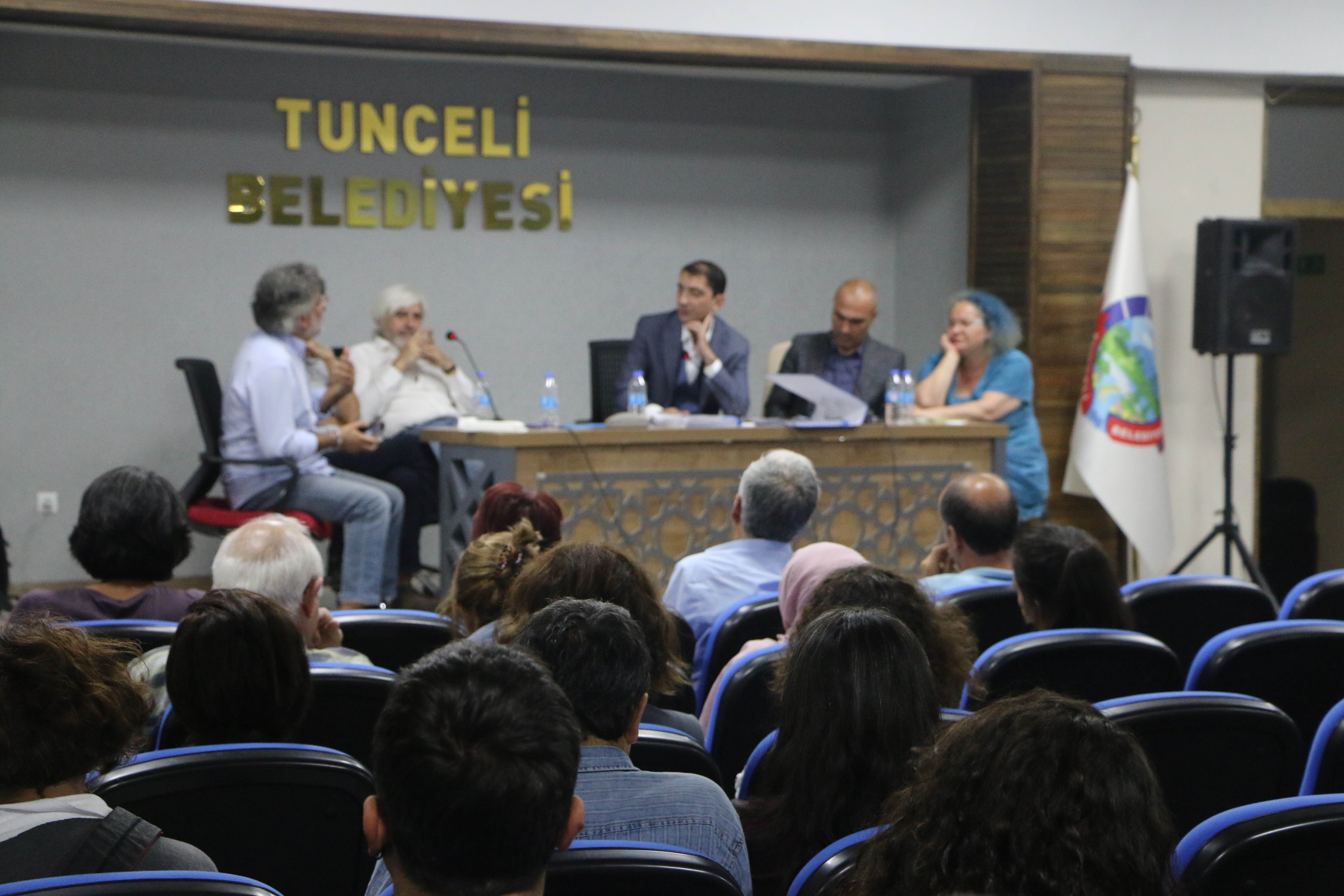 Dersim’de ‘Munzur Projeleri: Ekoloji ve Kültür Konferansı’ gerçekleşti. Belediye konferans salonunda gerçekleşen etkinliğe akademisyen Tayfun Atay, HDP Ekoloji Komisyonu üyesi Cemil Aksu, avukatlar Ümit Altaş ve Barış Yıldırım konuşmacı olarak katıldı. Konferansın moderatörlüğünü ise Av. Sennur Bayboğa ve Akademisyen Bülent Bilmez yaptı.