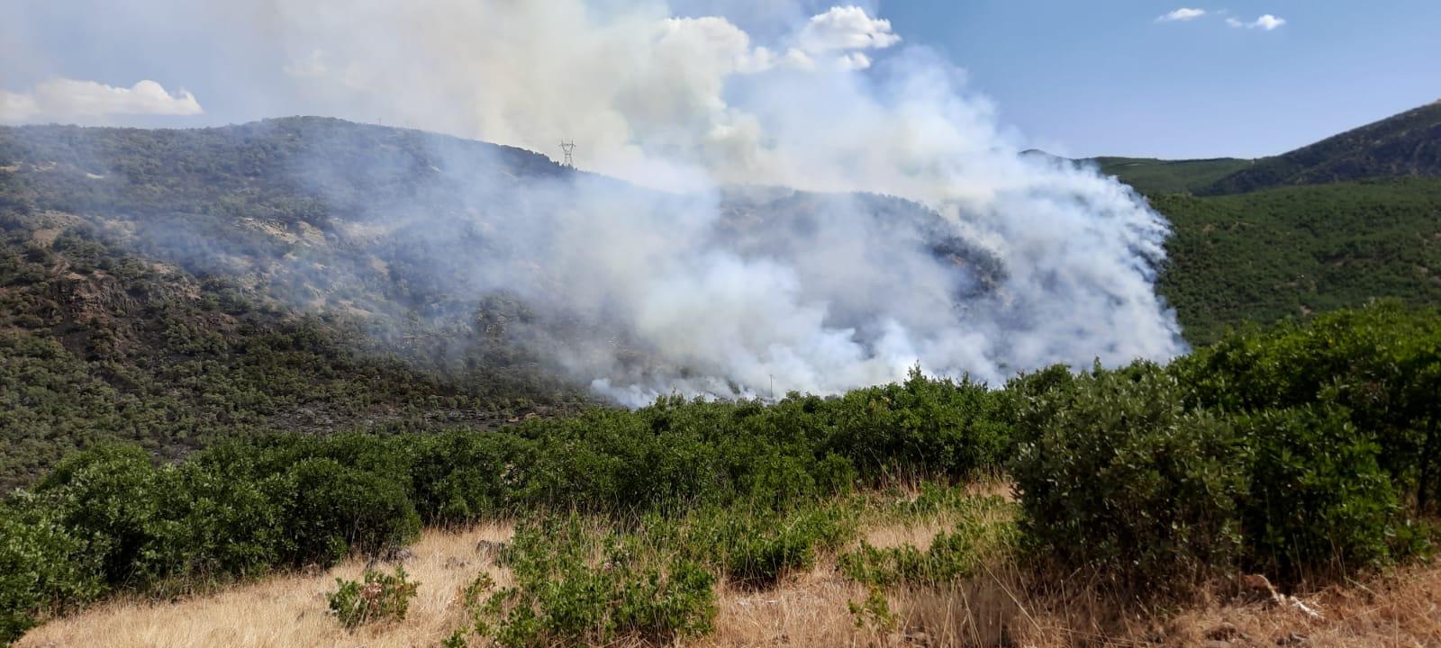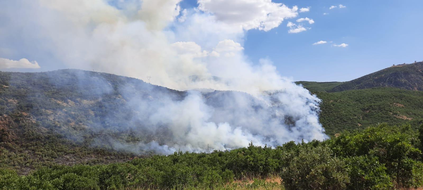 PİRHA- Peri Suyu – Elazığ Karakoçan ilçesi, Yoğunağaç köyü Çukurca (Kortan) mezrası ve Üçbudak (Delikan) köyleri arasında ki bölgede sabah saatlerinde başlayan orman yangını rüzgarın etkisiyle yayıldı.