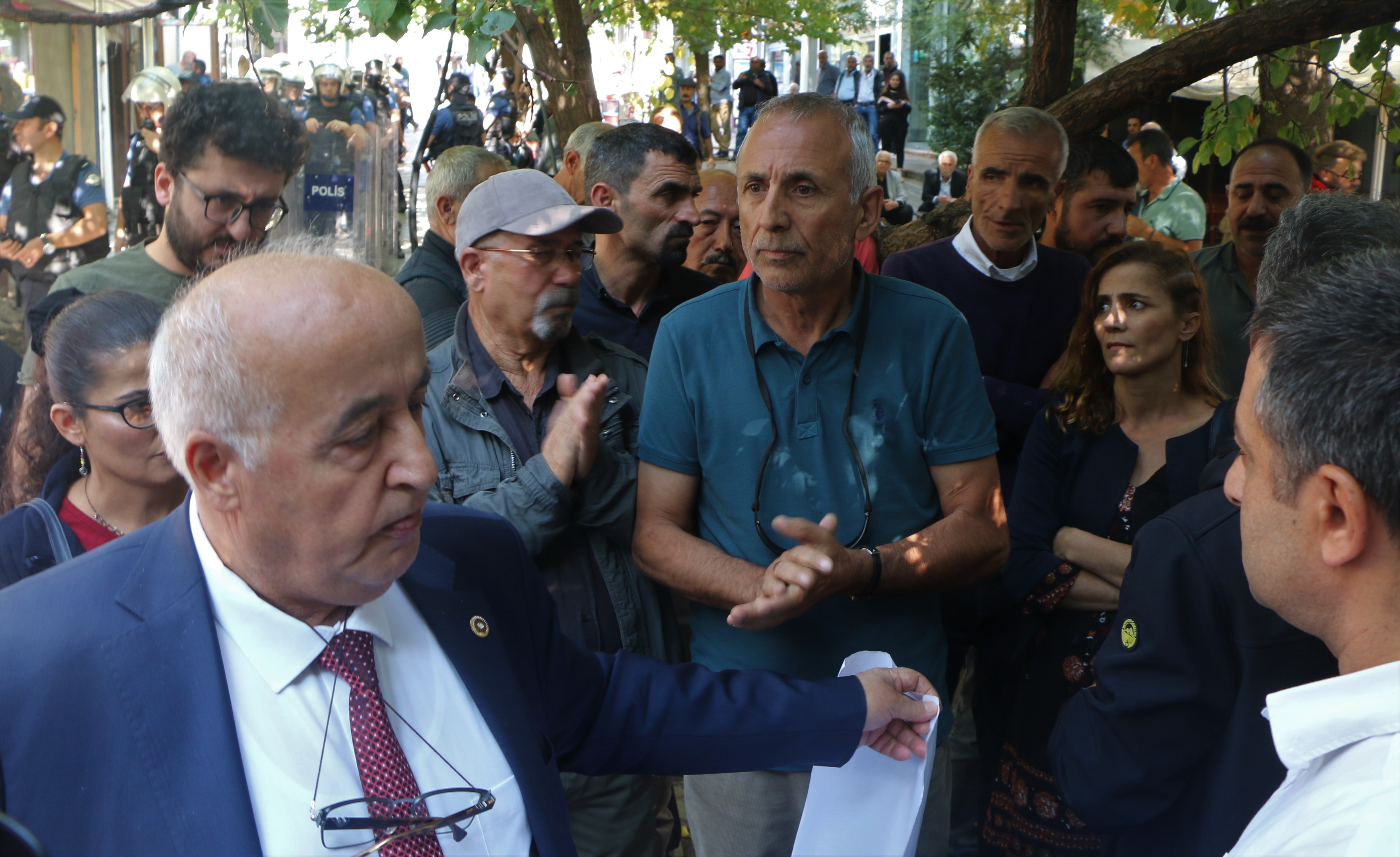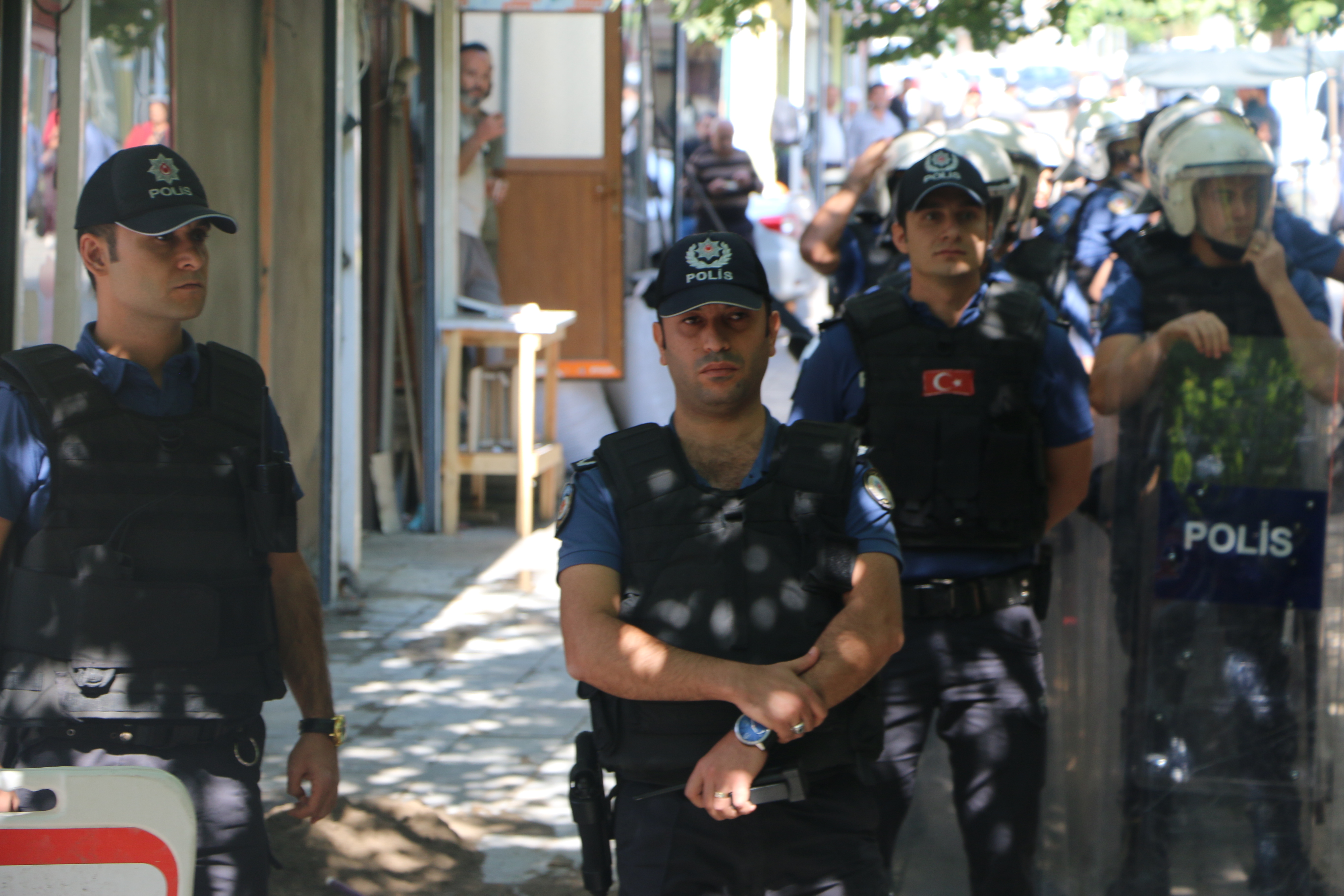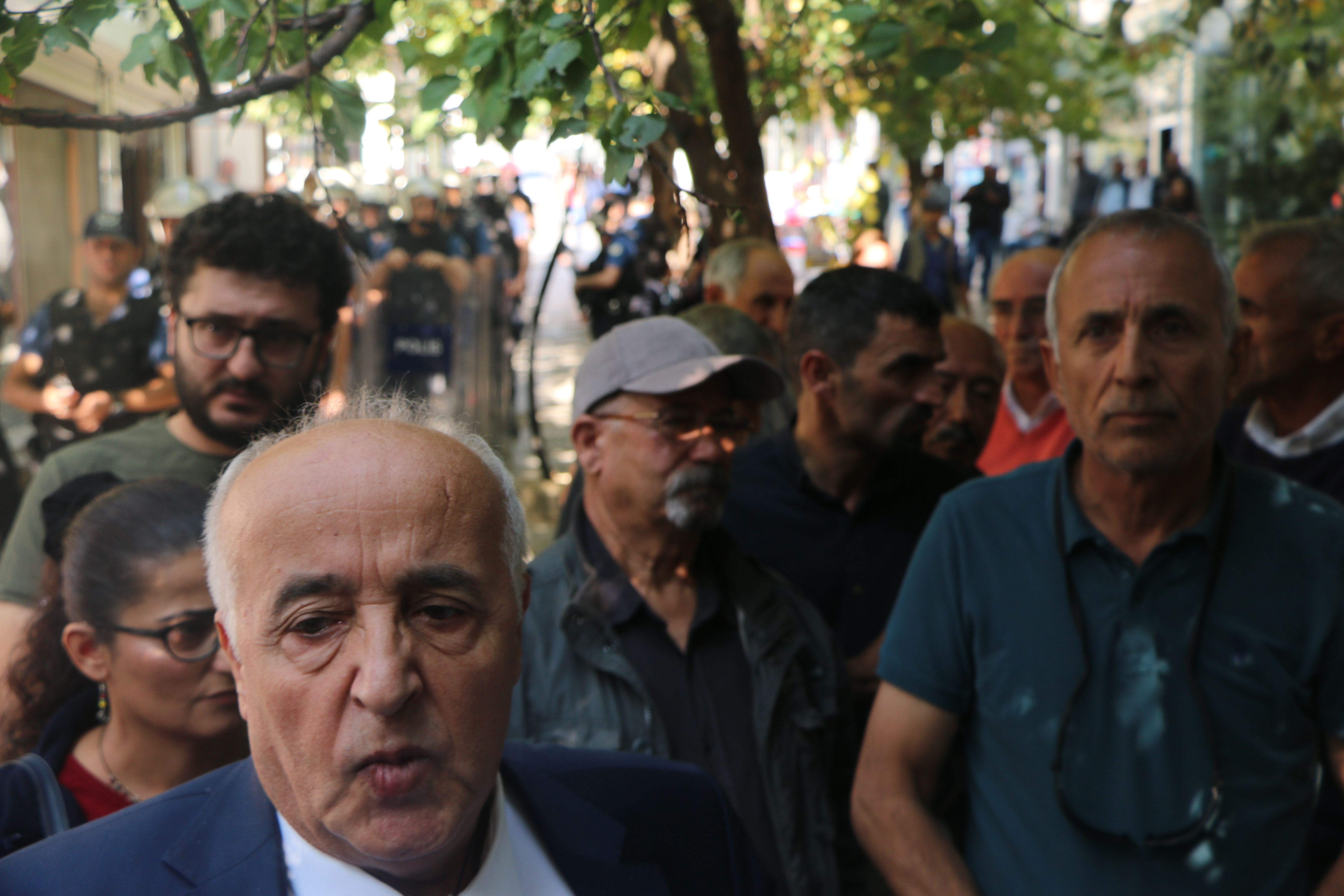Çevik kuvvet polisleri, TOMA ve zırhlı araçların hazır bulunduğu açıklamada polis amiri kitleye açıklama yaptırmayacaklarını, yapıldığı taktirde müdahale edileceğini belirtti.