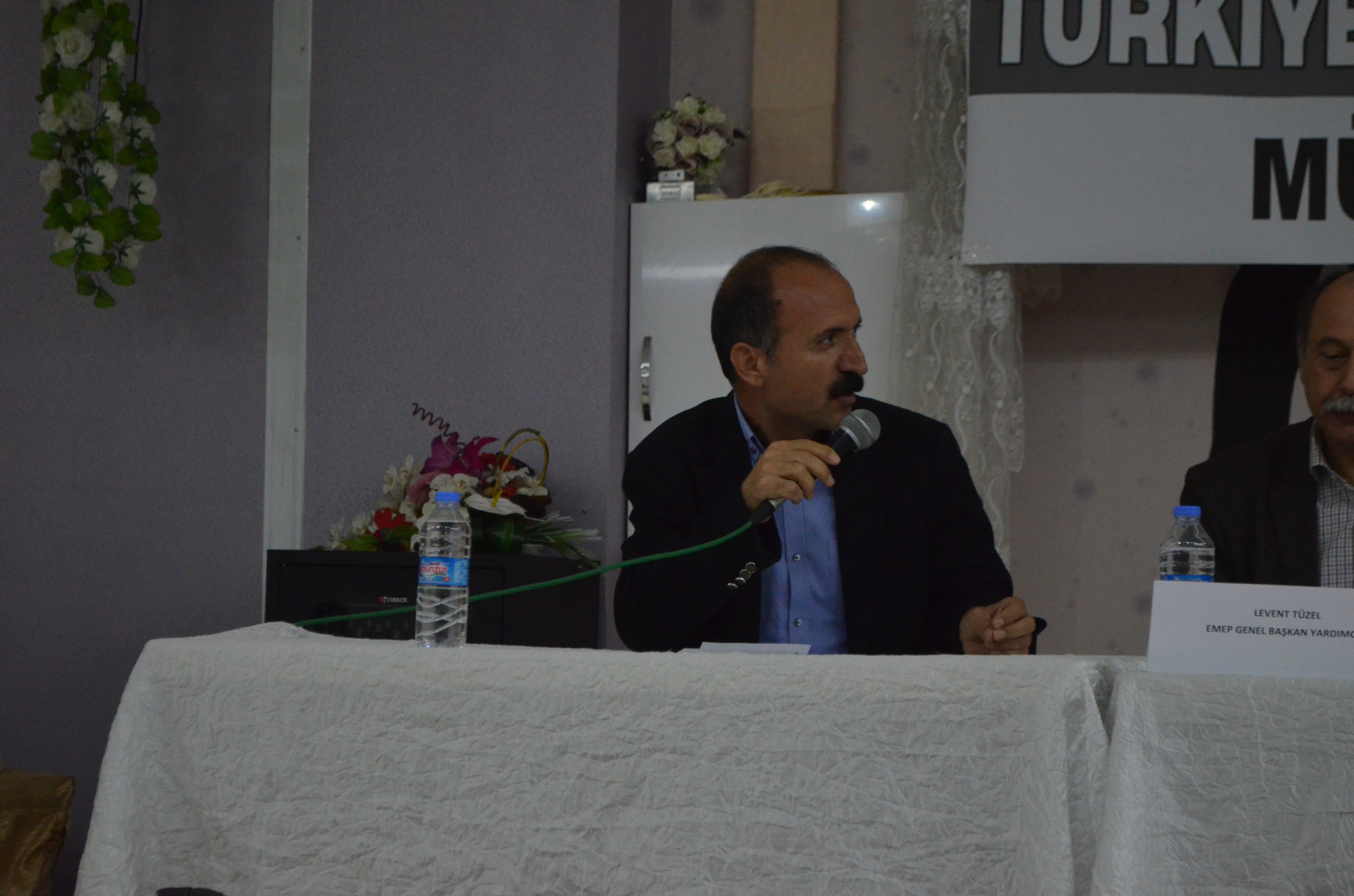 Toplantıda konuşan EMEP Genel Başkan Yardımcısı Levent Tüzel, mahalli, yerel güçlü örgütlenme çalışmalarına şimdiden başlayacaklarını belirtti.