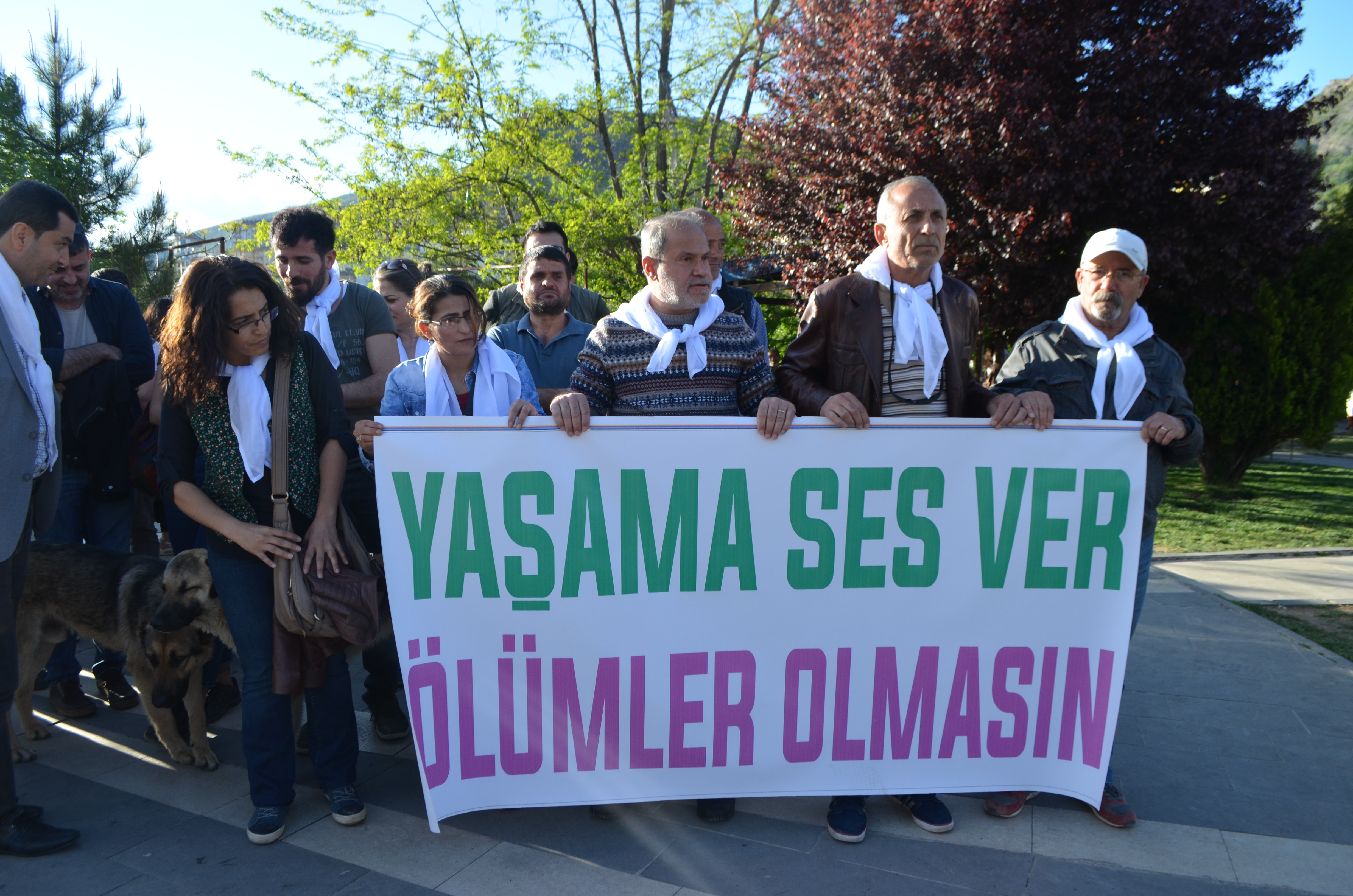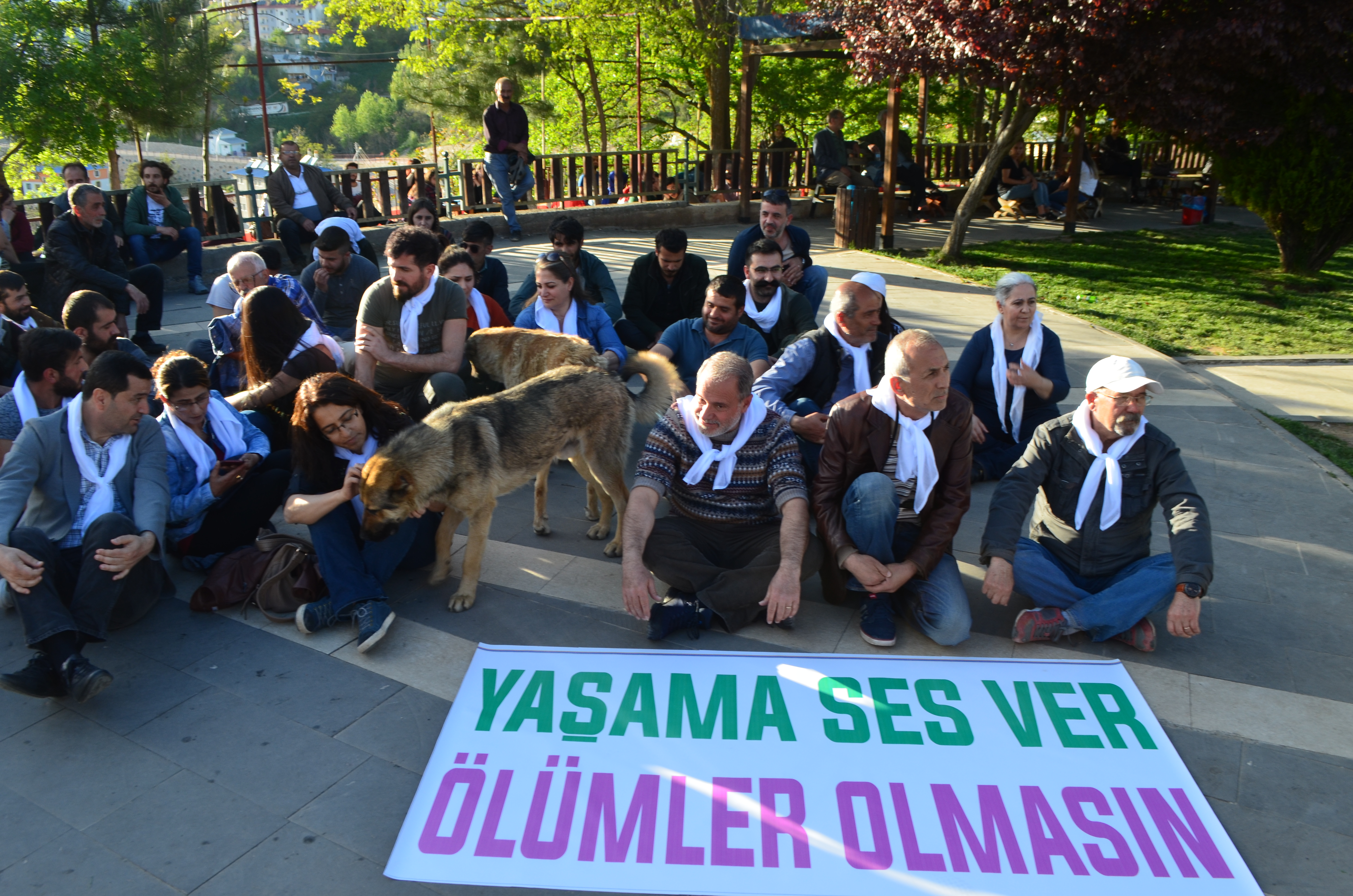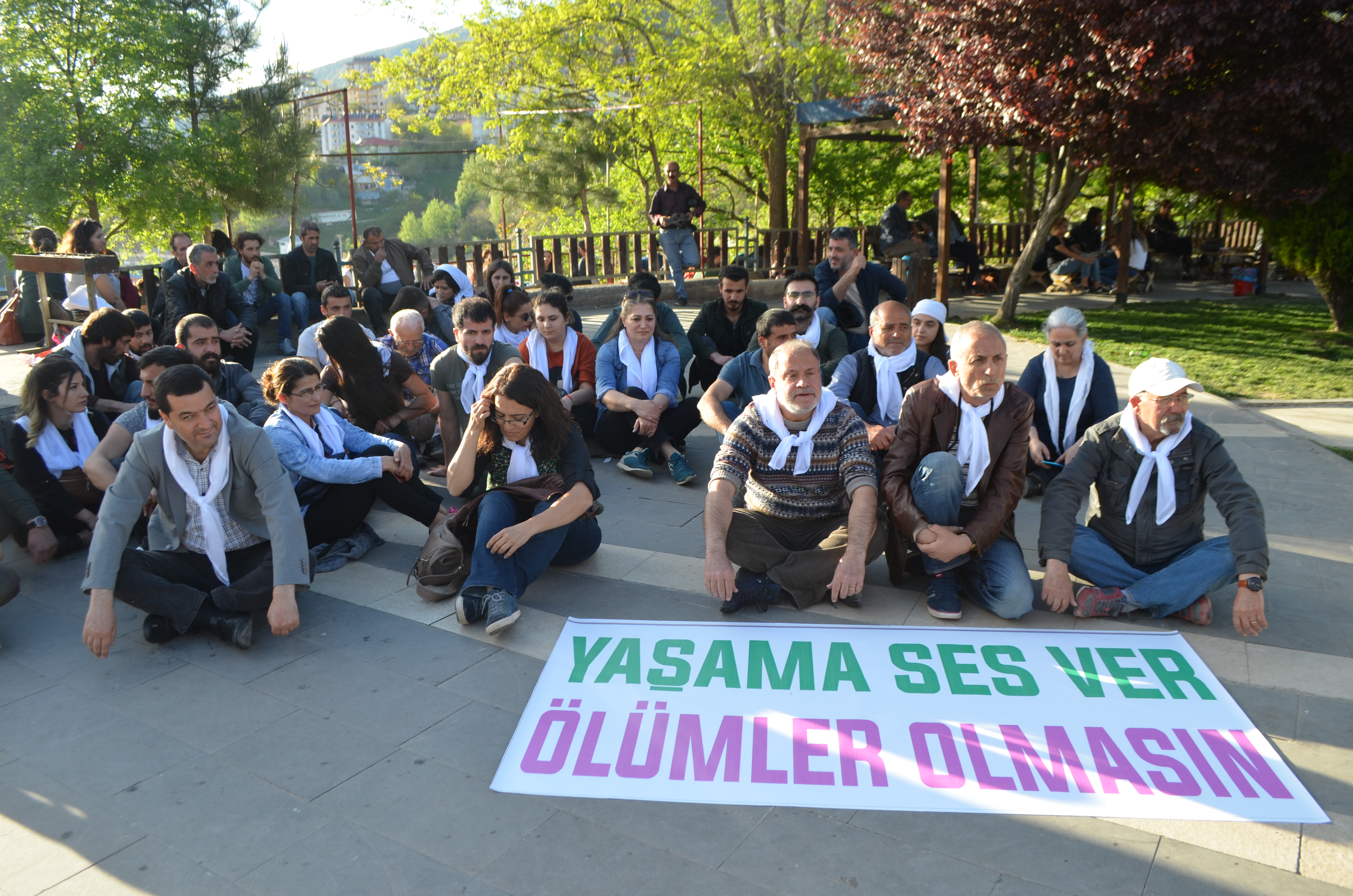Eylemde konuşan HDP Dersim İl Eş Başkanı Hıdır Çiçek, “Tek amacımız; insan yaşamına verdiğimizi değerden dolayı eylemimize devam ediyoruz. 90’larda attığımız susma sustukça sıra sana gelecek’ sloganımız çoğu zaman anlamsız geliyordu. Şimdi o sloganın anlam ve önemi biliniyor. Tüm insanlarımızın hukuksuzluk nereden gelirse gelsin bu adaletsizliğe, hukuksuzluğa karşı olmalarını istiyoruz” diye konuştu.