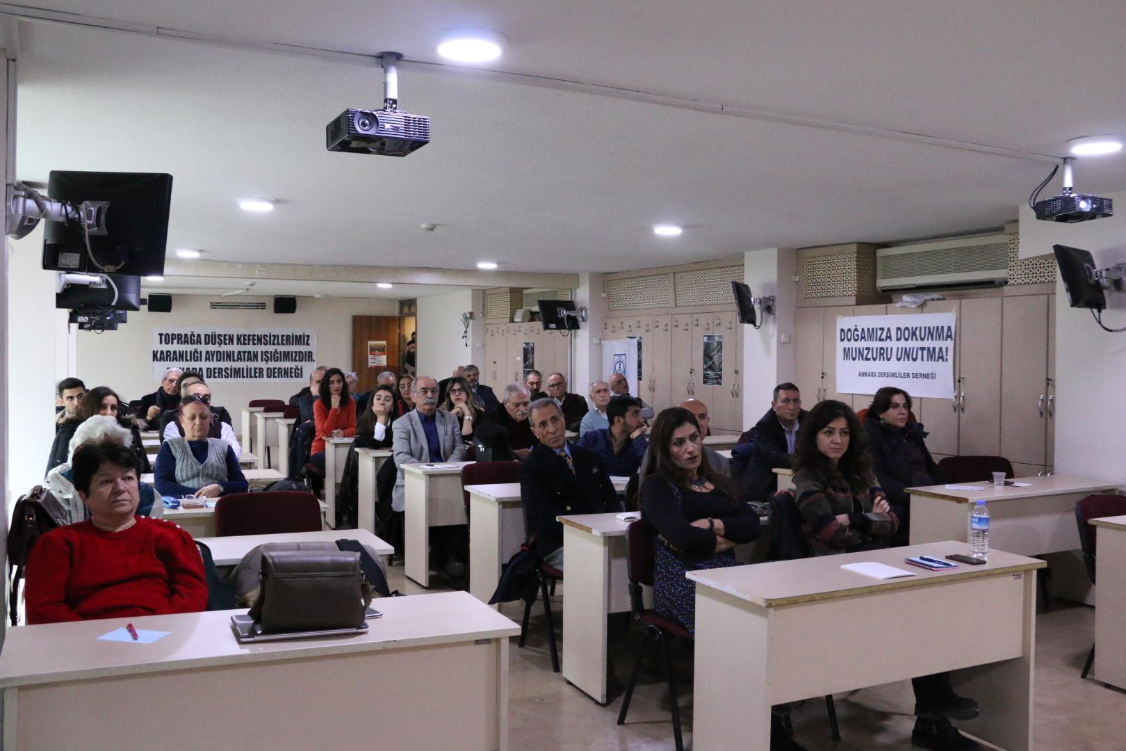 PİRHA – Ankara Dersim- Der, Makina Mühendisleri Odası’nda Dersim 38 Terselesi’ne ilişkin panel düzenledi. Panele PSAKD Eski Başkanı Kazım Genç, Prof Dr. Gülnaz Karatay ve Doç Dr. Burhanettin Kaya katıldı. Panelin moderatörlüğünü ise Av. Ali Sarıgül yaptı.