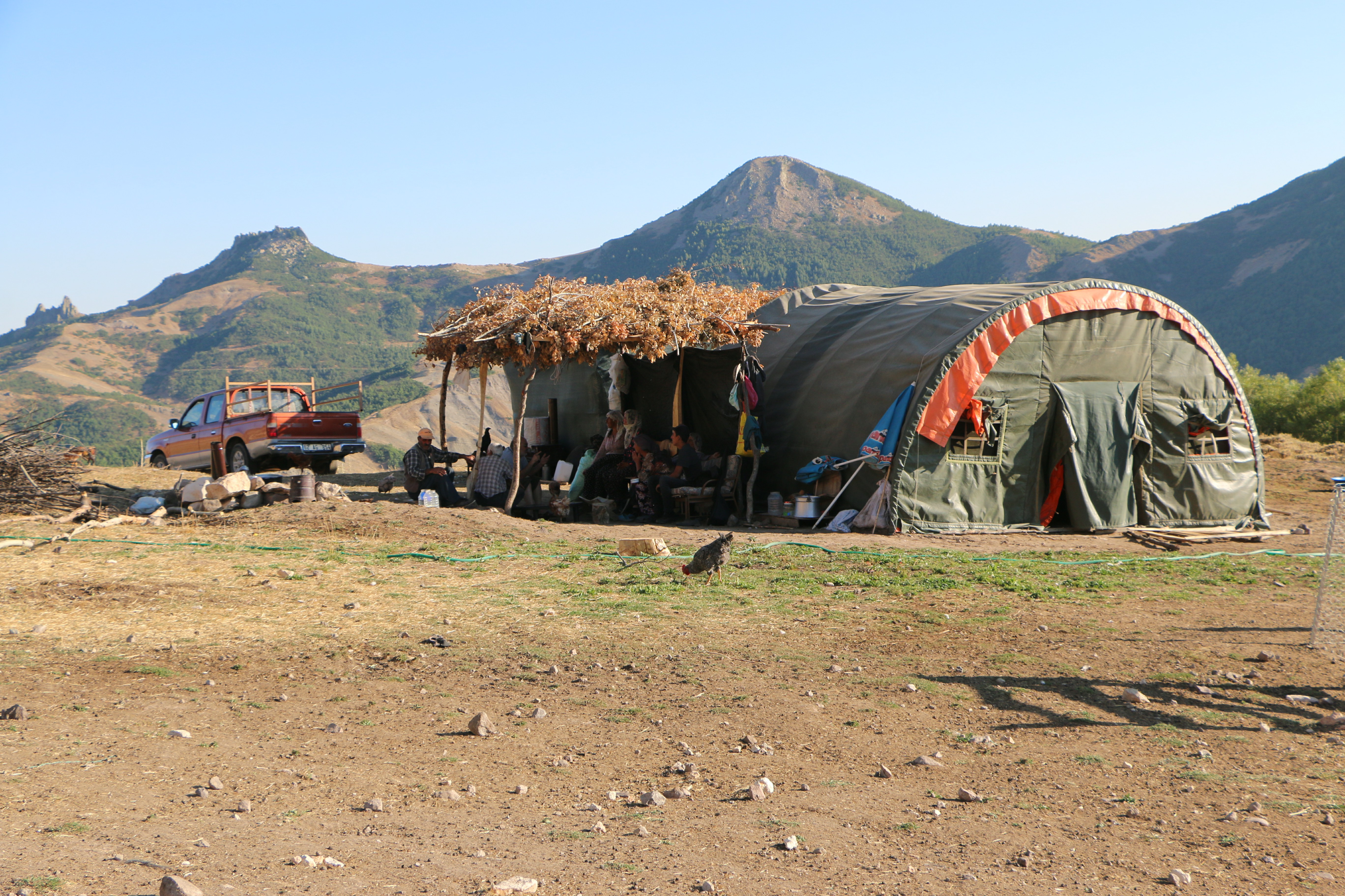 “Beş altı inek, at var, katır var, arabamız var. Komşulardan biri Derviş Cemal köyünden, geldi yanımıza. Yanımızdakiler kureyşanlılardır. Ziyaret yerlerine gideriz her zaman. Sarı Saltığa ziyaretçiler gelip gider mum çıla yakar giderler. Ayrıca bu ziyarete de bakarız eksikleri varsa tamamlarız. 15 yıldır buraya geliyoruz. İki yıl korktuk gelmedik. Şimdi iki yıldır geliyoruz buralara. Ondan öncede geliyorduk. Asker yok arama yok o yüzden rahatız. Önceden vardı. Arama olurdu, olay olduğunda halkı gözaltına alır götürürlerdi, arama yaparlardı, sıkıştırırlardı.”