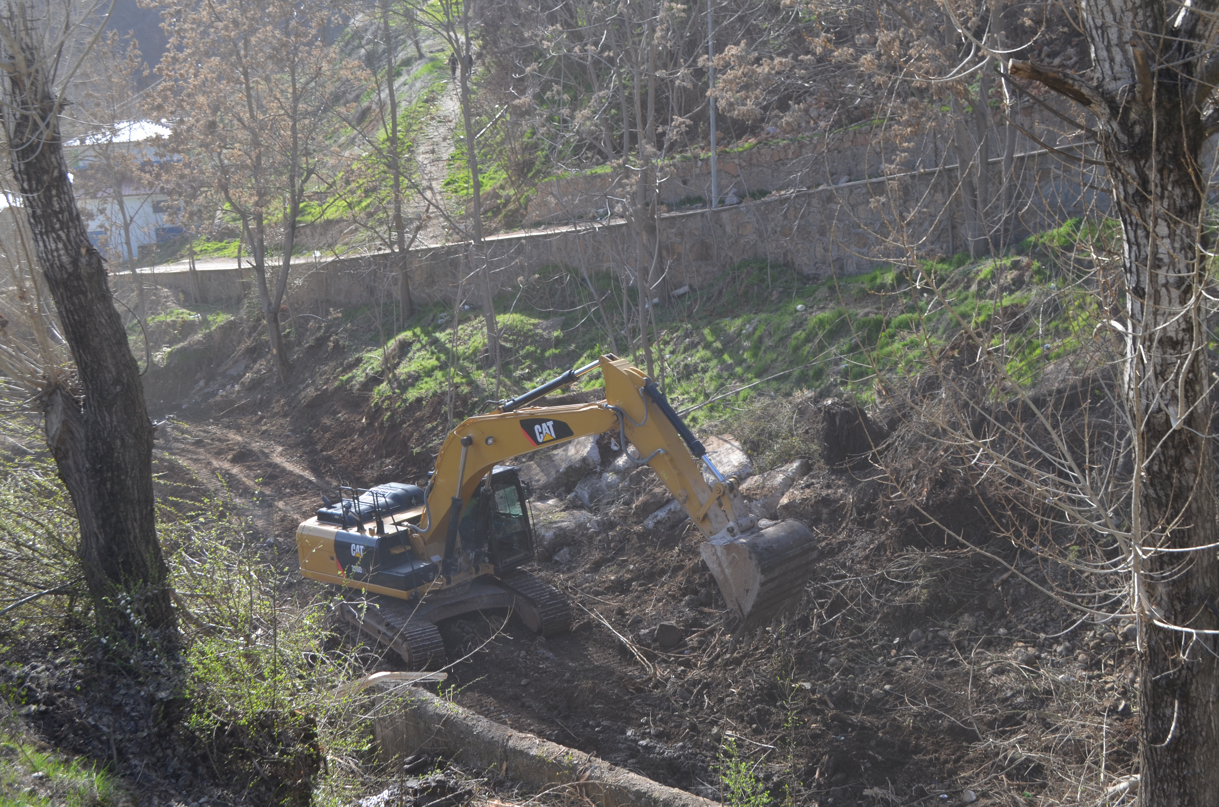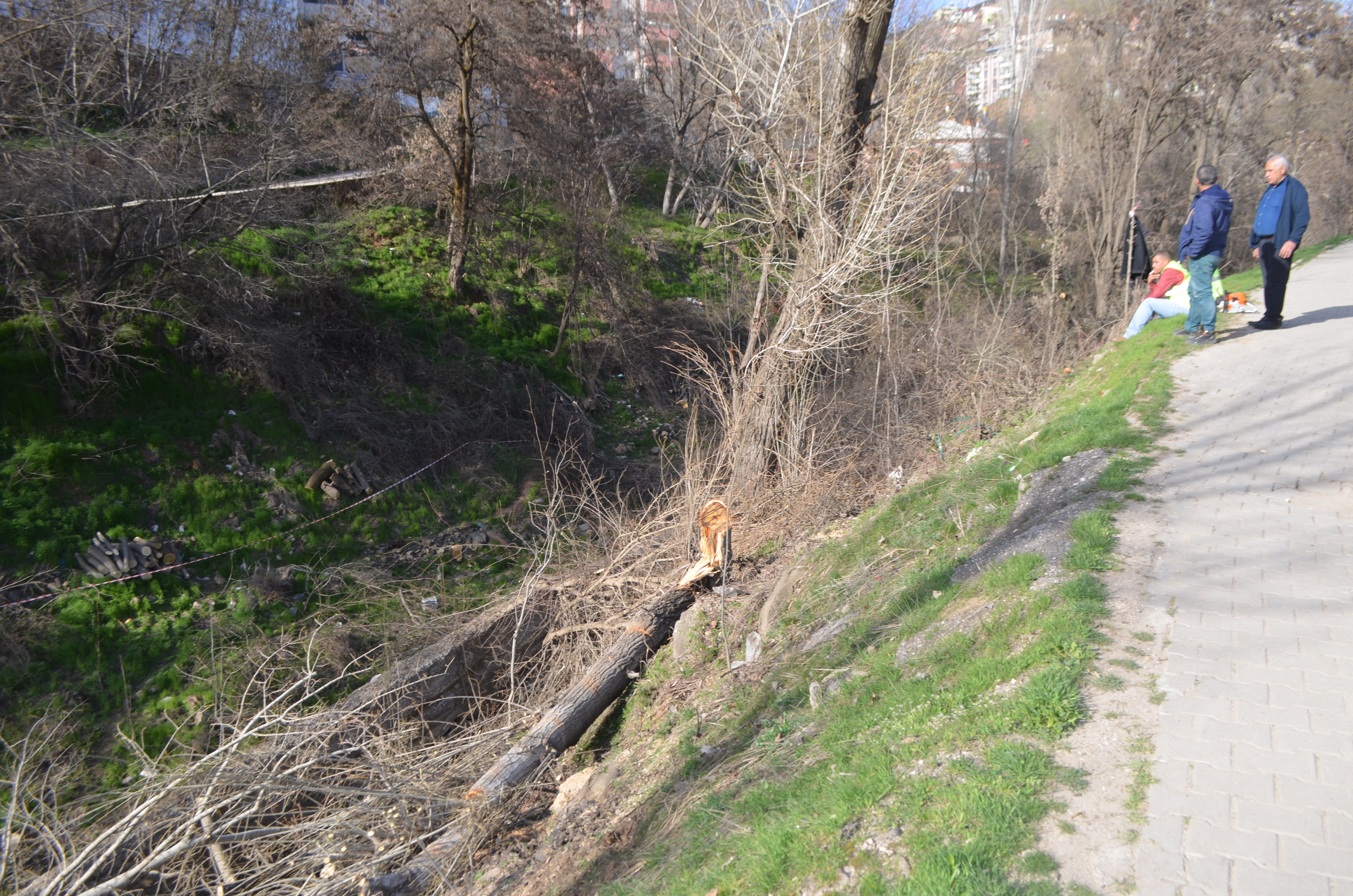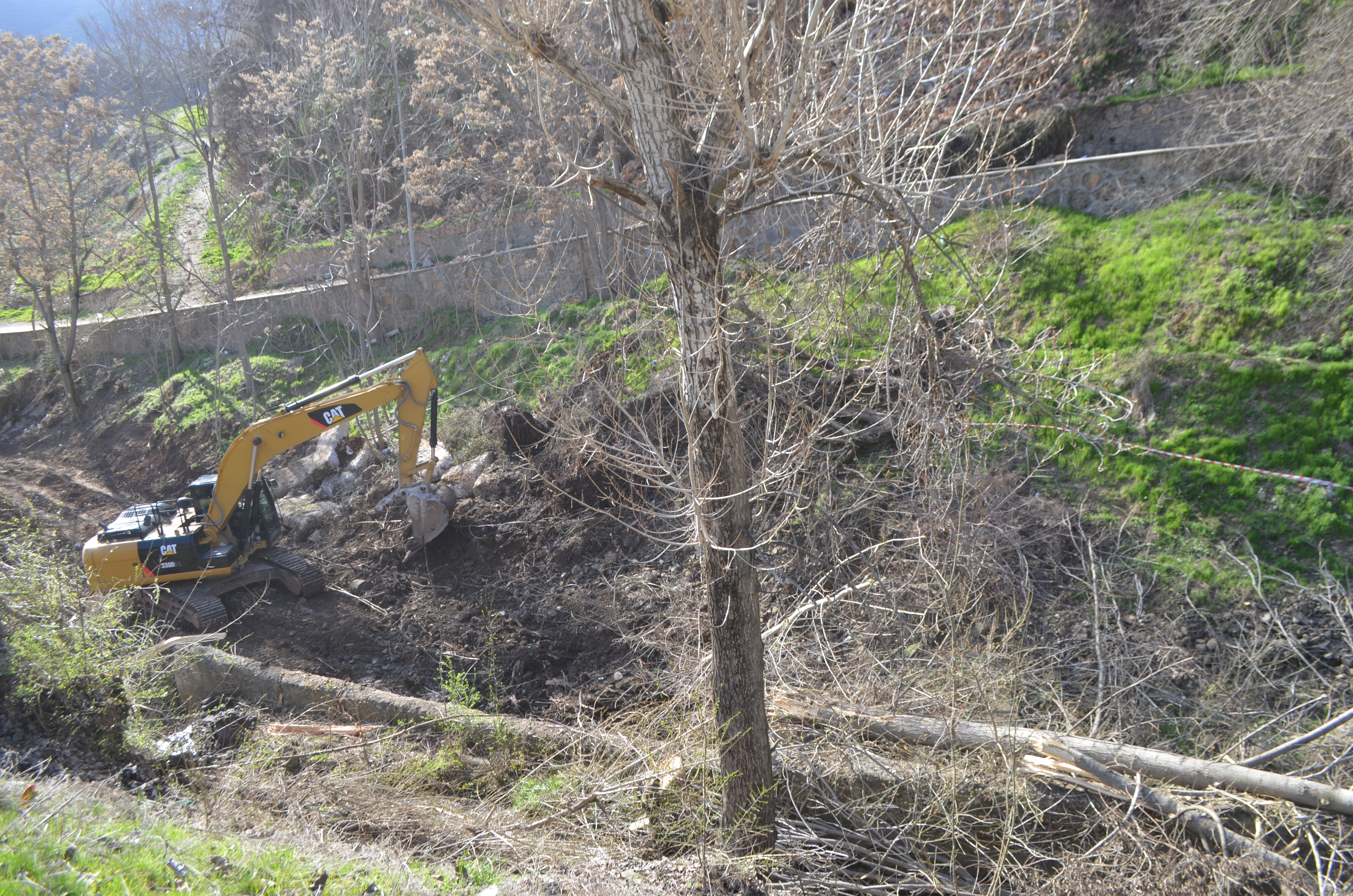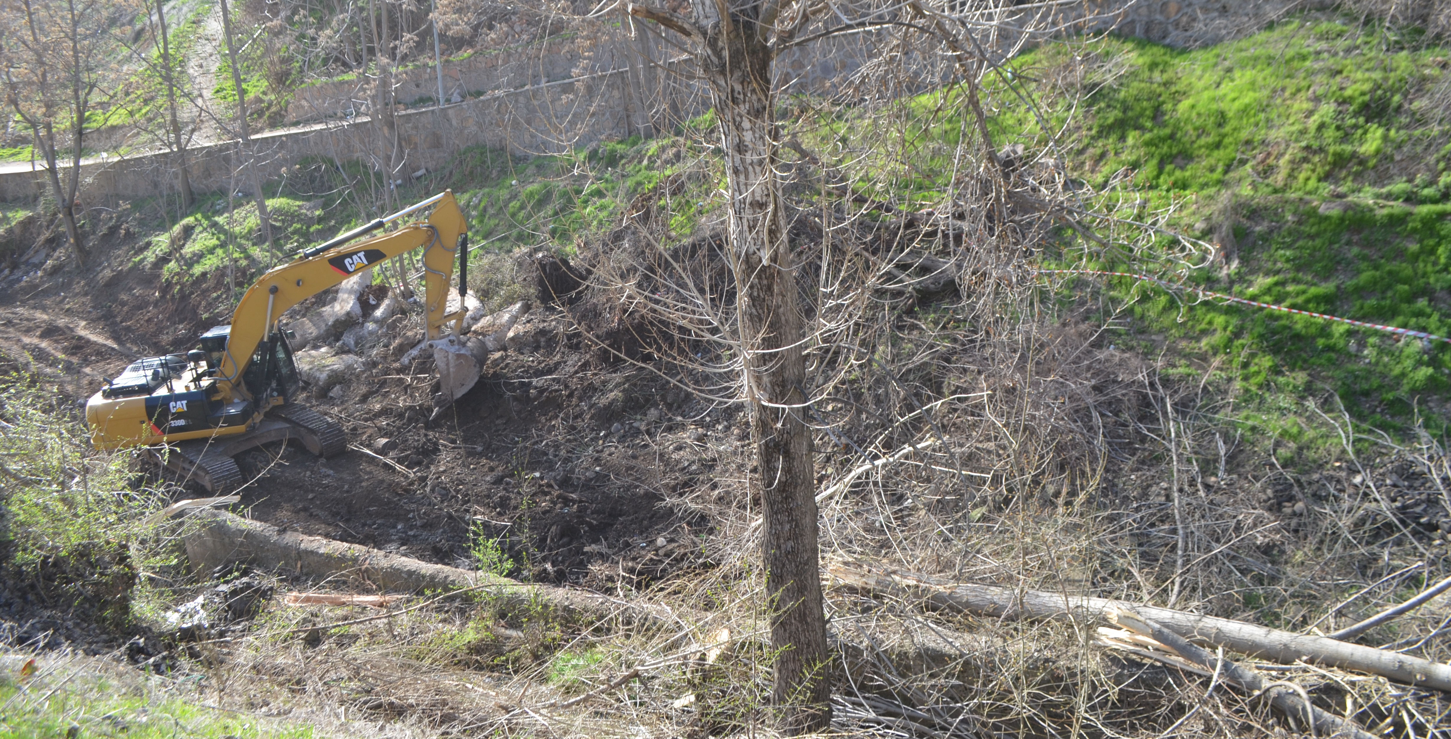 PİRHA – Dersim merkezde Demiroluk mevkii boyunca uzanan dere üzerinde yol genişletme çalışmaları başladı. Bu kapsamda çarşı merkezine giden yol boyunca sıra sıra dizilen onlarca ağaç kesildi.