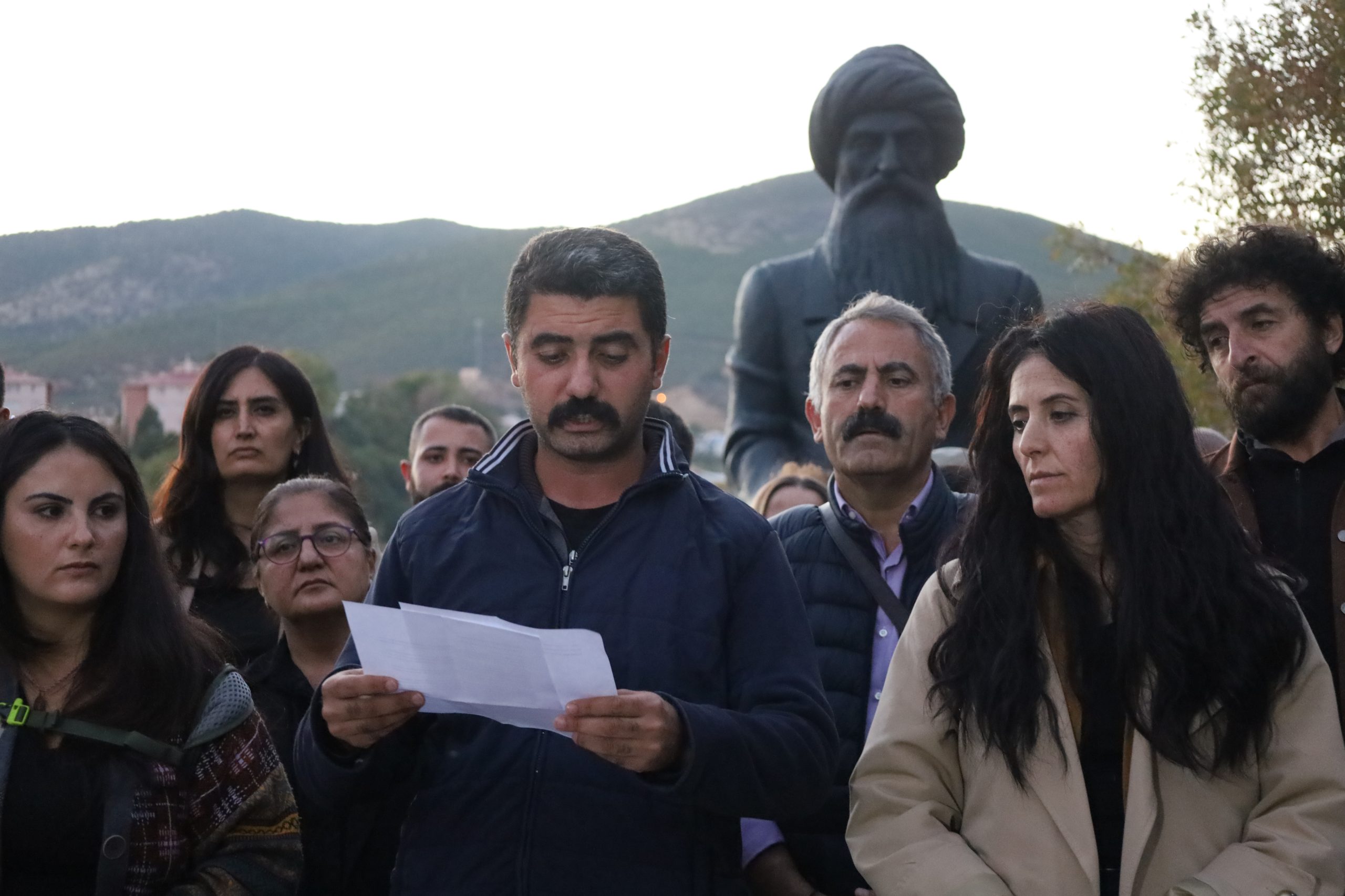 Açıklamaya Halkların Eşitlik ve Demokrasi Partisi (DEM Parti) Milletvekili Ayten Kordu, yerlerine kayyım atanan Dersim Belediye Eş Başkanları, siyasi parti ve sivil toplum örgütleri temsilcileri katıldı.