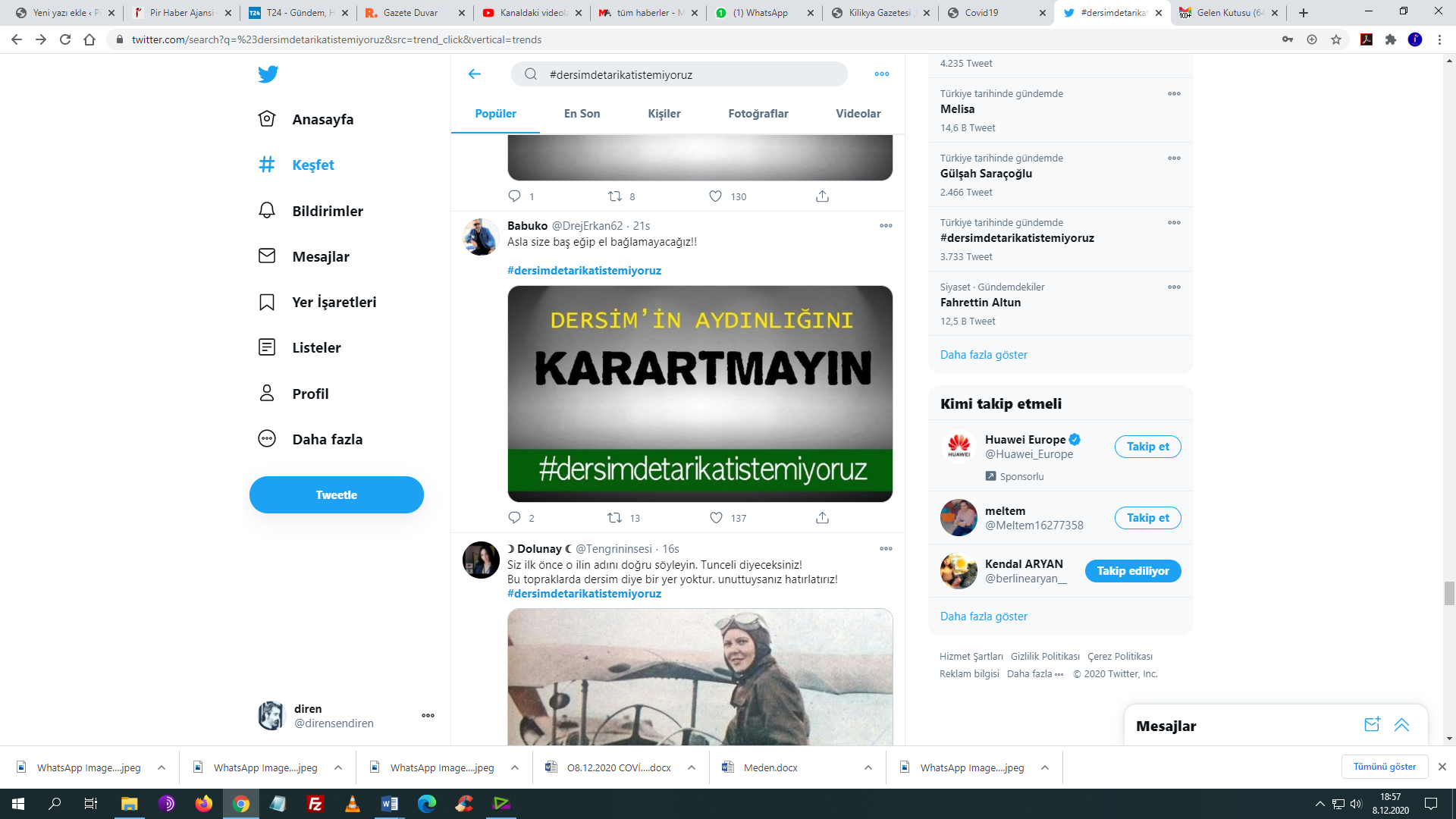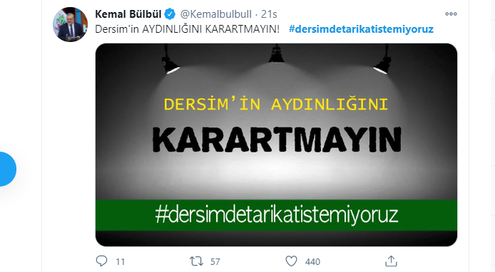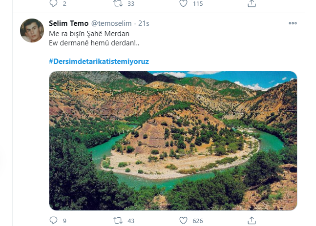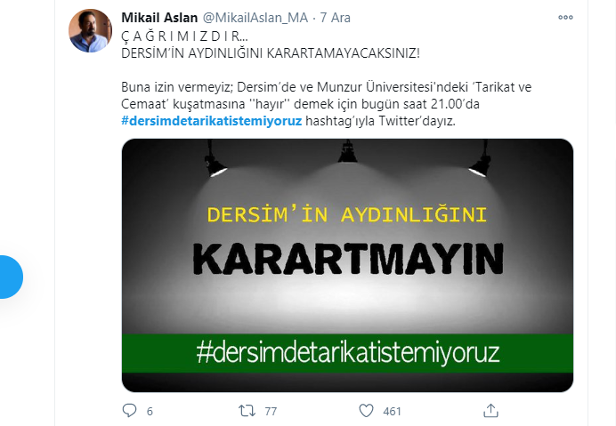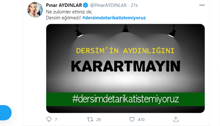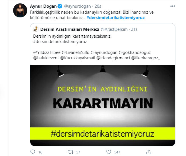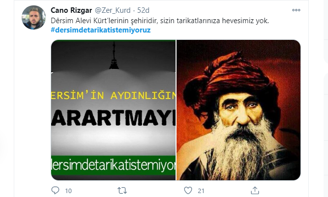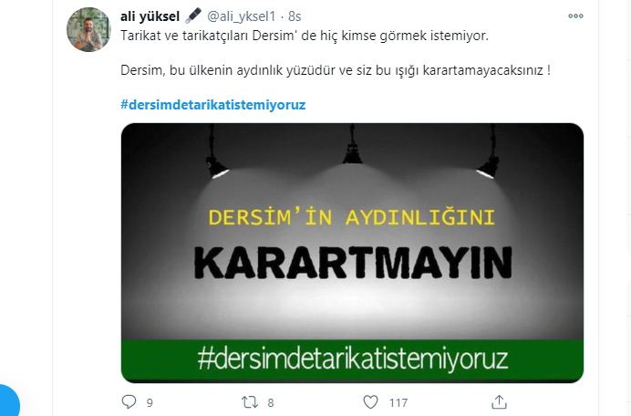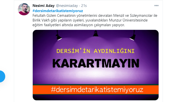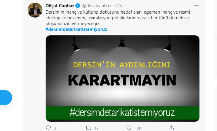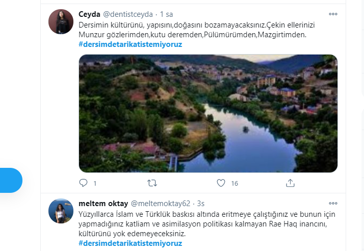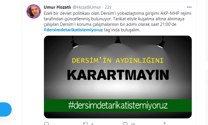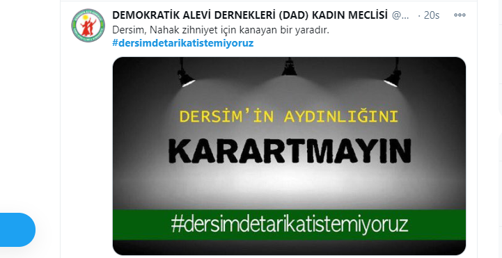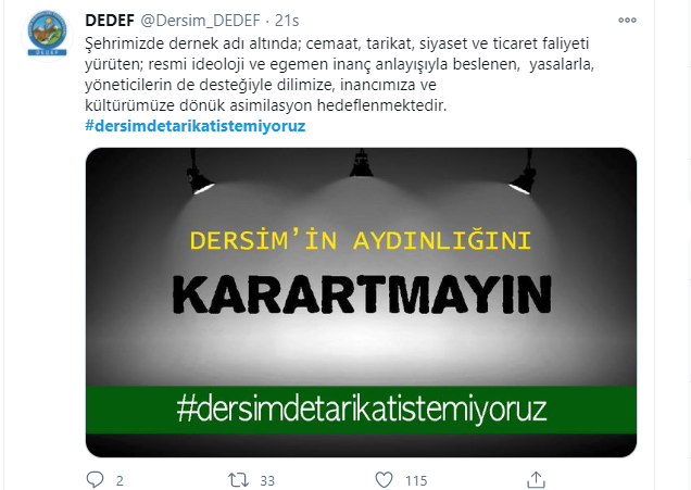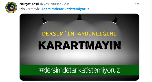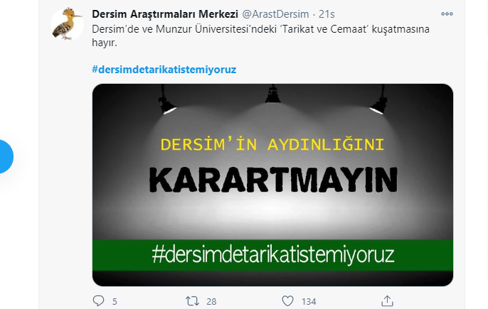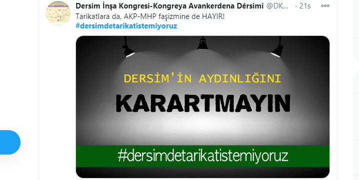 PİRHA-Sosyal medya üzerinden açılan Hastang ile siyasetçiler, yazarlar, sanatçılar, kurumlar ve yurttaşlar tepkilerini dile getirerek, “#dersimdetarikatistemiyoruz ” dedi.