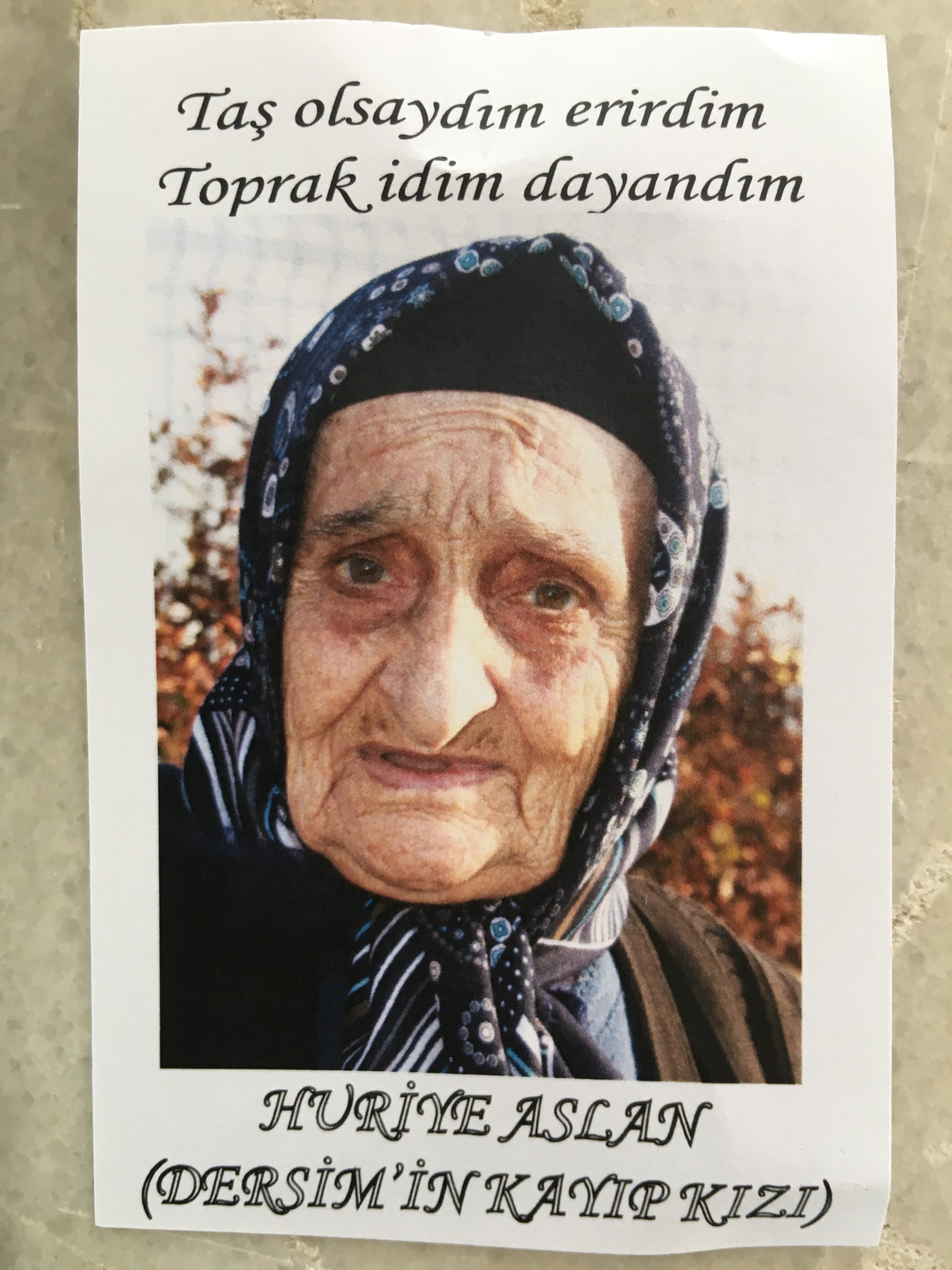 1938 Dersim Katliamı’nda ailesinden koparılıp evlatlık verilen ve tam 72 yıl sonra ailesine ve kardeşine kavuşan Huriye Aslan Dersim’de hakka yürüdü. Aslan için bugün 1 Mayıs (Ataşehir) Cemevinde hakka yürüme erkanı yapıldı. Aslan erkanın ardından Dersim topraklarına uğurlandı.