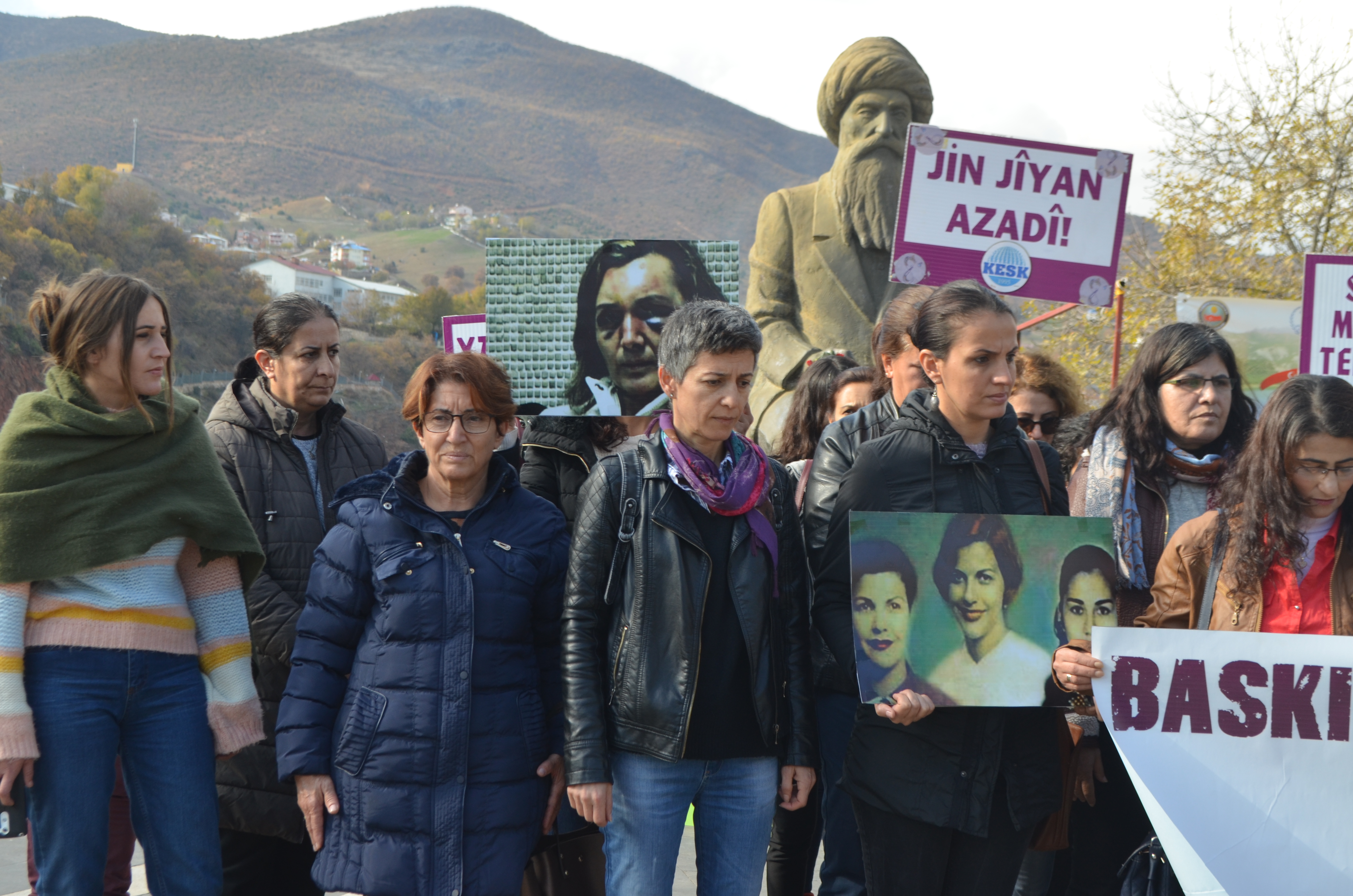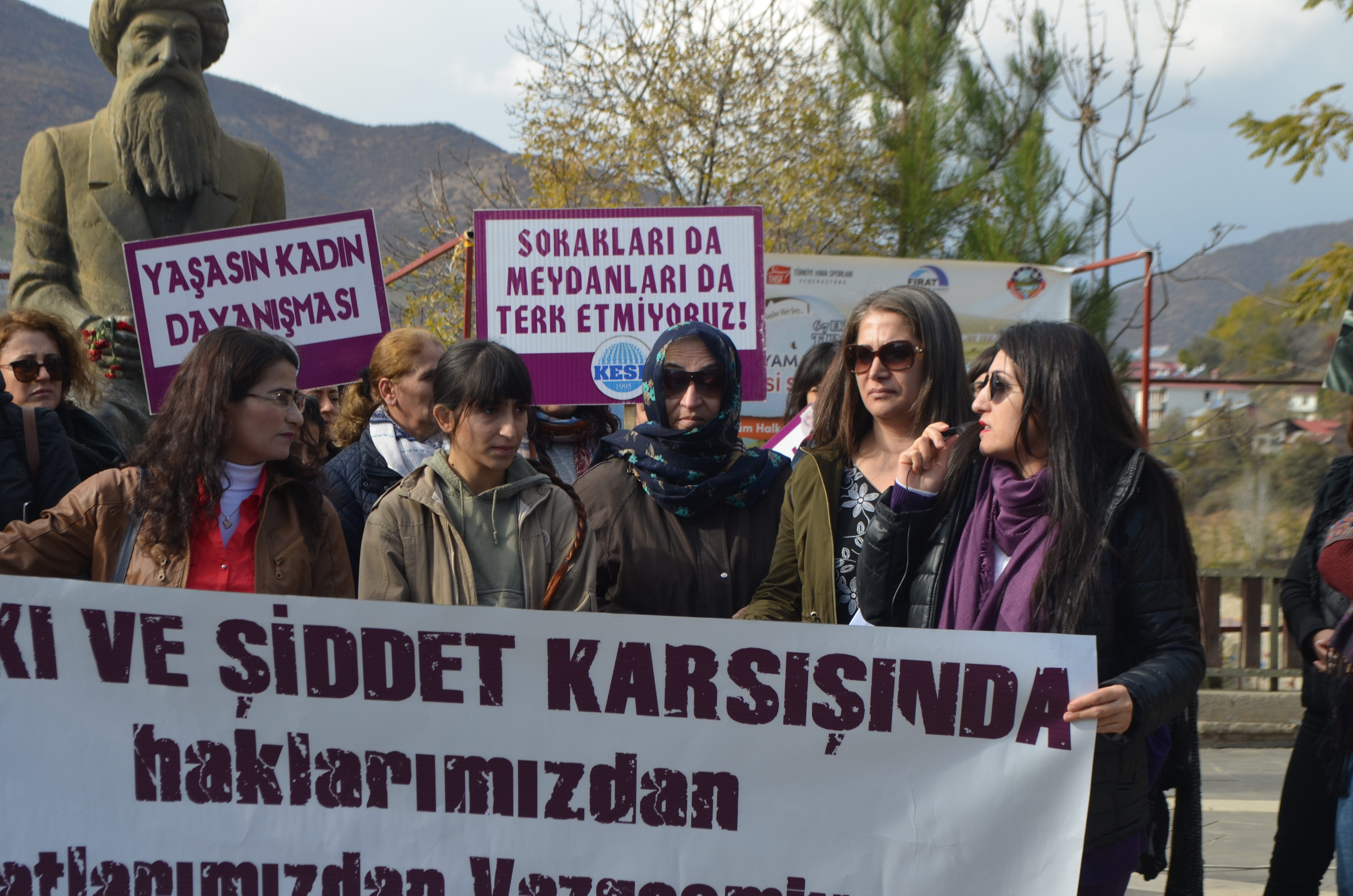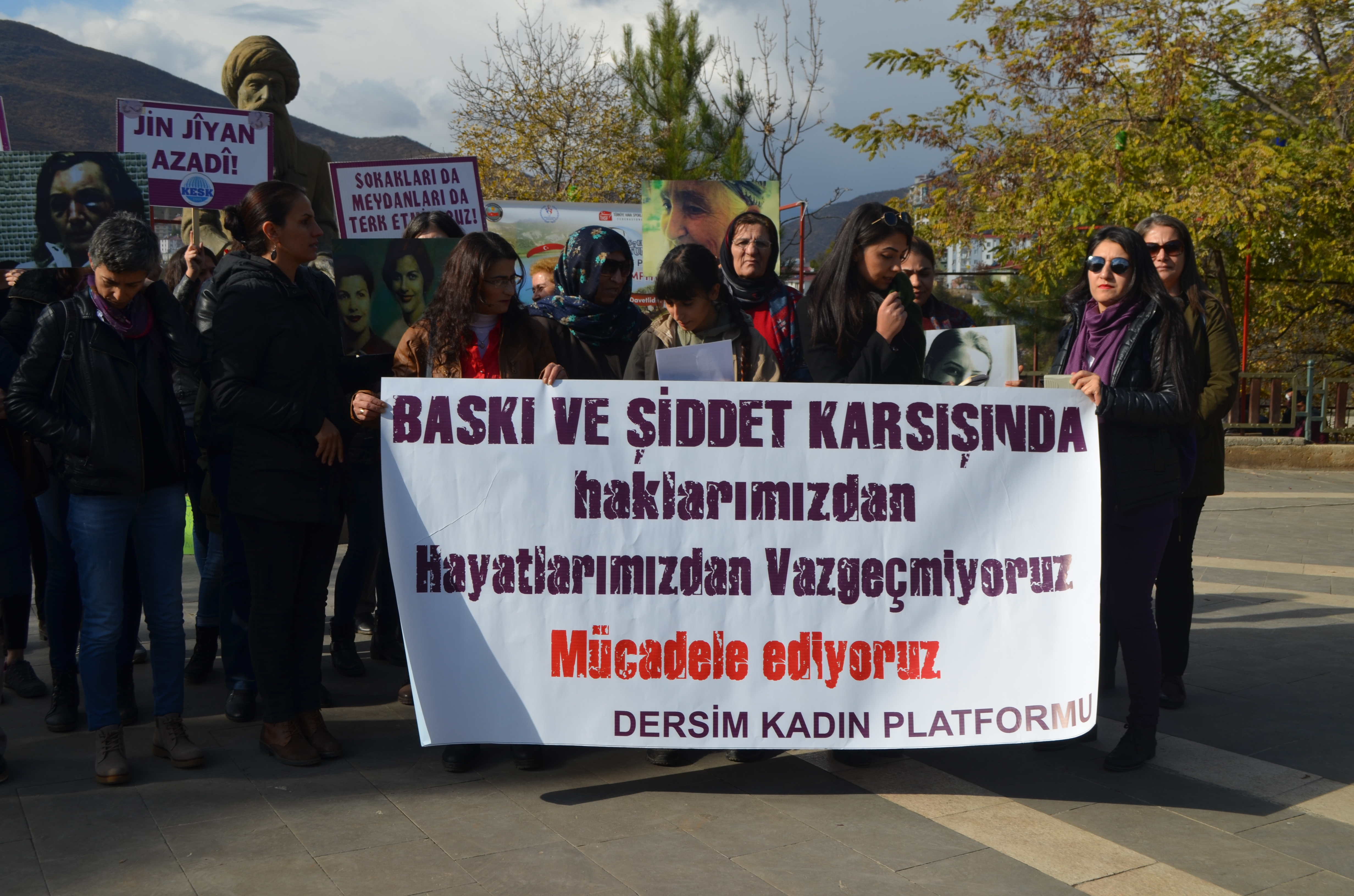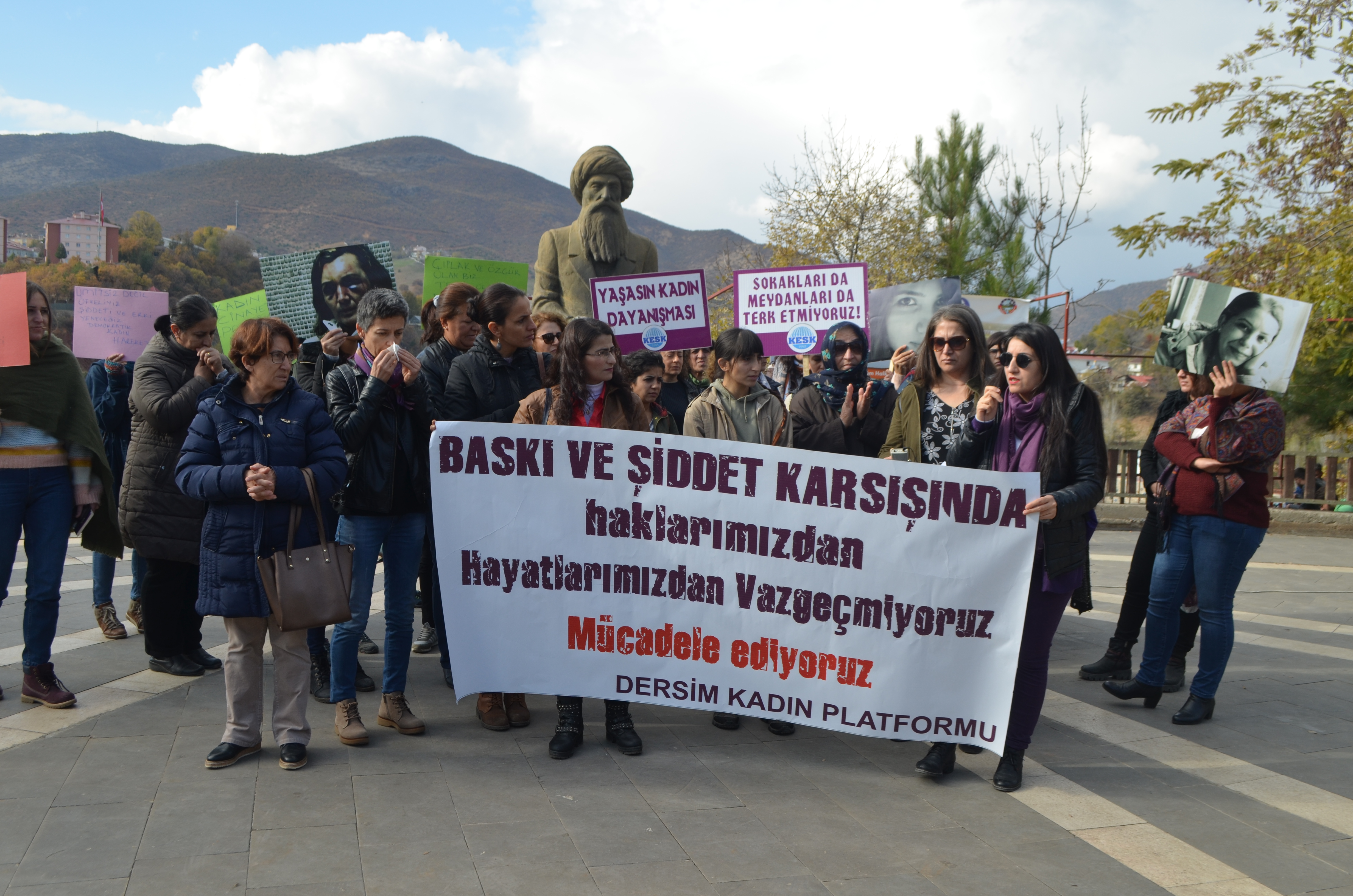 Kadın örgüleri, siyasi partiler ve emek örgütlerinden oluşan Dersim Kadın Platformu, Seyit Rıza Meydanı’nda 25 Kasım Kadına Yönelik Şiddete Karşı Uluslararası Mücadele Günü dolayısıyla basın açıklaması yaptı.