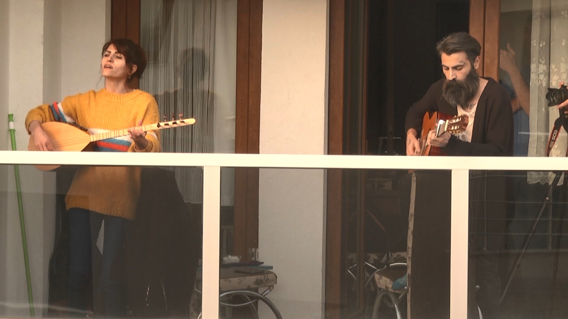 Dersimli sanatçılar da koronavirüs salgını nedeniyle yaşanan karantina sürecinde balkonlarda etkinlik yapmaya devam ediyor.