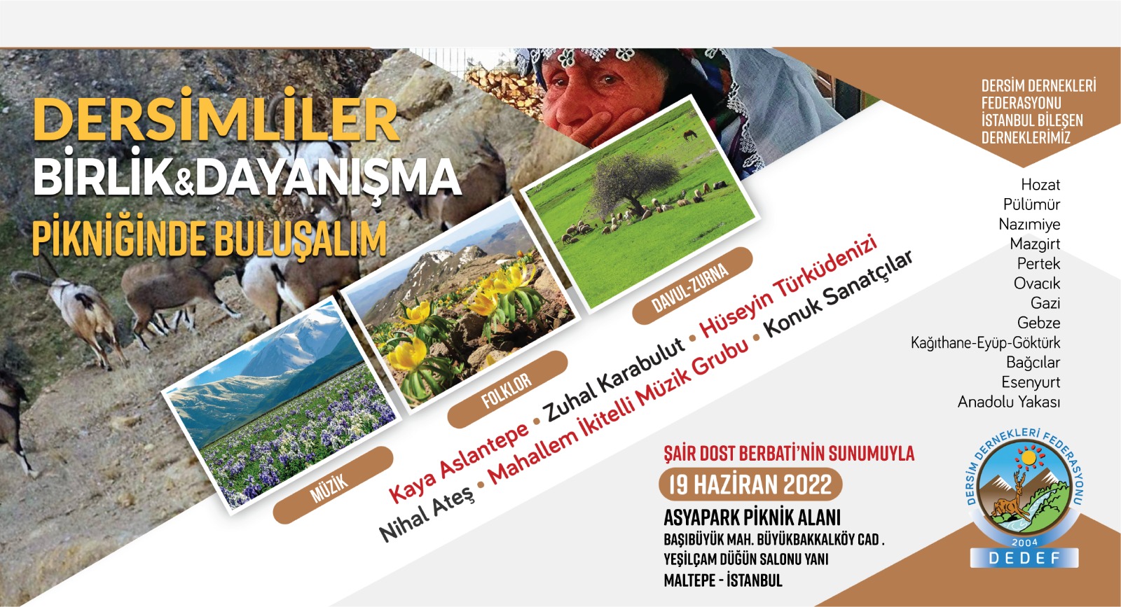Dersim Dernekleri Federasyonu (DEDEF) 32. kez geleneksel pikniğini bu yıl İstanbul Aydos Ormanları‘nda düzenleyecekti. Ancak etkinliğe 24 saat kala İstanbul Valiliği “güvenlik” gerekçesiyle pikniği yasakladı. DEDEF ise yeniden piknik düzenleme kararı aldı. Piknik 19 Haziran Pazar günü Maltepe ilçesinde bulunan Asyapark piknik alanında yapılacak.