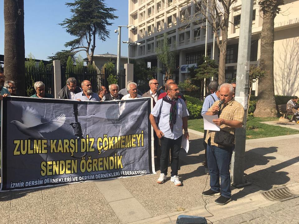 Konak Sümerbank önünde gerçekleşen basın açıklamasına İHD, HDP, SYKP ve DAD yönetileri katıldı. İzmir Dersim Dernekleri adına basın açıklamasını Kemal Mutlu okudu.