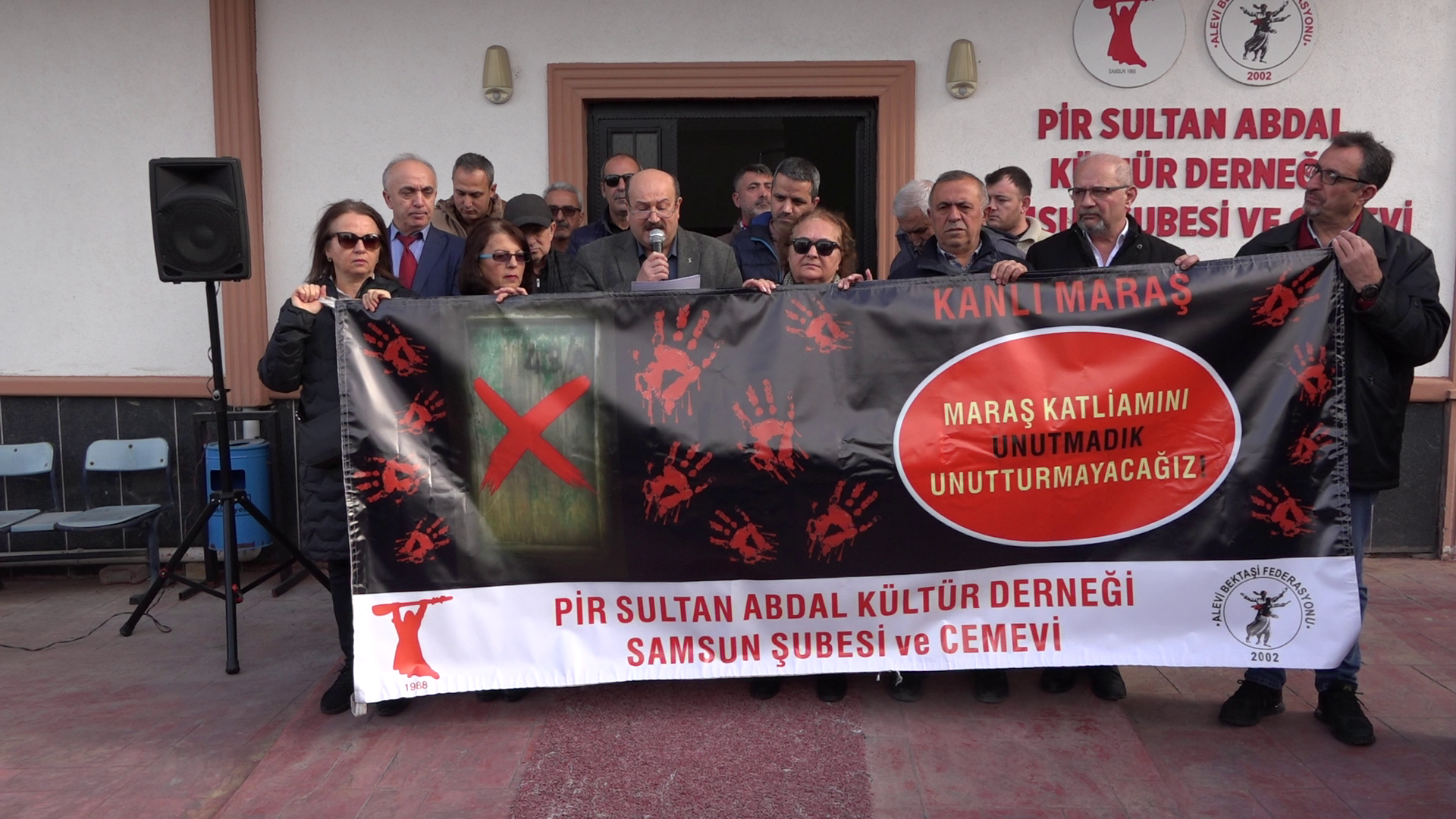 Pir Sultan Abdal Kültür Derneği (PSAKD) Samsun Şubesi ve Cemevi, Maraş Katliamı’nın 46. yılında basın açıklaması yaptı. Açıklamayı PSAKD Samsun Şube Başkanı Cem Sultan Ermiş okudu. Açıklamada ‘Maraş Katliamı’nı unutmadık, unutturmayacağız’ pankartı açıldı.