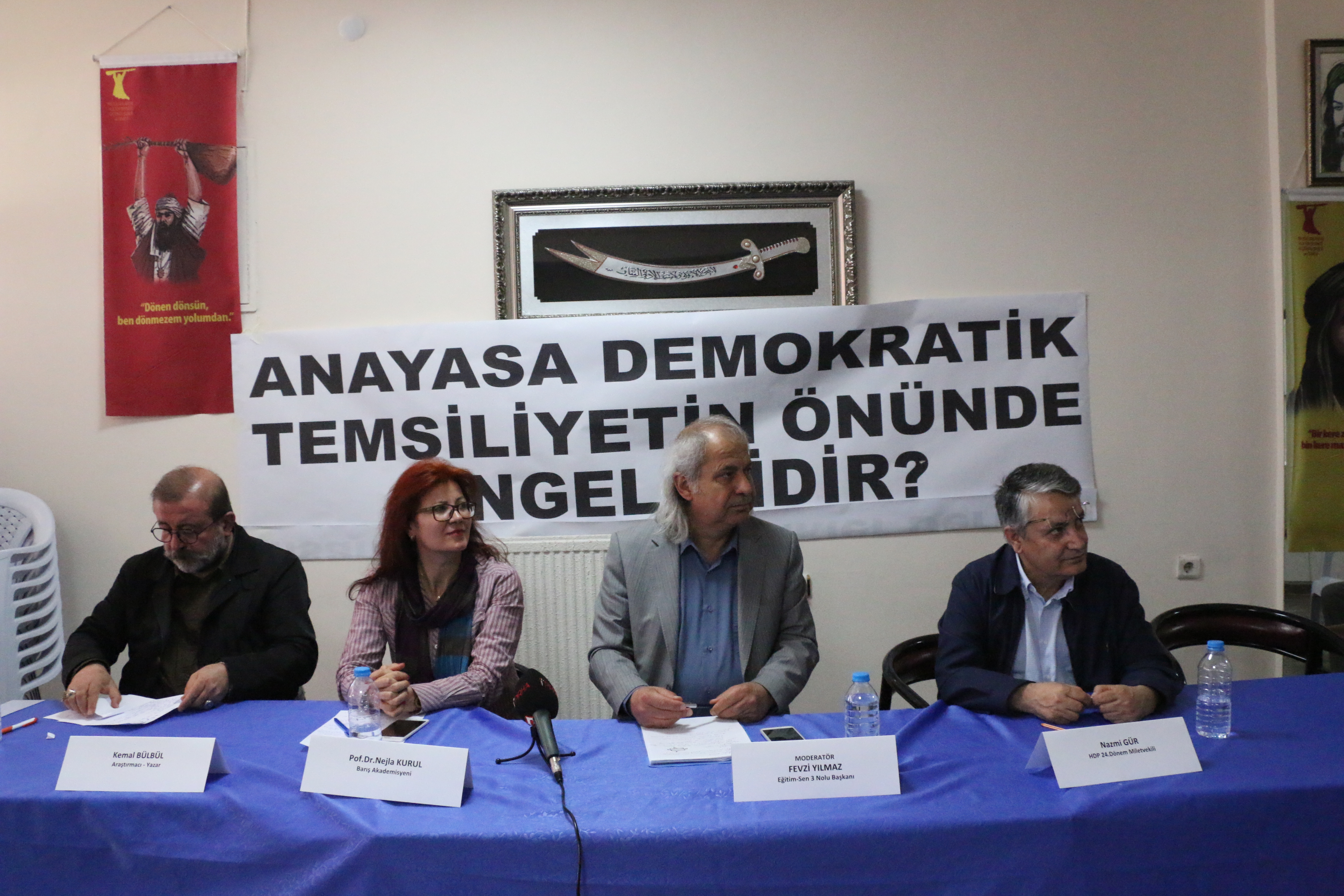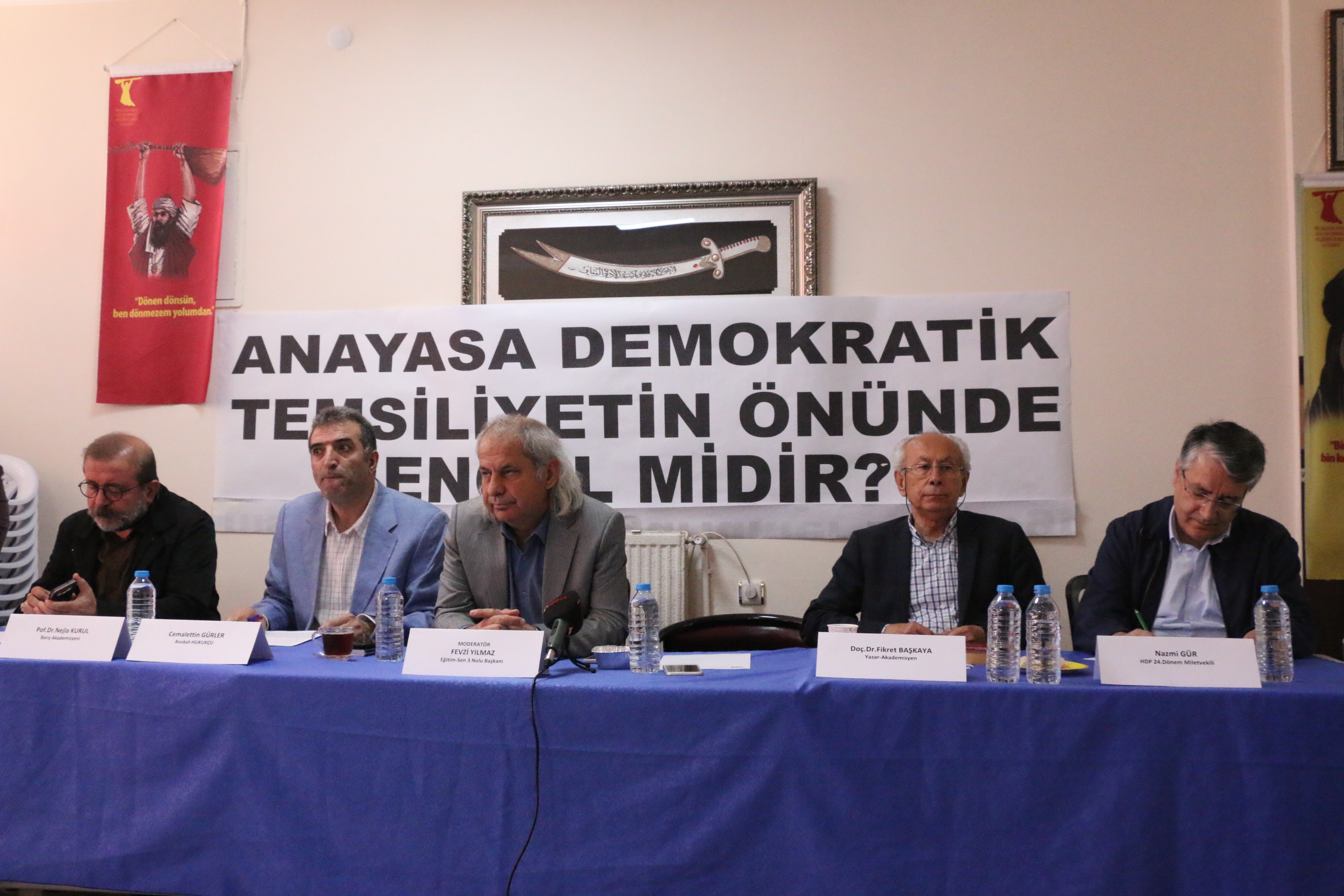 Evrensel İnsan Hak ve Özgürlükler Derneği Pir Sultan Abdal Kültür Derneği (PSAKD) Keçiören Cemevi’nde “Anayasa demokratik temsiliyetin önünde engel midir?” konulu panel düzenledi. Moderatörlüğünü Eğitim-Sen Ankara 3 Nolu Şube Başkanı Fevzi Yılmaz’ın yaptığı panele, Avukat Cemalettin Güler, Araştırmacı-Yazar Fikret Başkaya, Araştırmacı-Yazar ve PSAKD’nin önceki genel başkanlarından Kemal Bülbül, KHK ile ihraç edilen Barış Akademisyeni Prof. Dr. Nejla Kurul, 24. dönem HDP Milletvekili Nazmi Gür konuşmacı olarak katıldı.