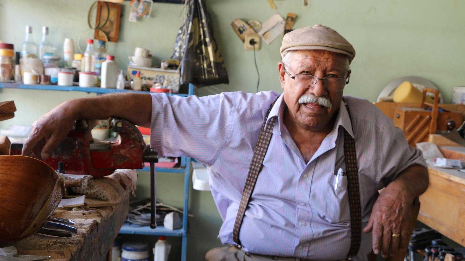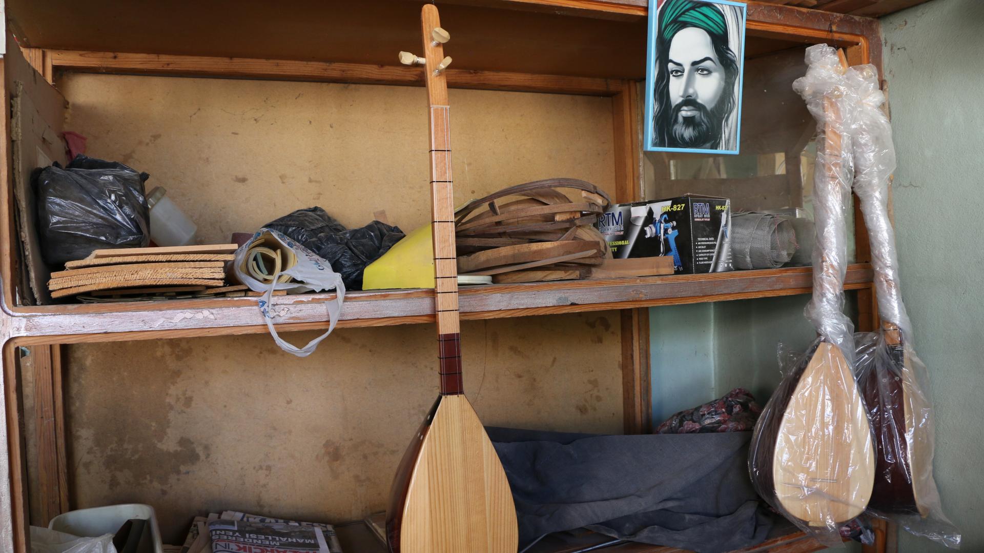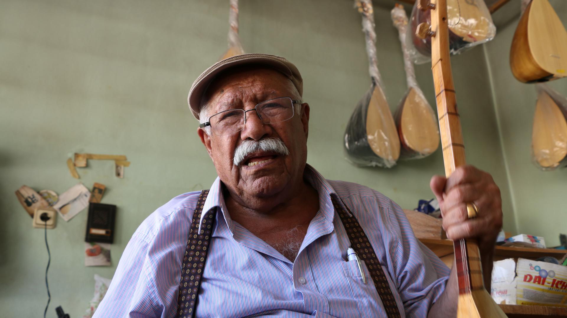 77 yaşındaki Hüseyin İmir, ilçenin en eski bağlama yapım ustası.