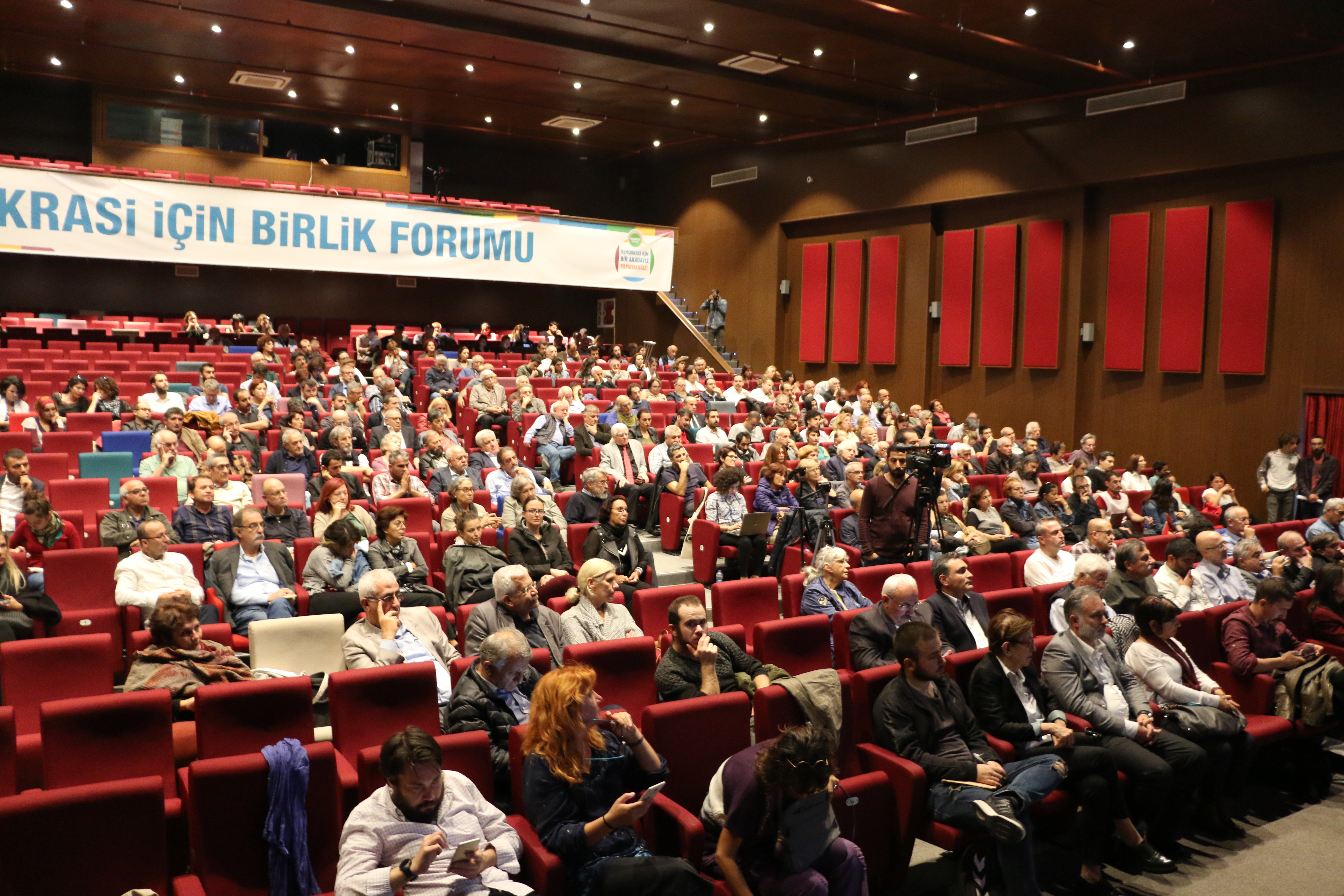 Demokrasi İçin Birlik “Demokrasi için bir aradayız yılmayacağız” şiarıyla İstanbul’da forum gerçekleştirdi. Çeşitli muhalif kurum temsilcileri, KHK ile kapatılan TV10’un Yönetim Kurulu Üyesi Veli Büyükşahin’in yanı sıra çok sayıda kişi katıldı. Forumda OHAL, KHK’ler, referandum ve anayasa konuları tartışıldı.
