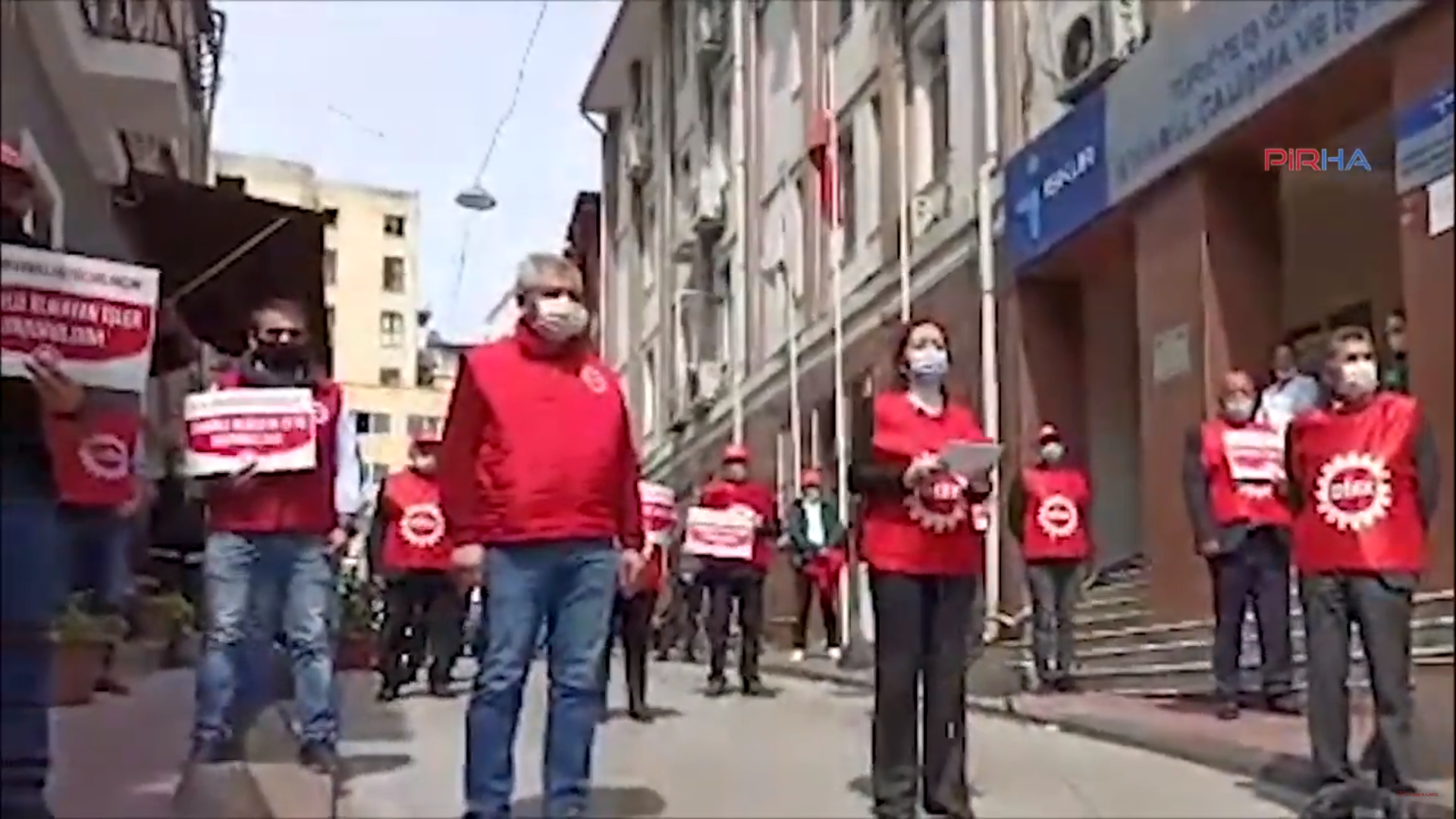 PİRHA-Türkiye Devrimci İşçi Sendikaları Konfederasyonu (DİSK), AKP hükümetinin “İşten çıkarma yasaklanıyor” propagandasıyla sunduğu fakat ücretsiz izinleri yasalaştıracak olan torba yasa tasarısına karşı İstanbul Çalışma ve İş Kurumu (İŞKUR) Müdürlüğü önünde açıklama yaptı. DİSK Genel Başkanı Arzu Çerkezoğlu, “Şu ana kadar 257 üyelerinde koronavirüs tespit edildiğini, 407’sinin karantinada olduğunu ve 3’ünün de yaşamını yitirdiğini belirterek, işten çıkarmaların derhal yasaklanması için hükümete çağrıda bulundu.