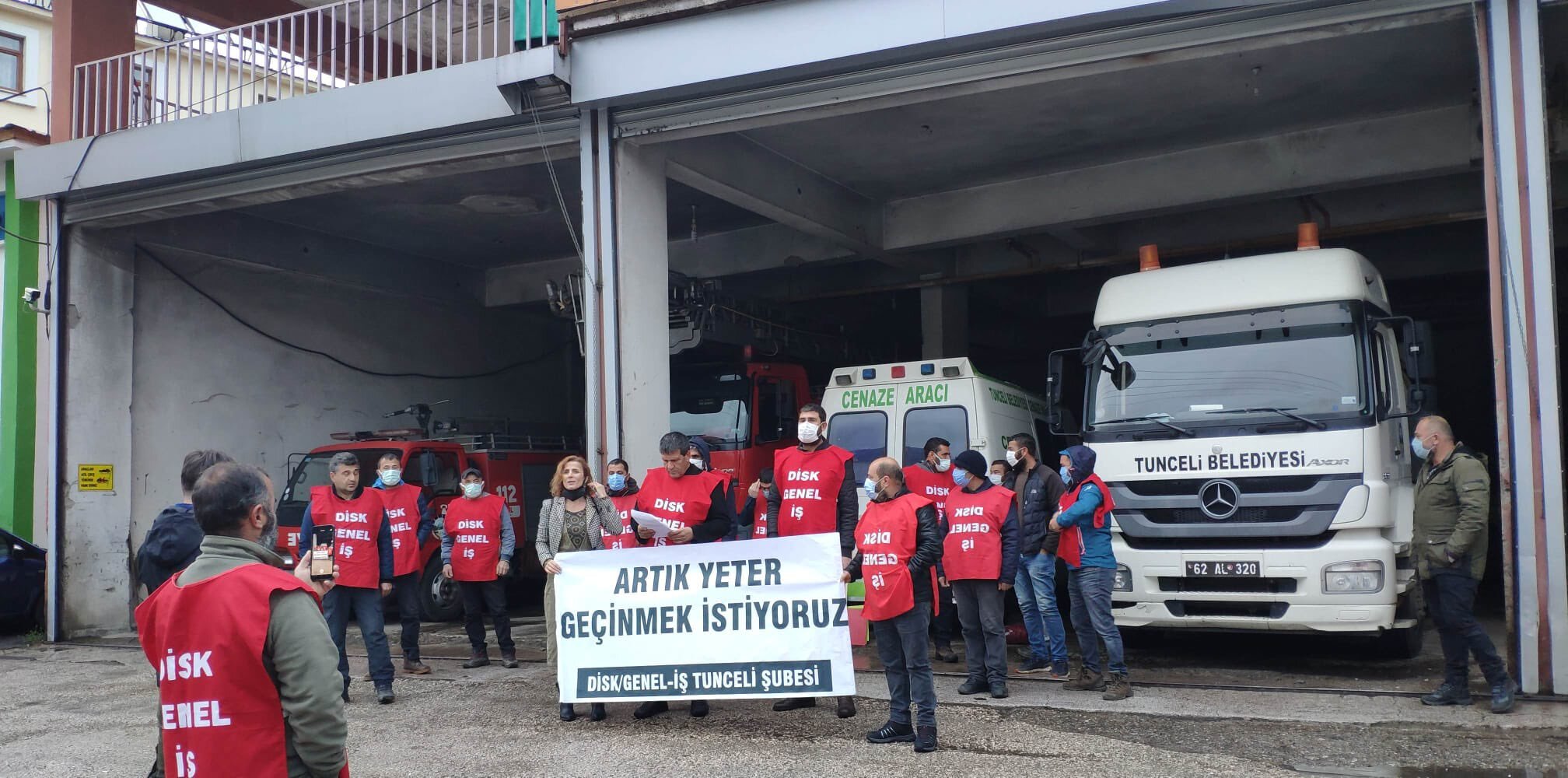 DİSK/ Genel İş Dersim Temsilciliği, “Artık yeter geçinmek istiyoruz” başlığıyla belediye garaj önünde basın açıklaması yaptı.