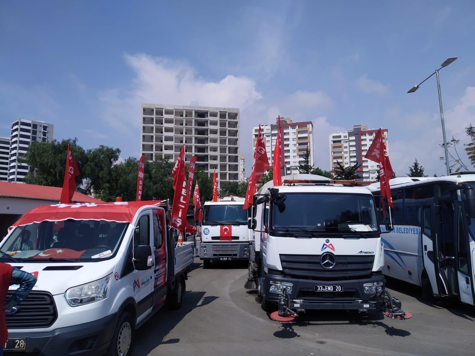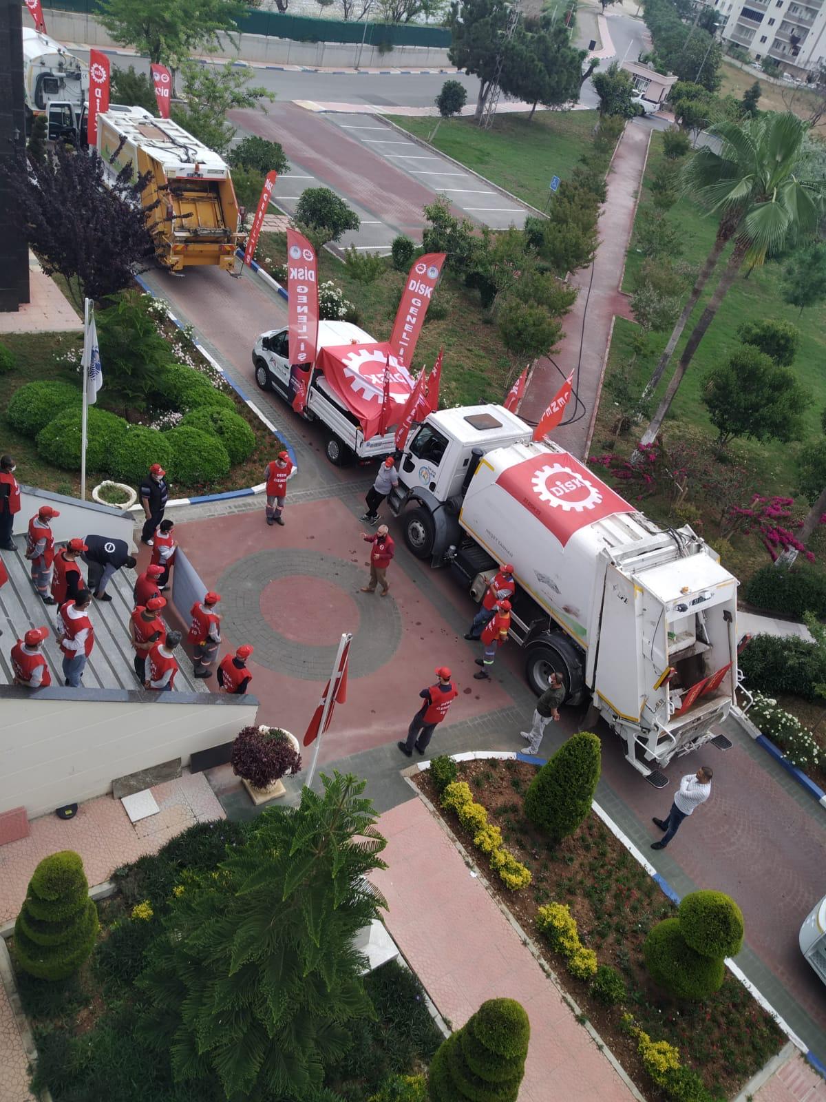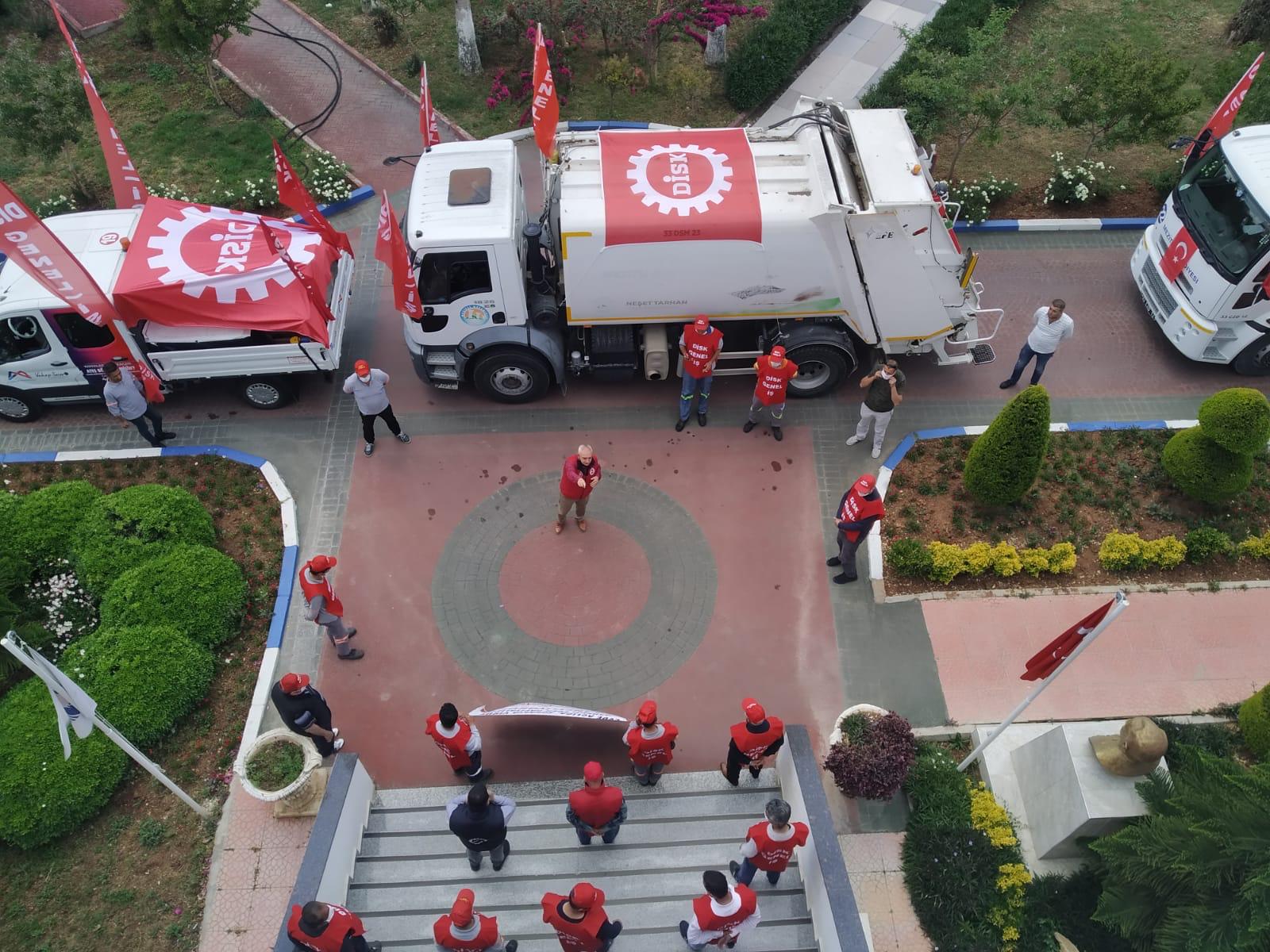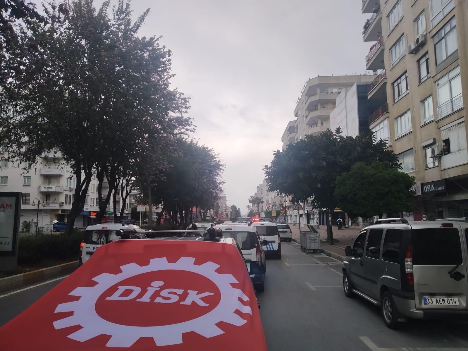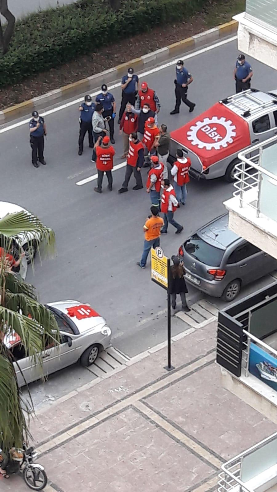 PİRHA- Mersin’de koronavirüs salgını nedeniyle yapılamayan miting yerine belediye işçileri konvoy oluşturdu. Polis engeliyle karşılaşan işçiler, her gün aynı sokak ve caddelerde olduklarını belirterek, tepki gösterdi.