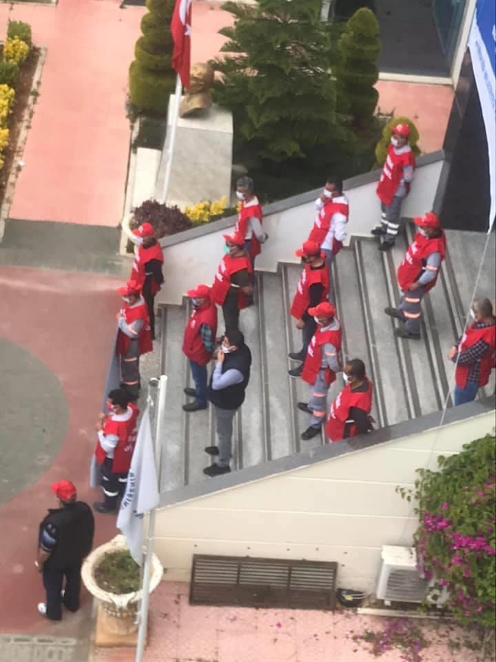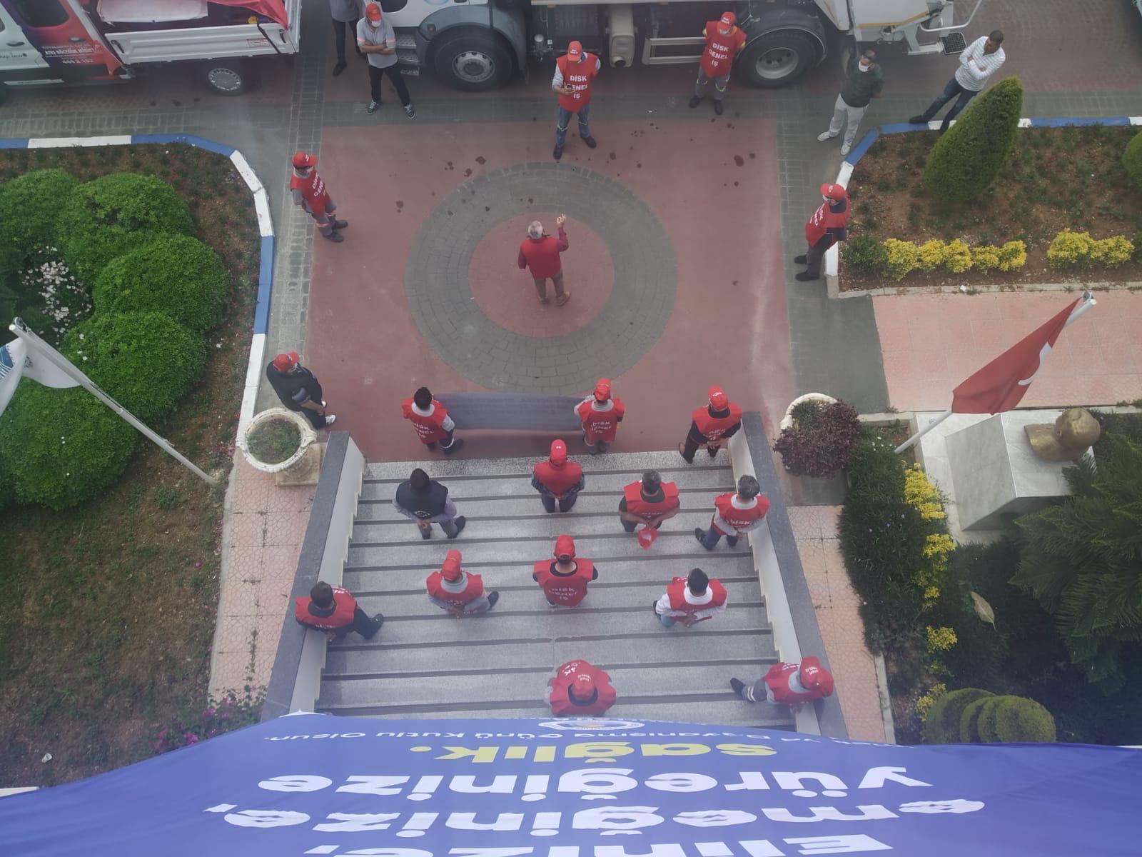 İşyerlerinde bir araya gelen işçiler adına açıklama yapan şube başkanı Kemal Göksoy, koronavirüs salgına karşı “evde kal” çağrılarının kendilerine uğramadığını ve her gün sokaklarda, caddelerde, işyerlerinde çalışmaya devam ettiklerini belirterek, tüm işçi ve emekçilerin mücadele gününü kutladı.