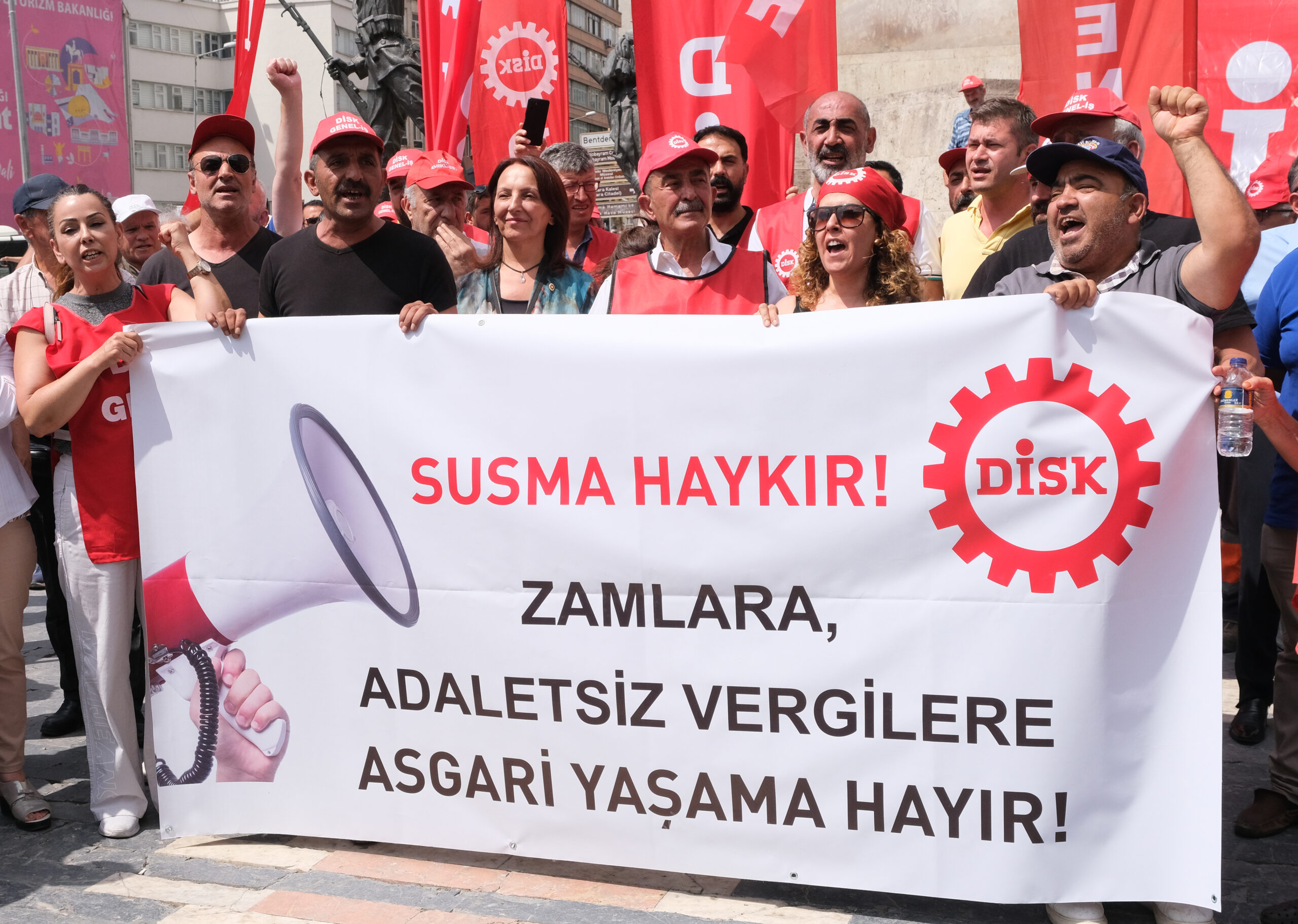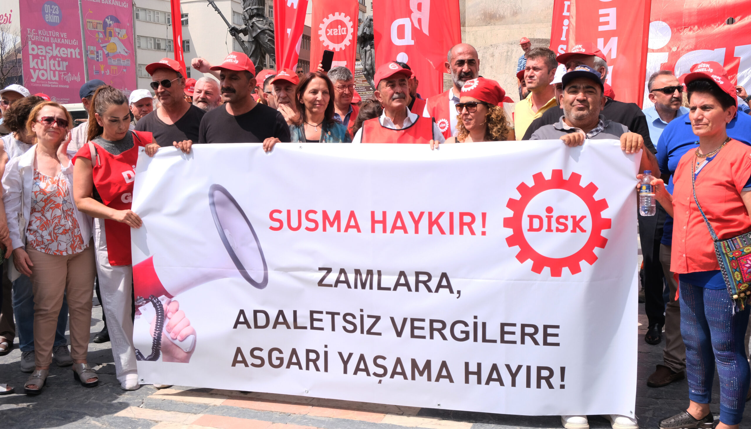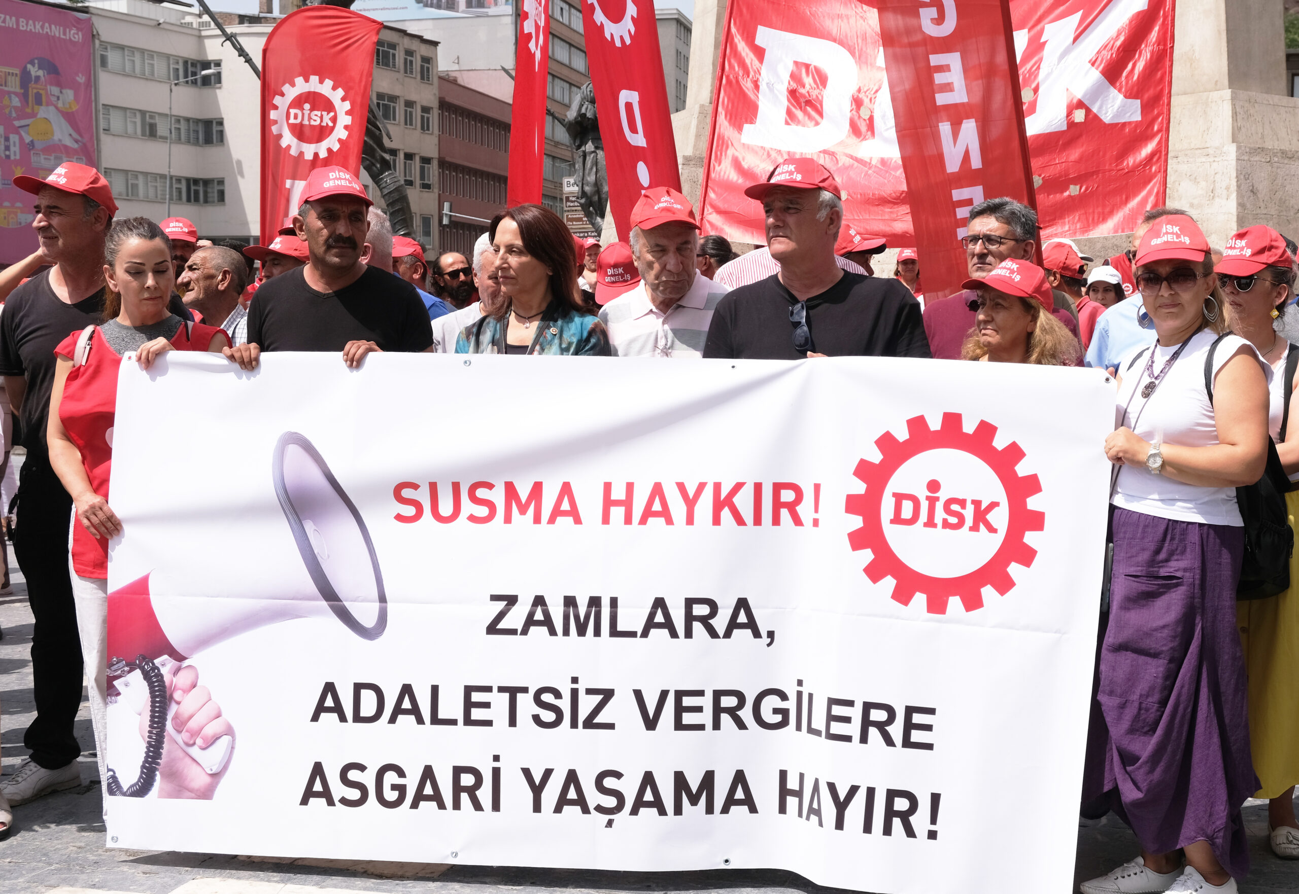 Zamlara ve artan vergilere karşı tepkilerini ülke genelinde yaptıkları basın açıklamalarıyla gösterdi. Açıklamayı DİSK İç Anadolu Bölge Temsilcisi Tayfun Görgün okudu.