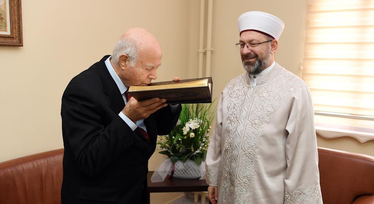 Diyanet İşleri Başkanı Ali Erbaş, elinde Kuran’la önceki gün ağabeyi Hakka yürüyen Cem Vakfı Onursal Başkanı Prof. Dr. İzzettin Doğan’a taziye ziyaretinde bulundu.