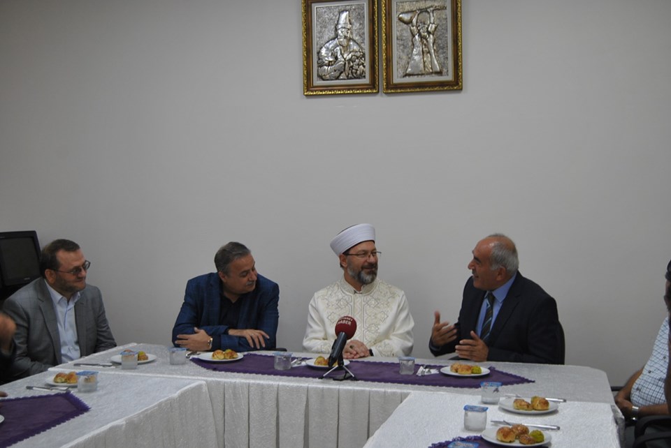 Burada bir konuşma yapan Diyanet İşleri Başkanı Ali Erbaş, “Muharrem Ayı Müslümanlar için değerlidir aynı zamanda ibadet ve erkanların yapıldığı yer bizim için kutsaldır. Farklılıklarımız bizim için zenginliktir. Mersin çeşitli kimliklerin ve inançların bir arada yaşandığı ildir. Mersinde bazı kurum ve kuruluşları ve sivil toplum örgütlerini ziyaret ettim. Hz Ali, Hz Fatma, Hz Zeynep, Hz Hasan, Hz Hüseyin bizim kutsallarımızdır. Sizlerle muhabbet etmeye geldim. Sorunlarınızı Ankara’daki üst makama ileteceğim.” diye konuştu.